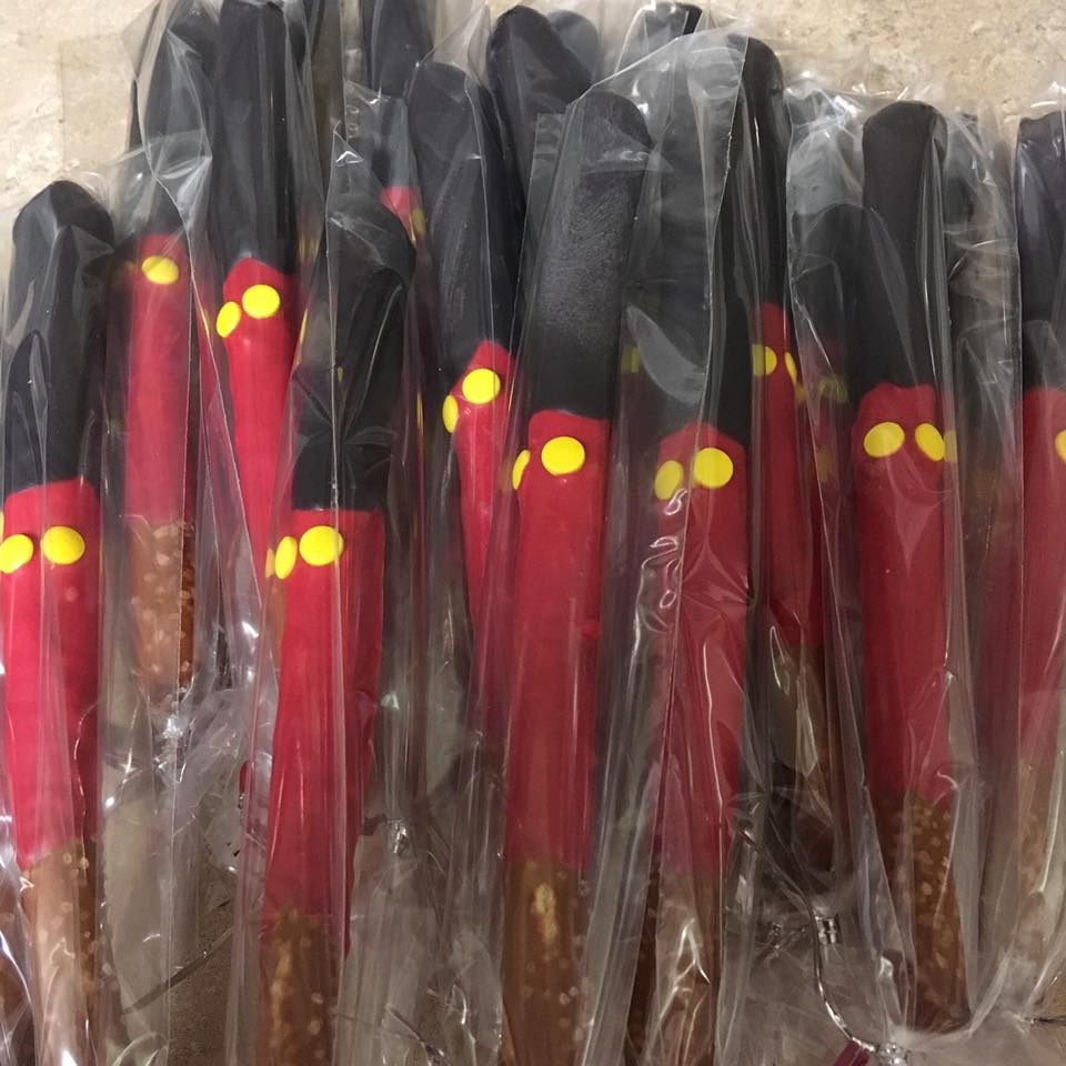 While Hometown Desserts has a case full of treats ready for you to grab and enjoy, they specialize in custom orders. Birthdays, Anniversaries, Weddings, or any other celebration. Cupcakes, themed treats (checkout the wand candy pretzel photo below!).