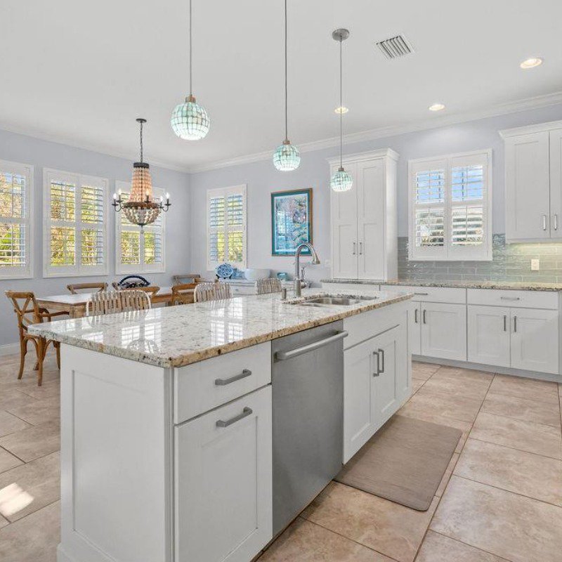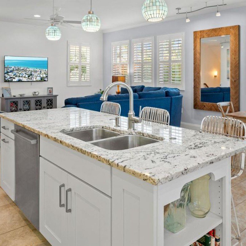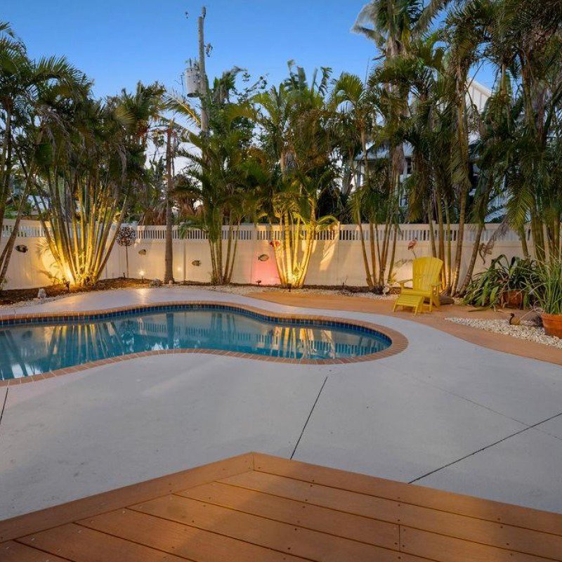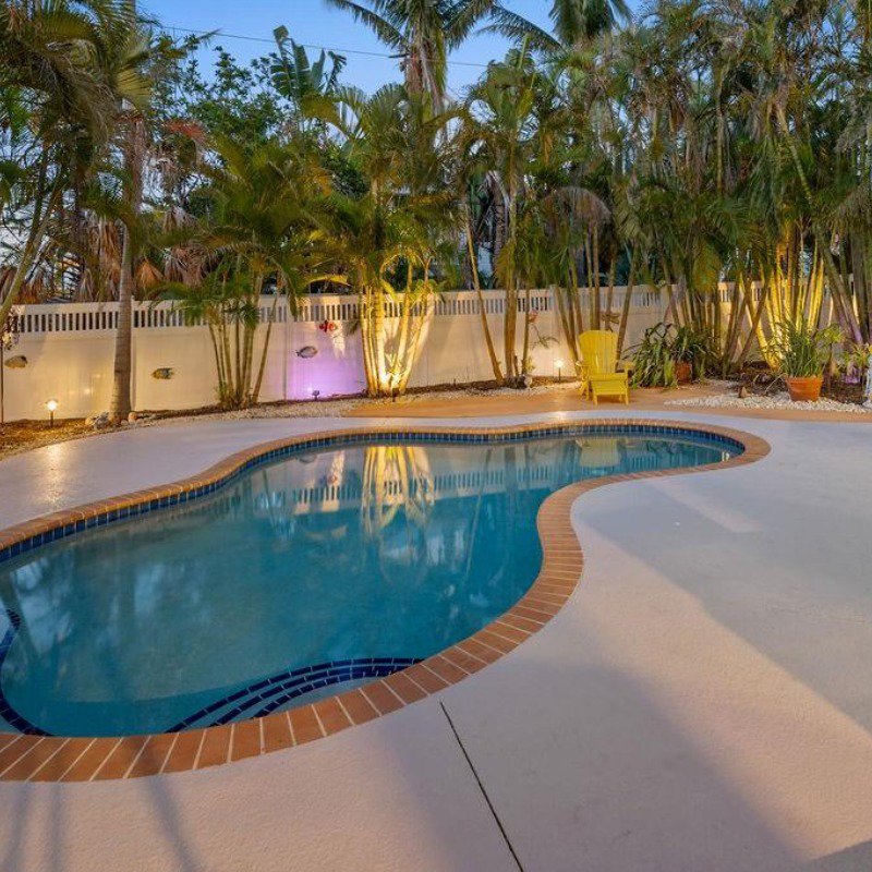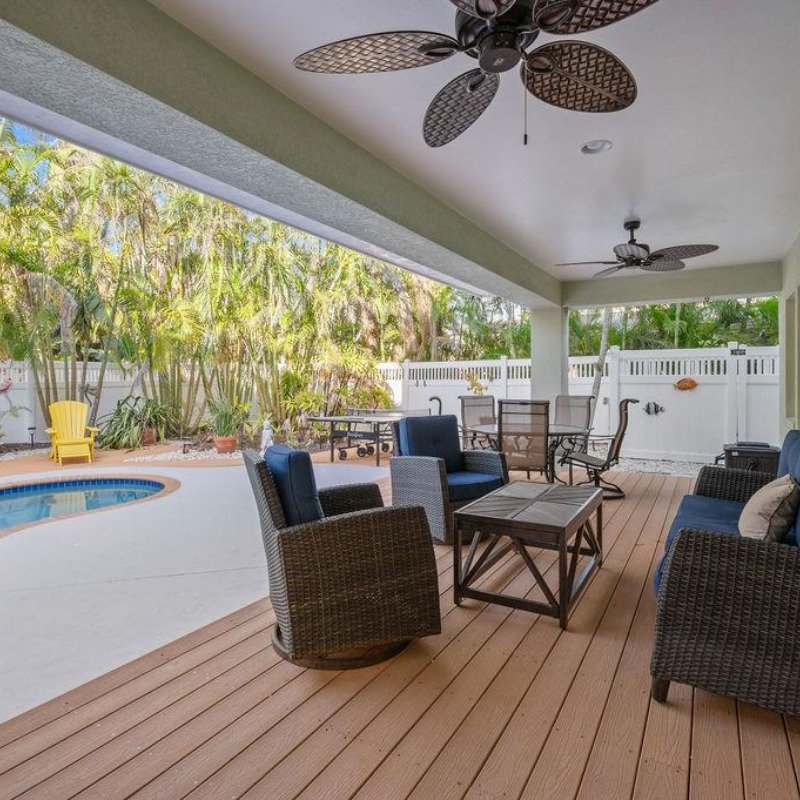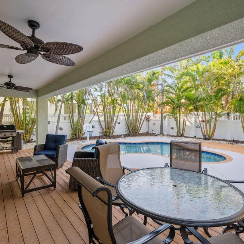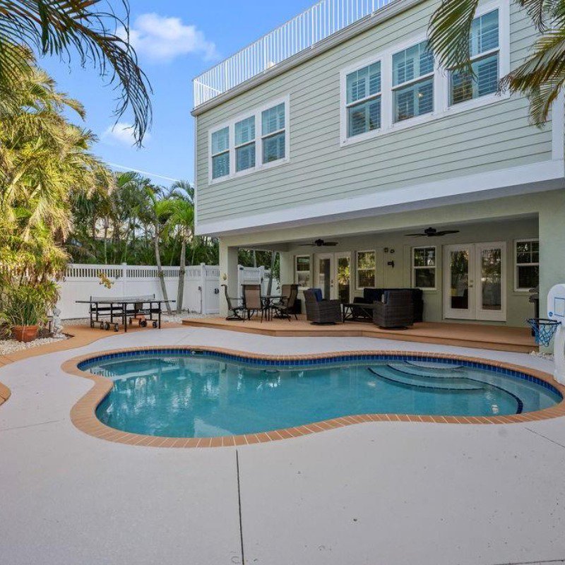 Embrace Island Life in this perfectly situated North End 4 bed/3 bath pool home with only steps to Bean Point & the Bay! This quality constructed WFC home is ideally appointed and includes a large third floor porch with peeks of the Bay and the Sunshine Skyway! You will love the main floor living with open floor plan, high ceilings, 18 inch tile flooring, spacious kitchen with granite countertops, Bosch stainless steel appliances, new subway tile backsplash, custom light fixtures, ample cabinetry and an eat-in island. This floor includes your en suite bedroom, the laundry room with custom drying racks, and a guest en suite as well! Take the elevator to the third floor to enjoy two more guests rooms with their own living room, and grand bath with dual sinks, a soaking tub and glass enclosed shower! You will relish your outdoor space as well. Whether you are taking in the views from upstairs or savoring the privacy of the covered seating pool side, you will relax and enjoy after coming back from the beach or bay…both only a short walk away! And with a two car garage, large foyer with custom closet, and bonus room, there is space for all your beach toys! Tucked on a quiet street, close to Bean Point & the Bay, this beautiful home allows short term rentals, is near the shops and eateries of Pine Avenue, and reminds you that island time is easy to enjoy!