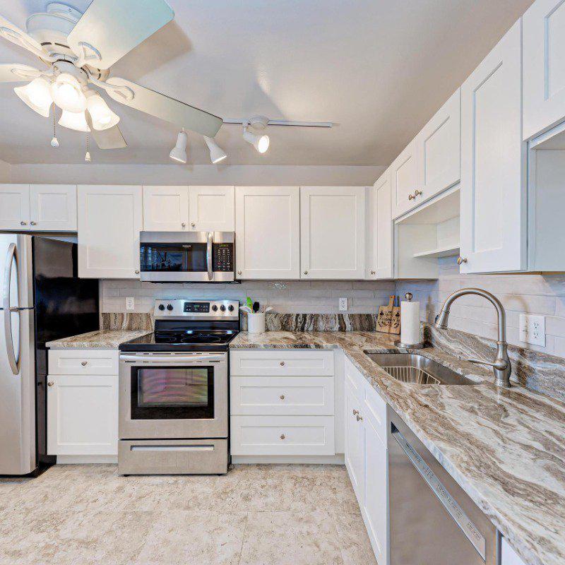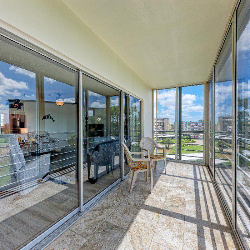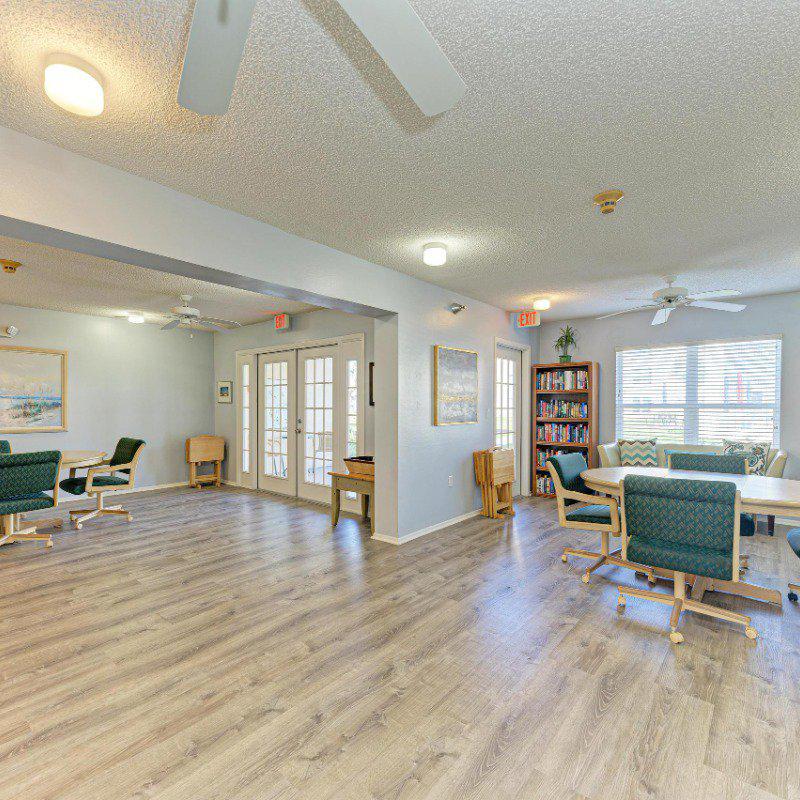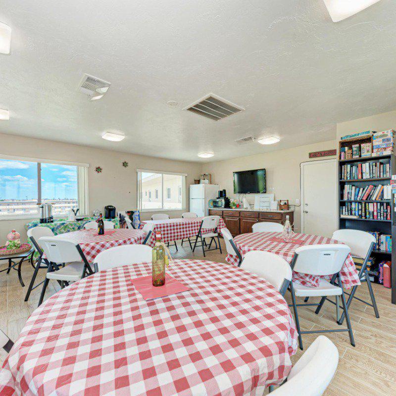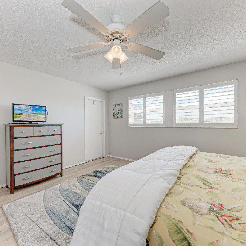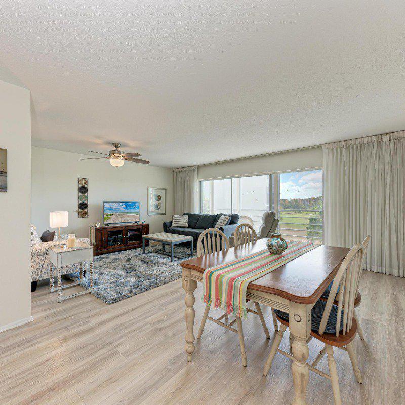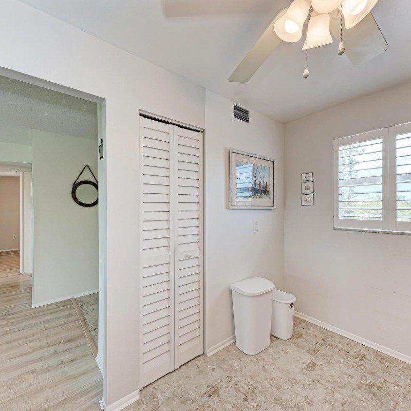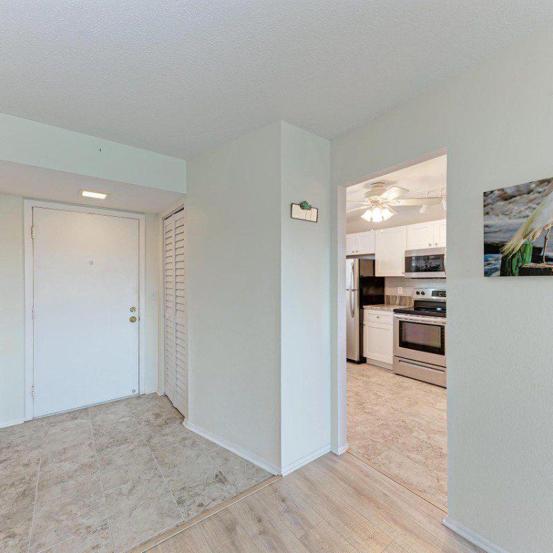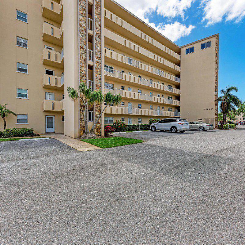 Residents enjoy a washer and dryer conveniently located near the elevator (no cost to use) and access to the Skyroom on the 7th floor—perfect for social gatherings and sunset views. The nearby clubhouse offers a fitness center, billiards room, heated pool, shuffleboard, and bocce courts.