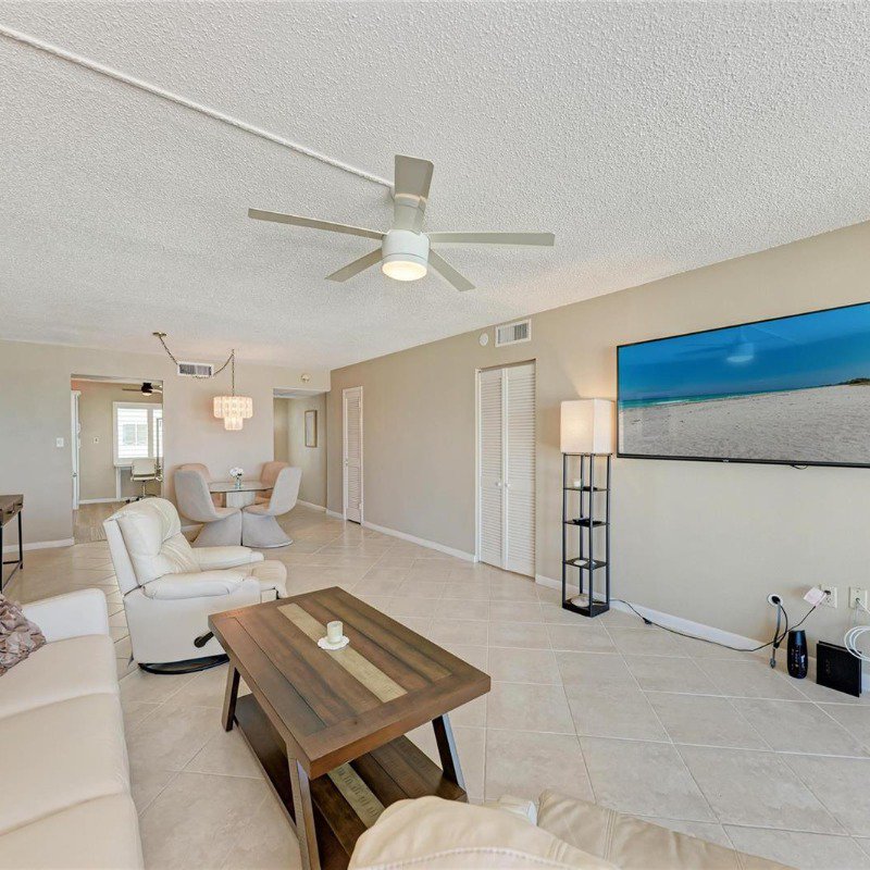 GULF FRONT – Spacious, beautifully maintained, and thoughtfully renovated 1-bedroom, 1-bath condominium in the heart of Holmes Beach. Enjoy breathtaking, unobstructed Gulf views from every room. The kitchen, windows, and sliding doors have been updated, and a new A/C was installed in 2025.