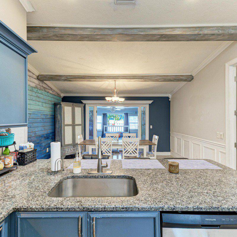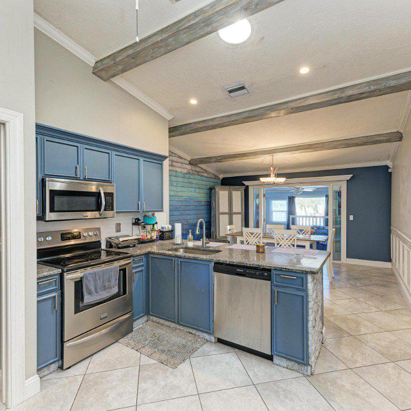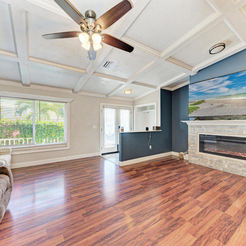 This true three-bedroom, two-bath home with a two-car garage also features a bright and inviting Florida Room. The spacious living room showcases soaring coffered ceilings and a cozy electric fireplace. The kitchen is thoughtfully designed with stainless steel appliances, granite countertops, a breakfast bar, vaulted ceilings, and a skylight that fills the space with natural light. A conveniently located laundry closet sits just off the kitchen, which flows seamlessly into a large family room with French doors leading to the glass-enclosed Florida Room—perfect for entertaining.