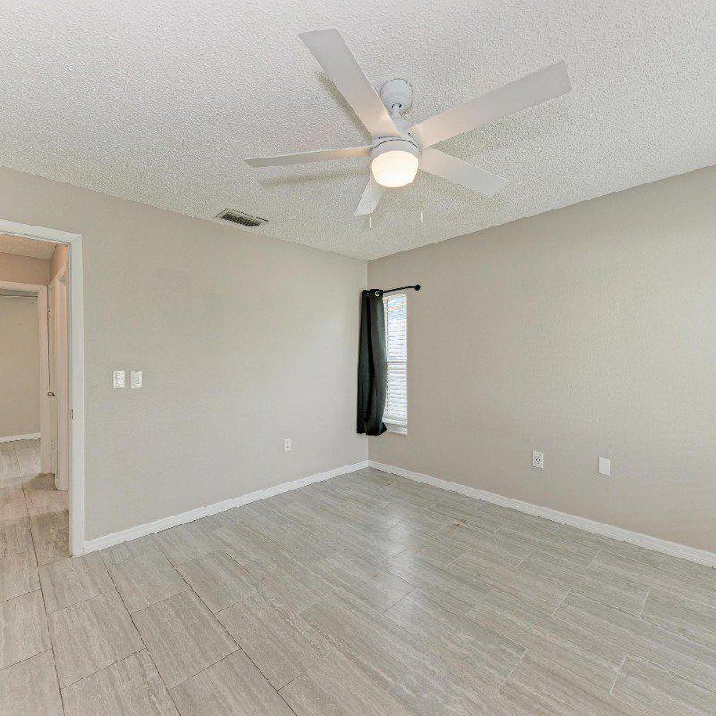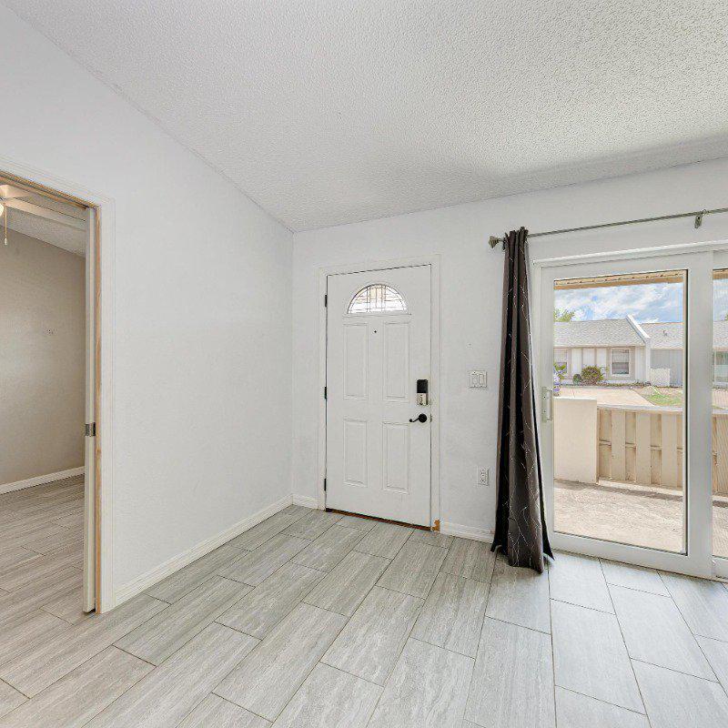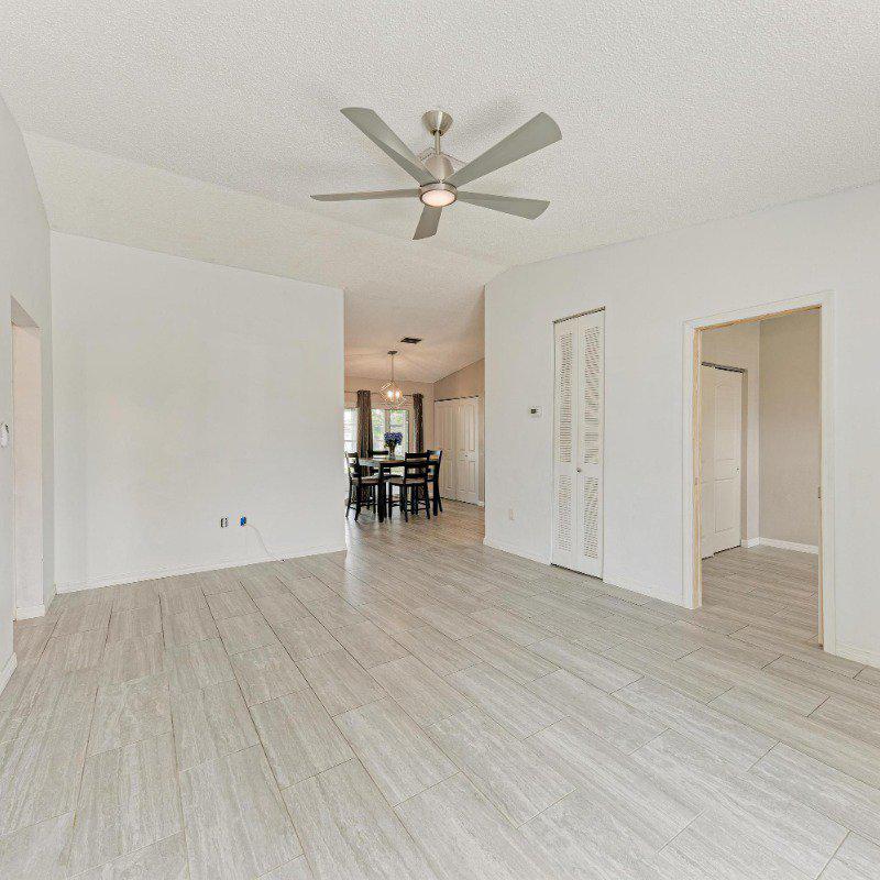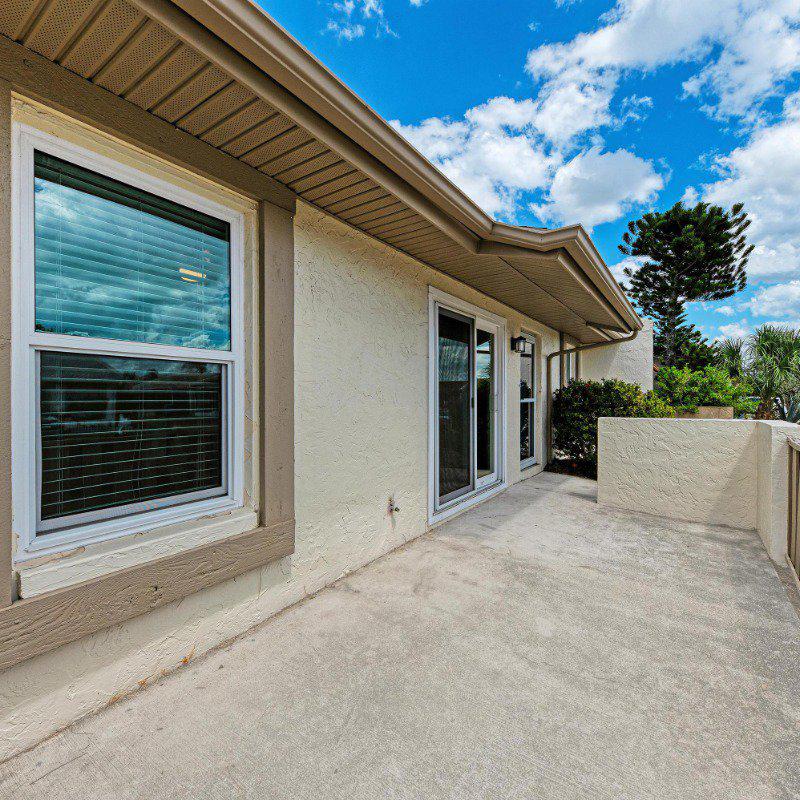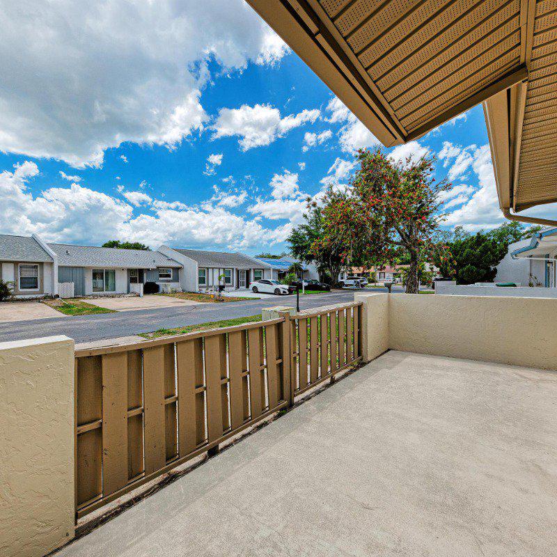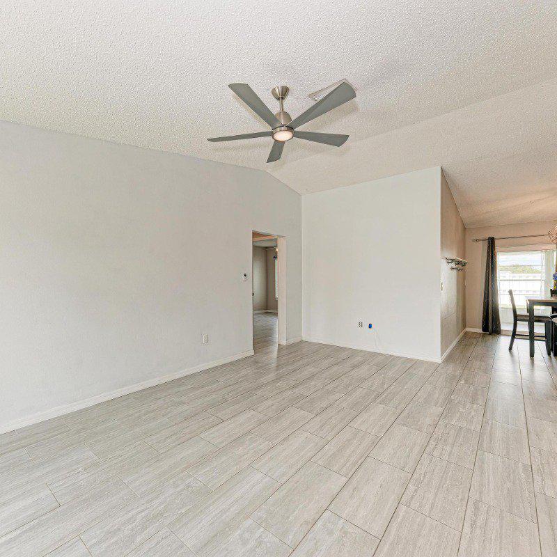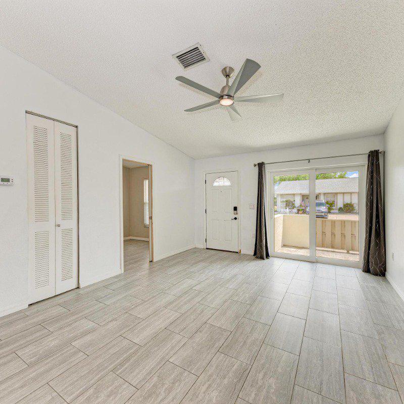 This true 3-bedroom, 2-bath end-unit villa features a private two-car driveway right at your front door. Relax on the sunny, south-facing front porch located on a quiet street with no through traffic. Inside, you’ll find continuous wide-plank tile flooring throughout—no carpet. A vaulted ceiling in the living room enhances the open, airy feel.