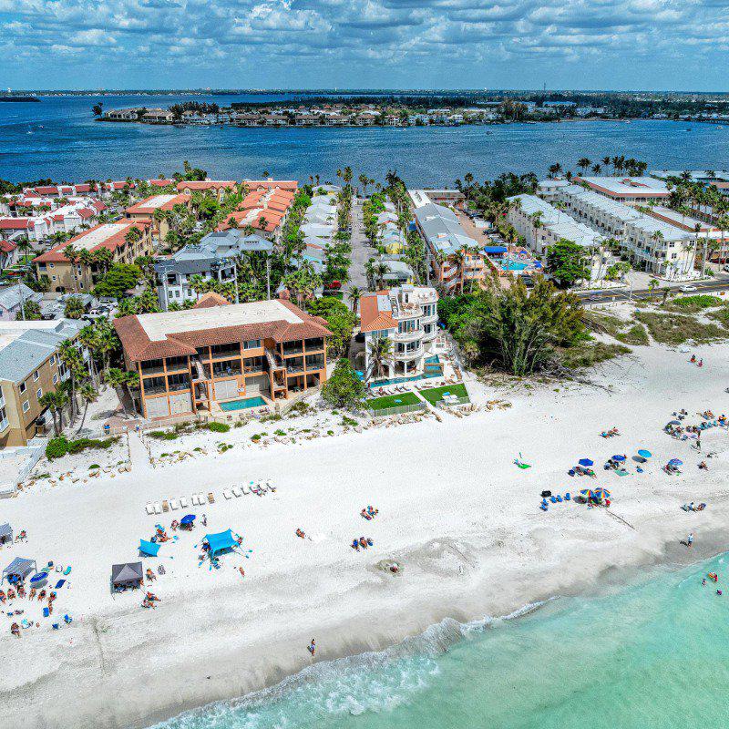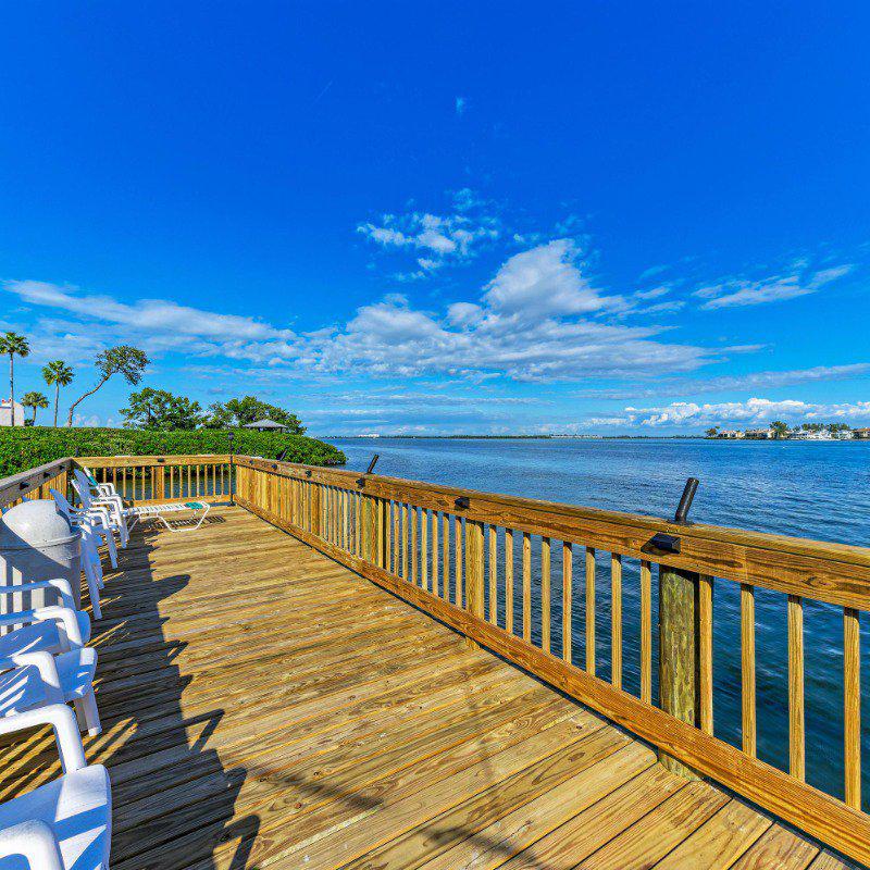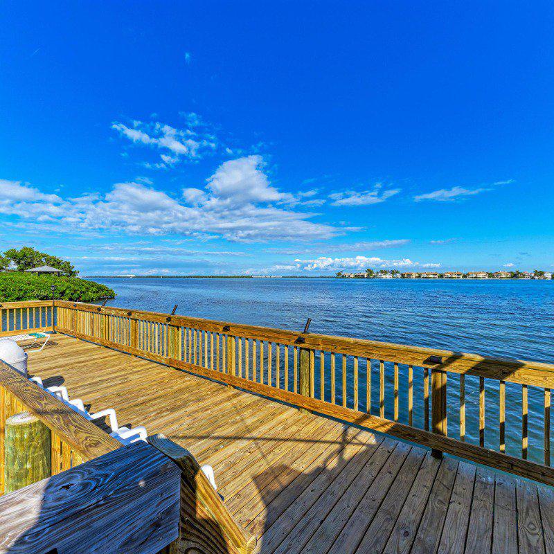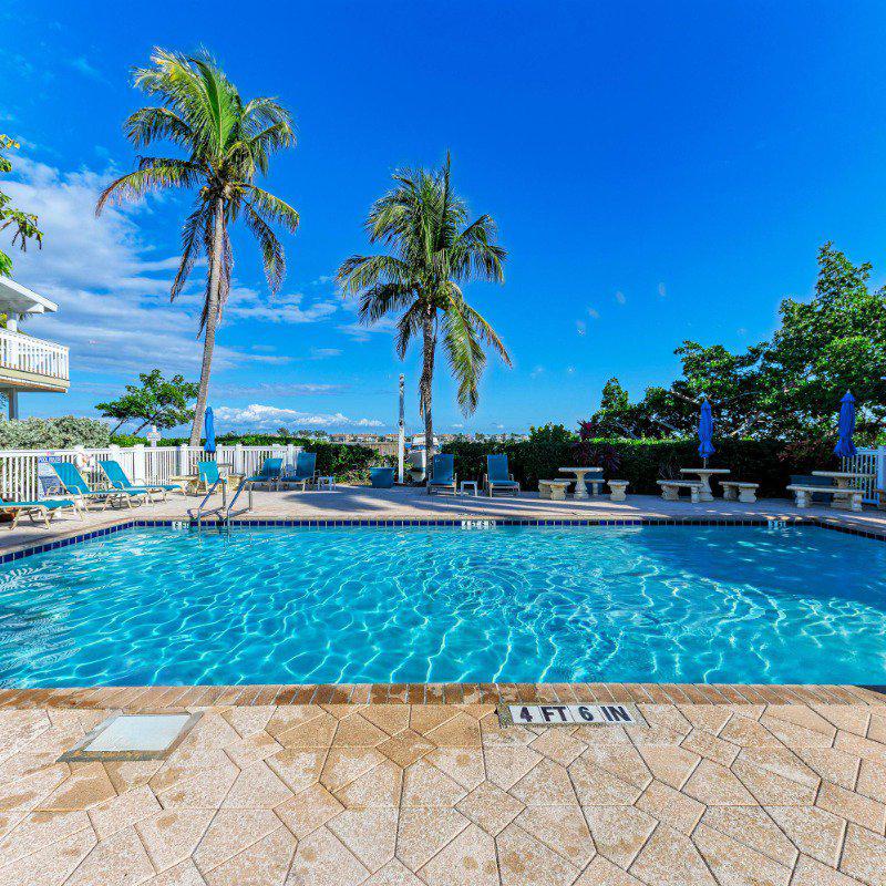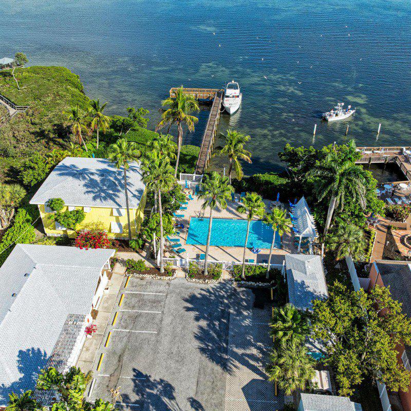 Located within Tradewinds Beach Resort, this charming community captures the essence of Old Florida. Pastel, Key West–style cottages are nestled along a quiet private street, surrounded by lush jasmine and bougainvillea. Residents and guests enjoy a large heated bayfront pool set among swaying palms, along with a fishing pier extending into Sarasota Bay.
