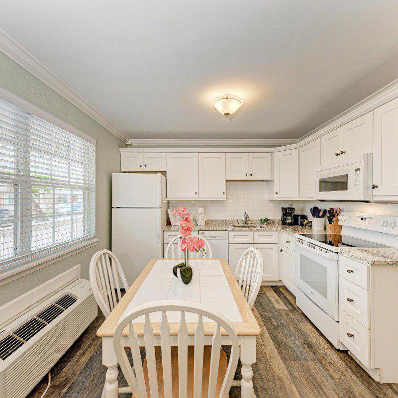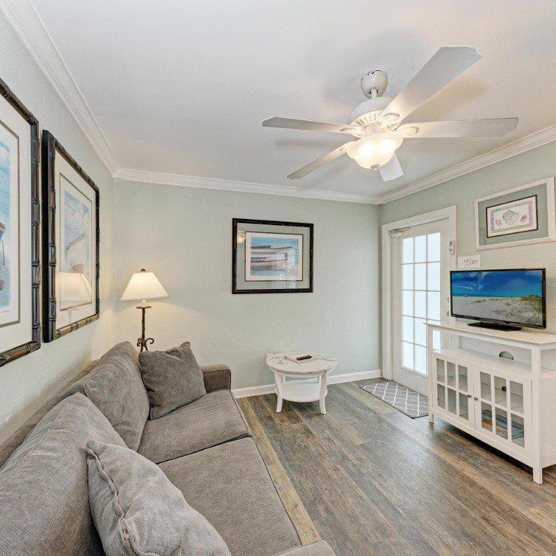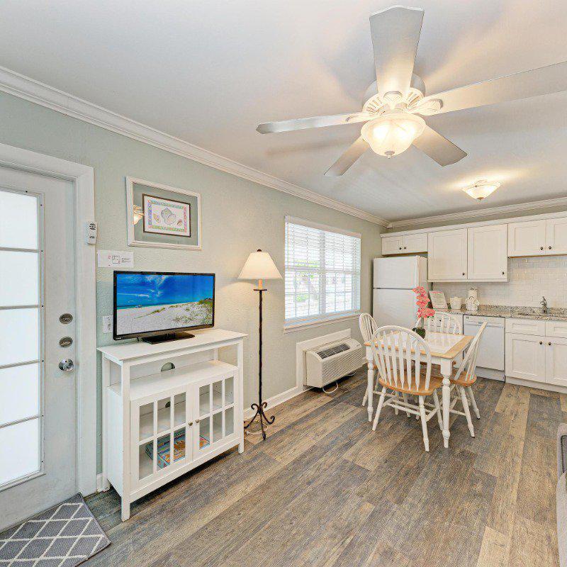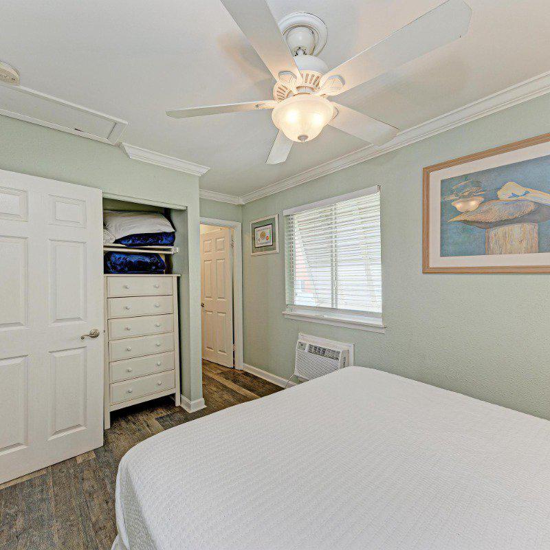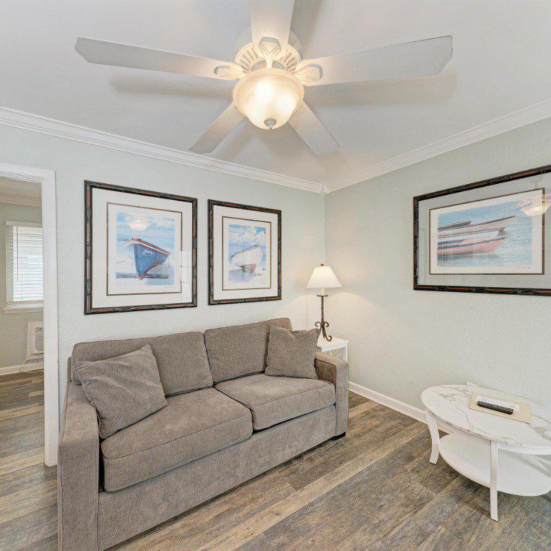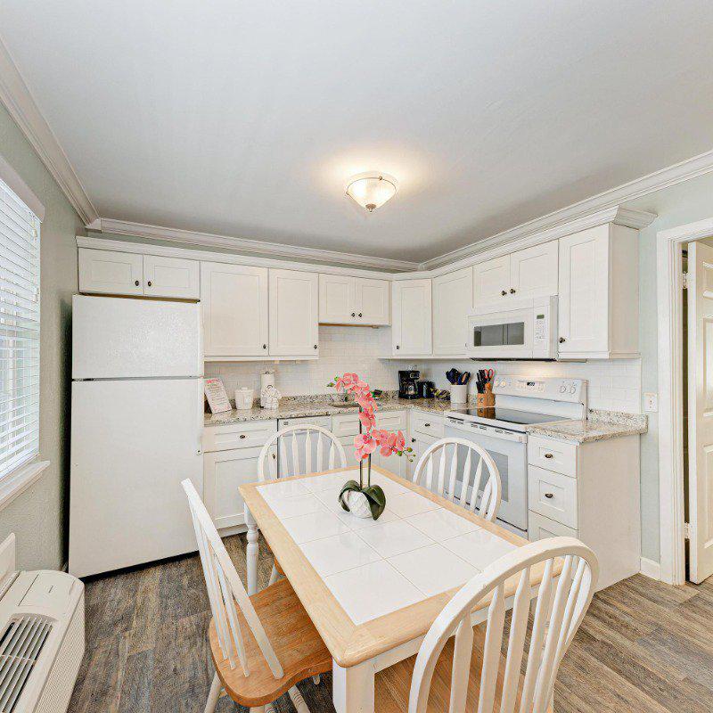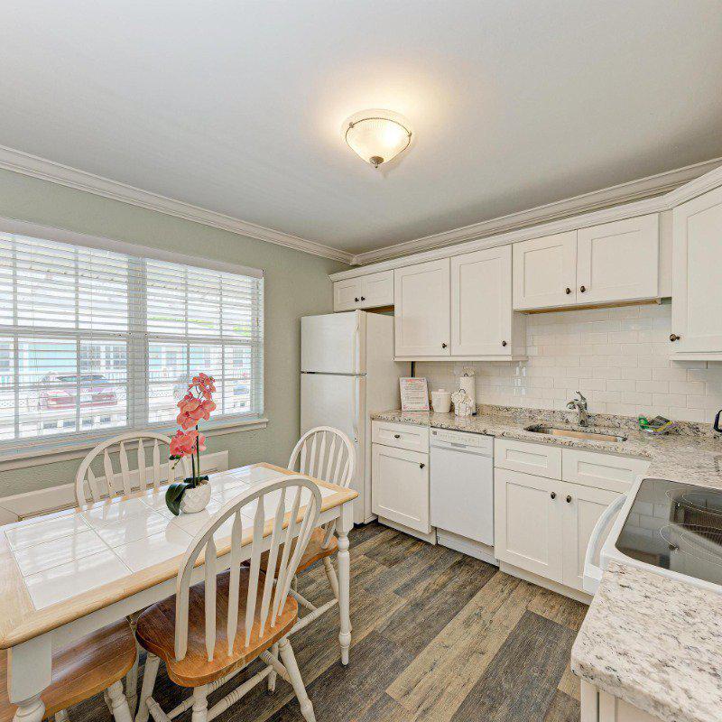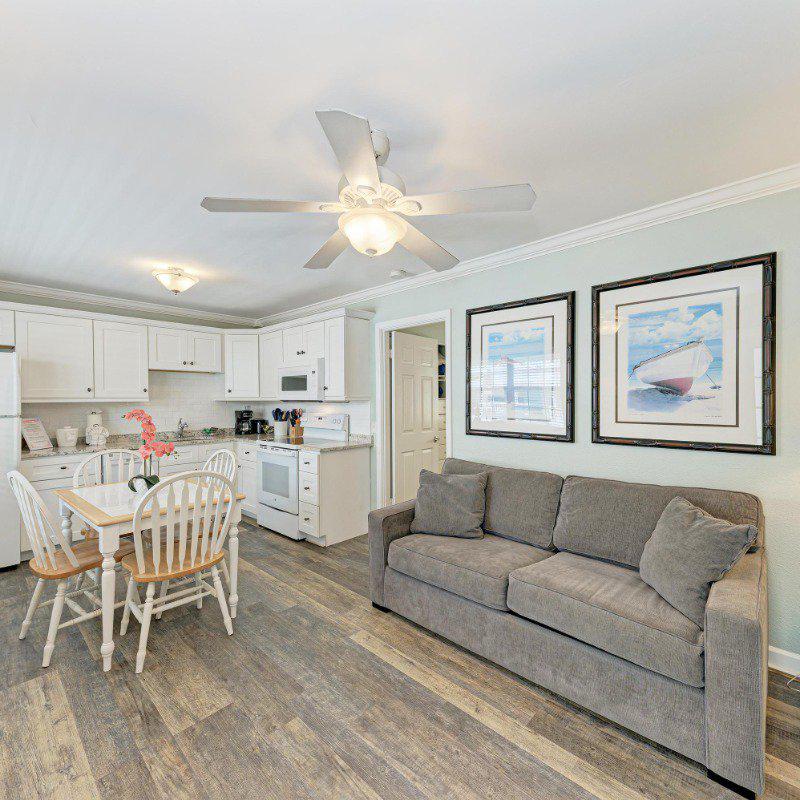 Step inside this beautifully remodeled, turnkey-furnished beach cottage, fully stocked and ready to enjoy or rent. The interior features luxury vinyl plank flooring throughout and an inviting open-concept layout that seamlessly connects the living room and kitchen. The primary bedroom includes an en suite bath, while the living room offers a queen sleeper sofa for additional guests.