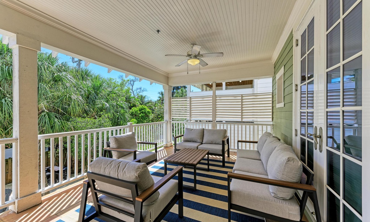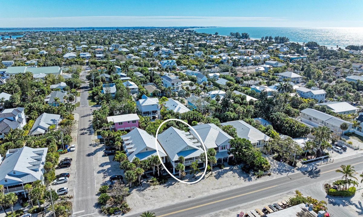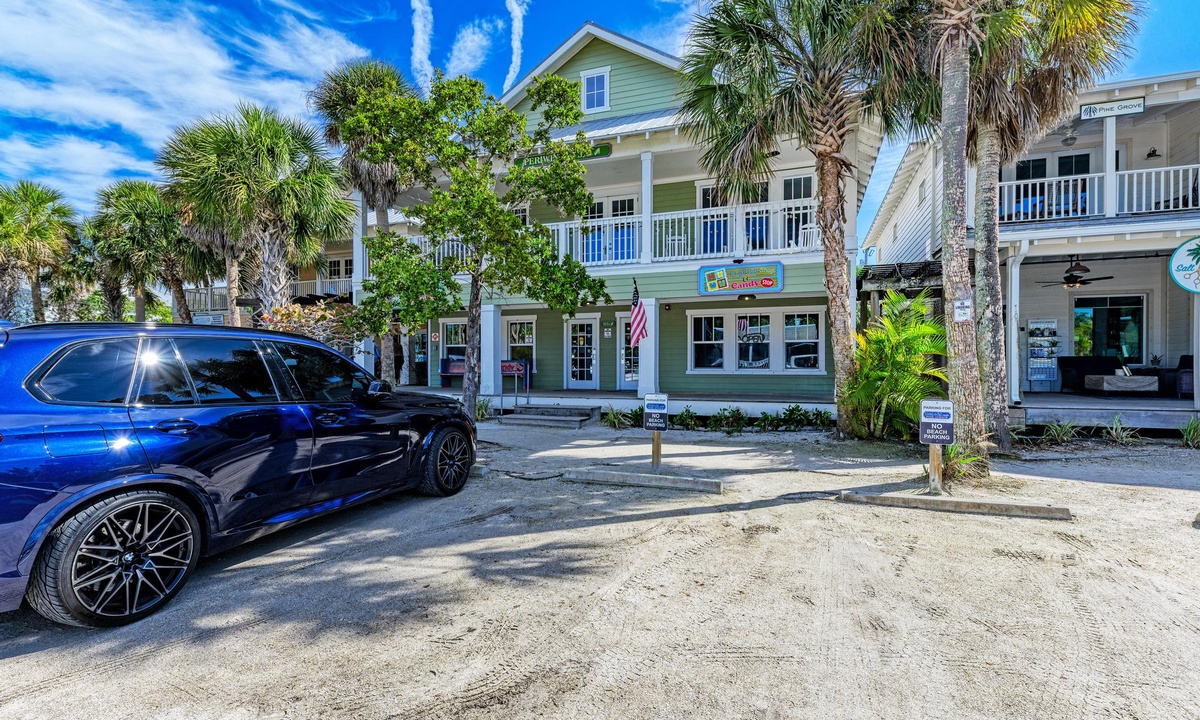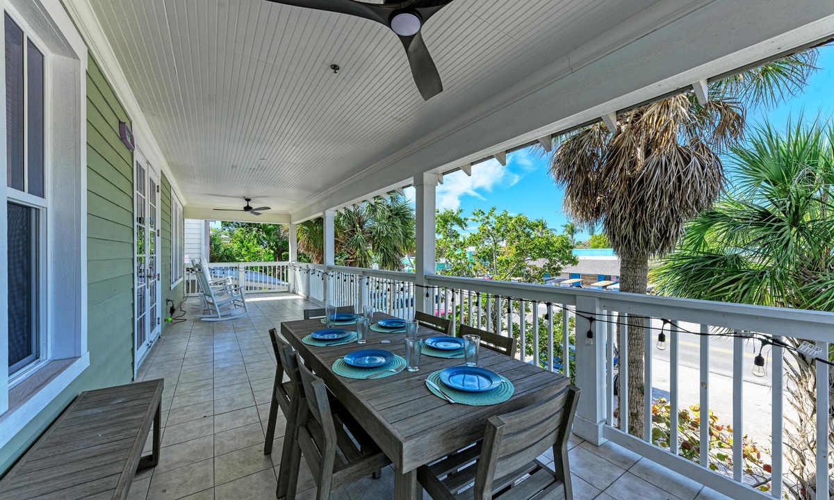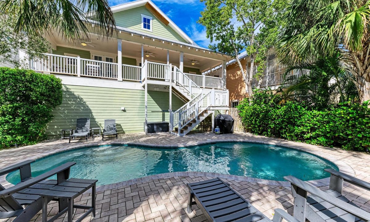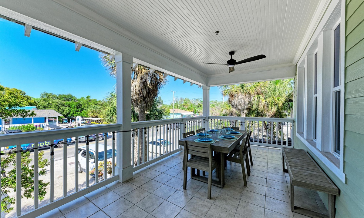 Outside, you’ll find 2 large, covered balconies, perfect for morning coffee or evening cocktails. The front balcony overlooks the hustle and bustle of Pine Avenue, while the second balcony in the back overlooks your private, heated pool. Relax in the sun and spend the afternoon cooking out on the lanai with the gas grill.