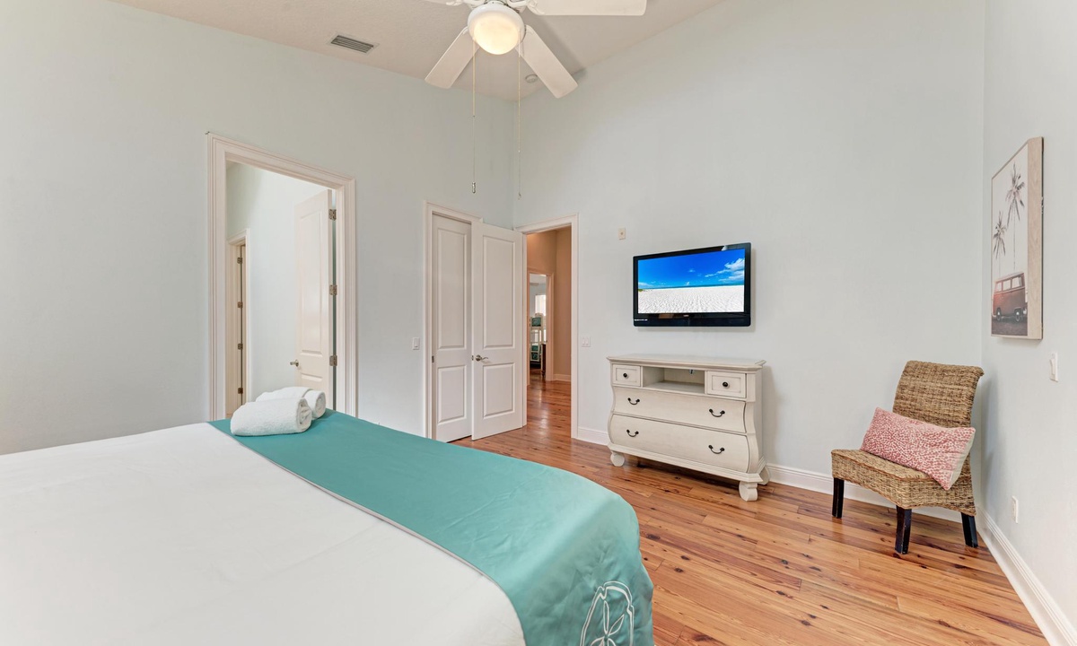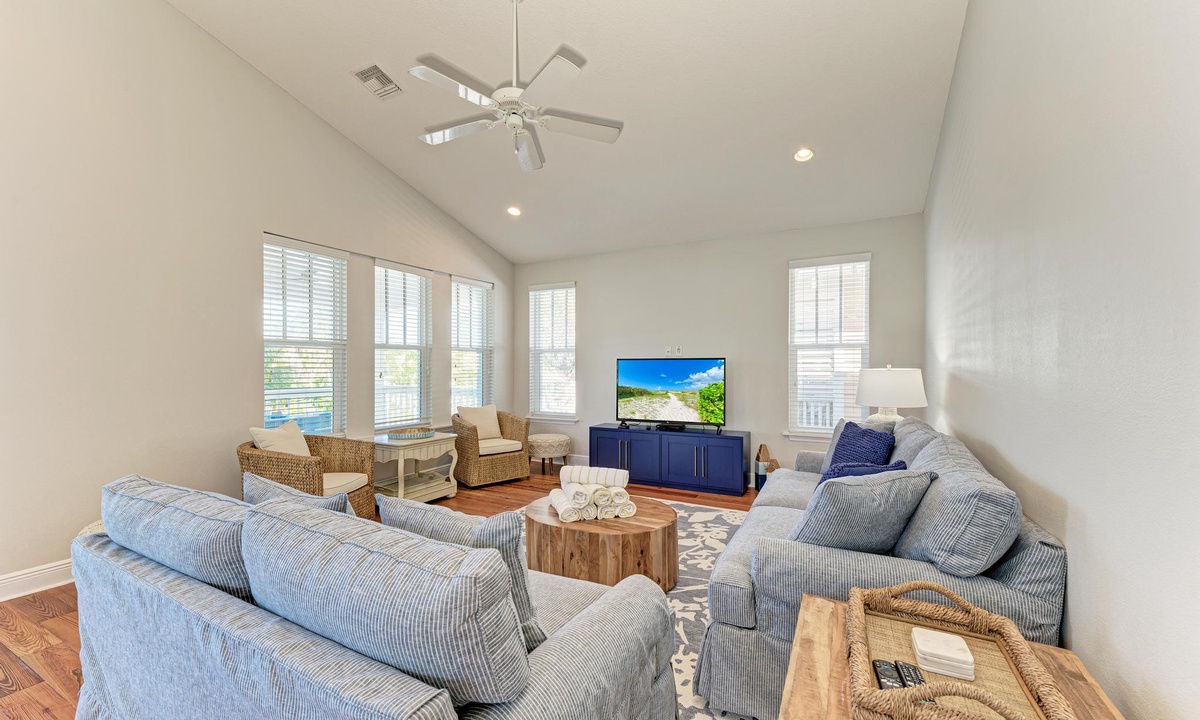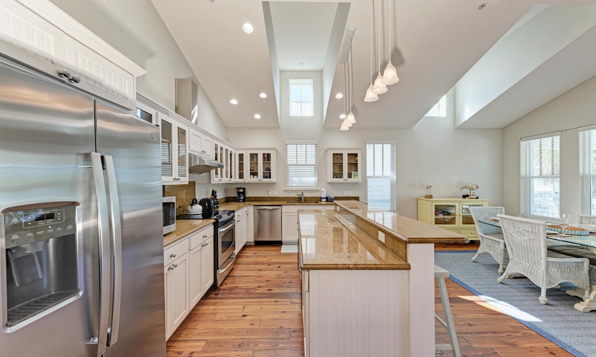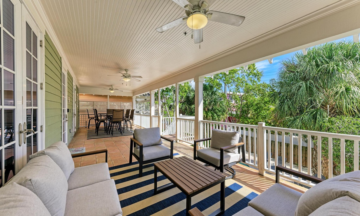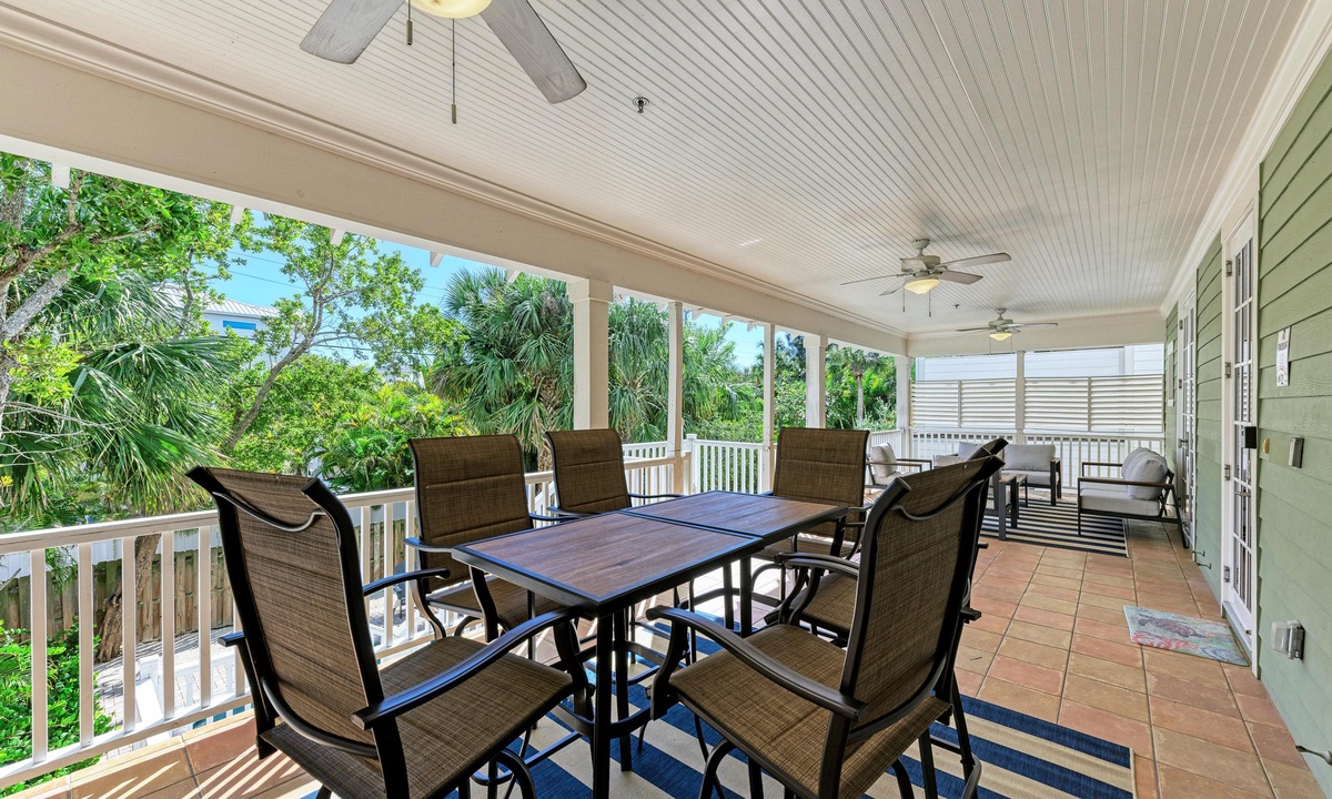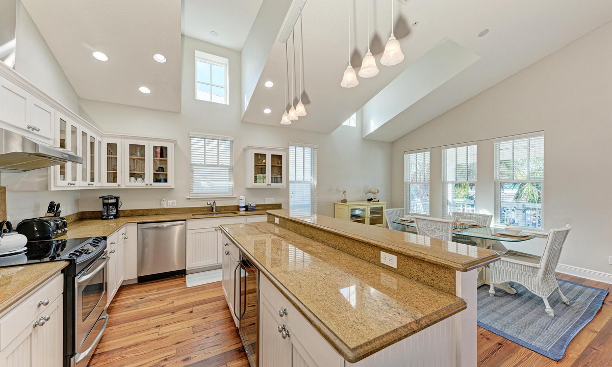Outside, you’ll find 2 large, covered balconies, perfect for morning coffee or evening cocktails. The front balcony overlooks the hustle and bustle of Pine Avenue, while the second balcony in the back overlooks your private, heated pool. Relax in the sun and spend the afternoon cooking out on the lanai with the gas grill.