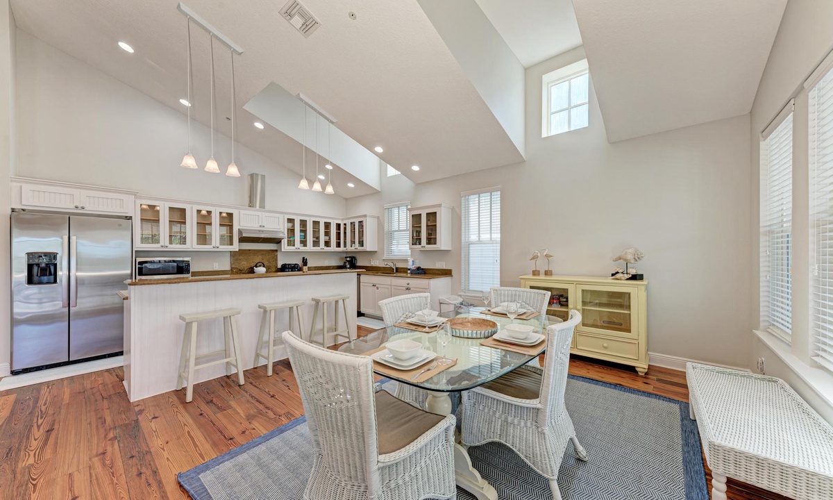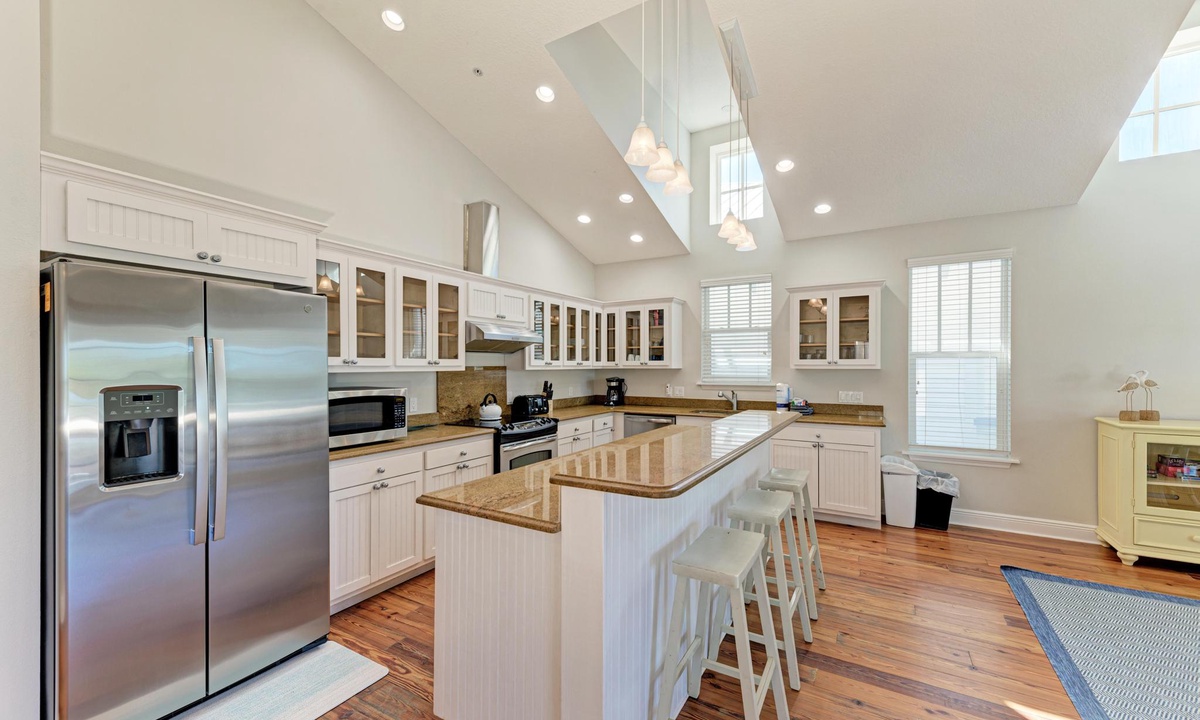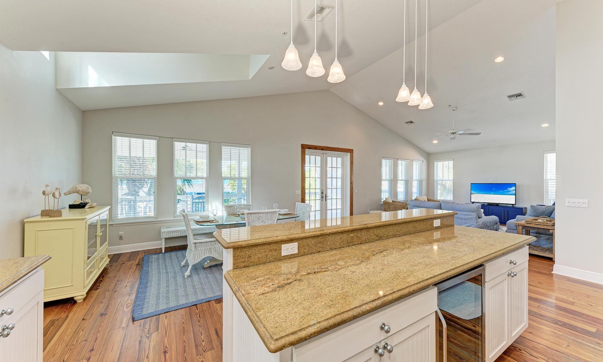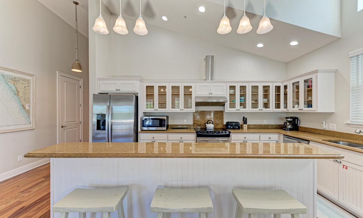 Inside, you’ll find wide-open living areas with vaulted ceilings, tons of natural light and spacious bedrooms. The space features designer furnishings and stunning reclaimed wood floors. In the kitchen, you’ll find granite countertops and stainless steel appliances, with plenty of room for the chef to make magic happen! When it’s time to unwind, the living room features a large HDTV, WiFi, cable and plenty of seating, along with a sleeper sofa. Fall in love with the traditional, casual feel of Pine Avenue and your own private escape!