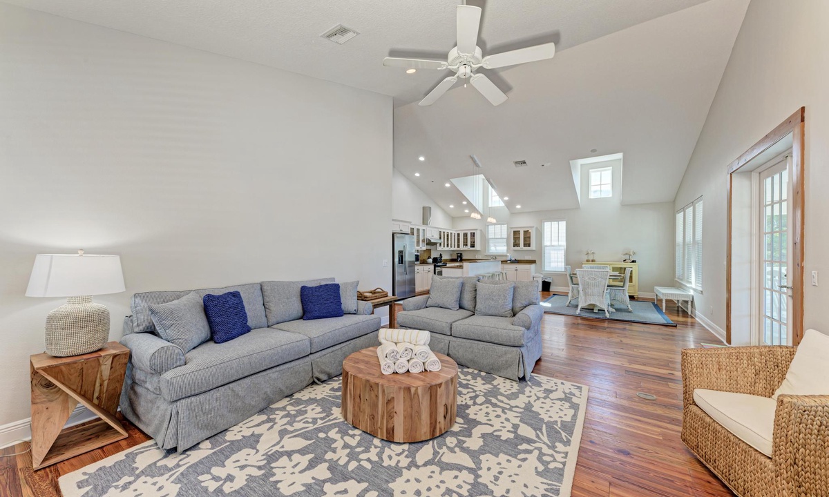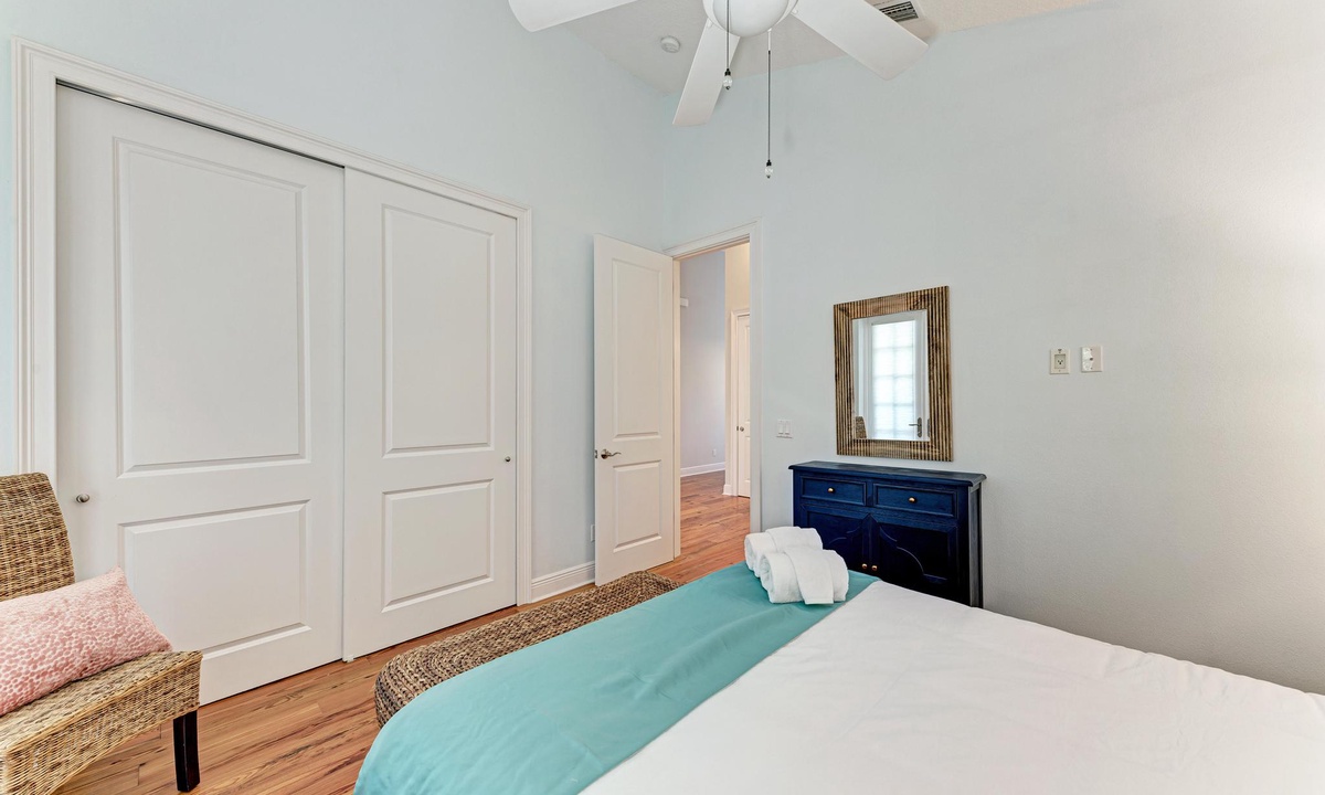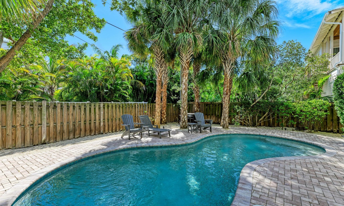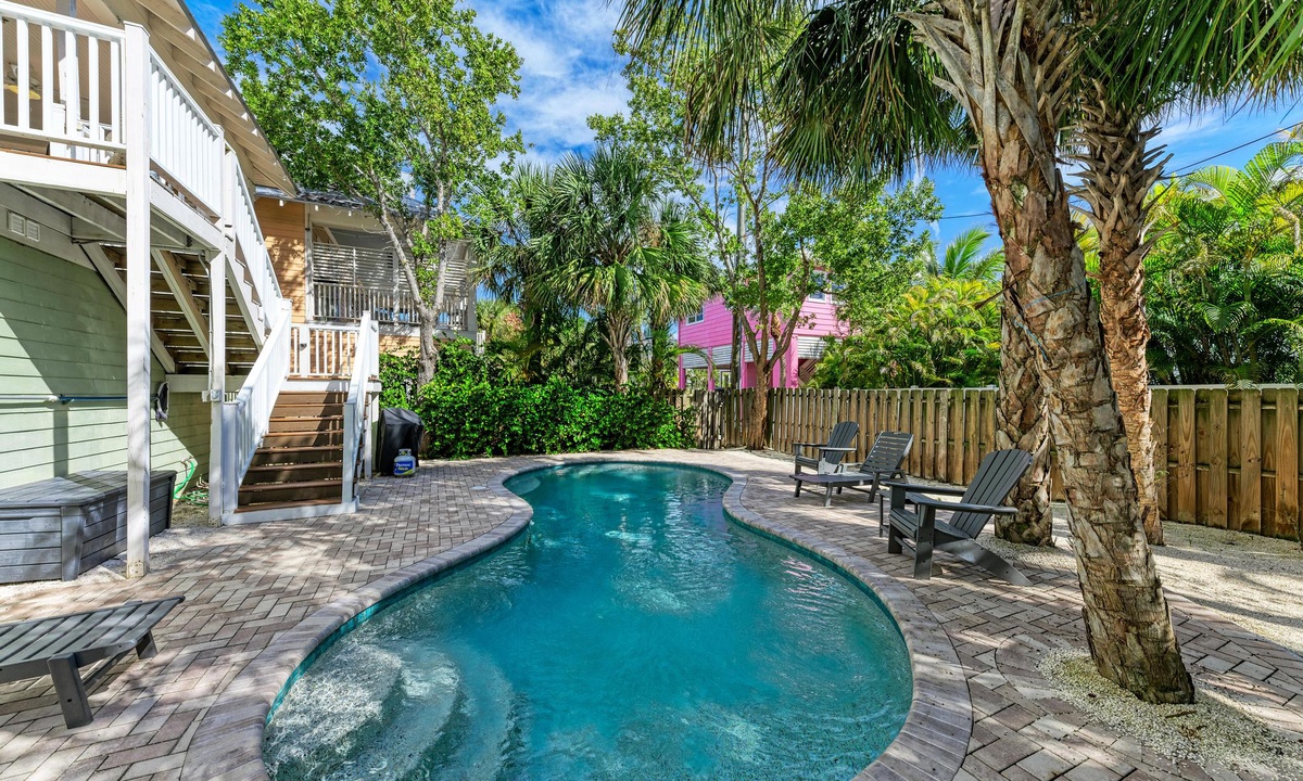 This property is a hidden gem. With its high ceilings, large open kitchen, and comfortable bedrooms, it feels very spacious. The unexpected thing about it is that despite it being right on Pine Ave above a shop it is quiet and private. The porch that overlooks the private pool has an outdoor couch/chairs conversation set and a separate space for a high top table - lots of room for reading a good book and playing cards or just relaxing/taking a nap!- Anonymous U , Posted: 01/15/2025