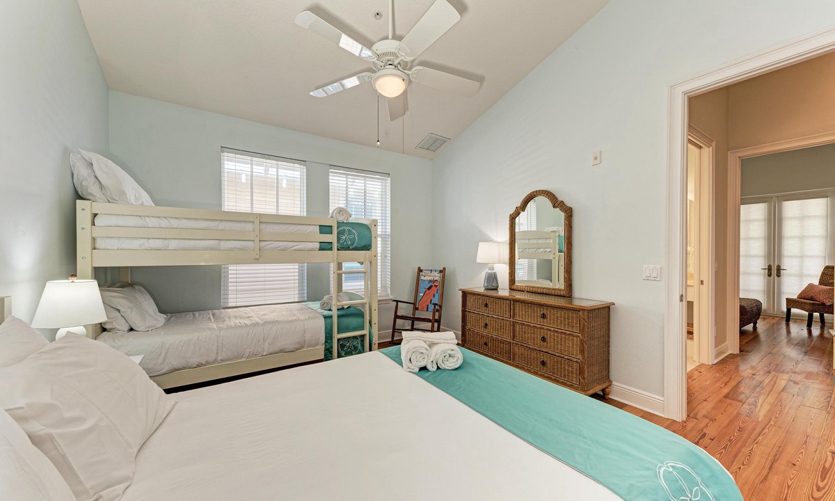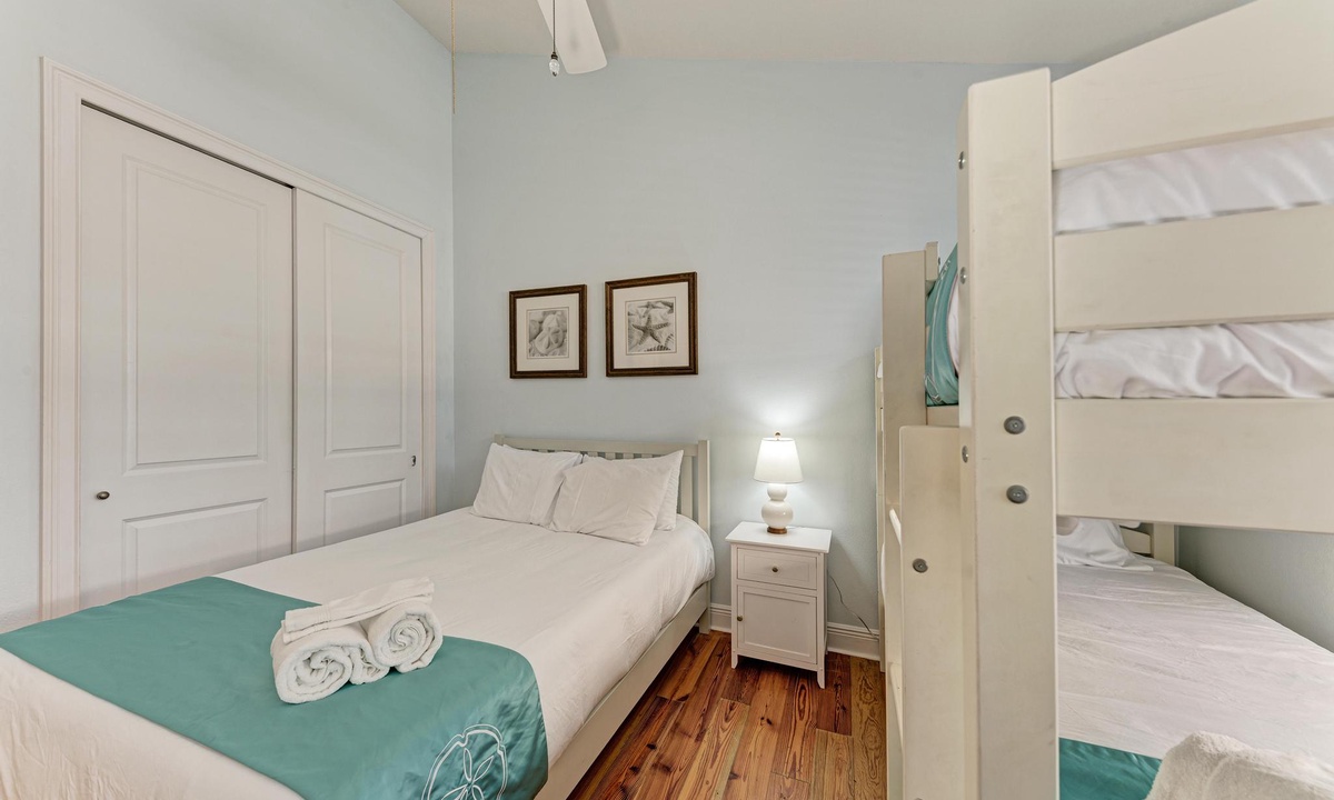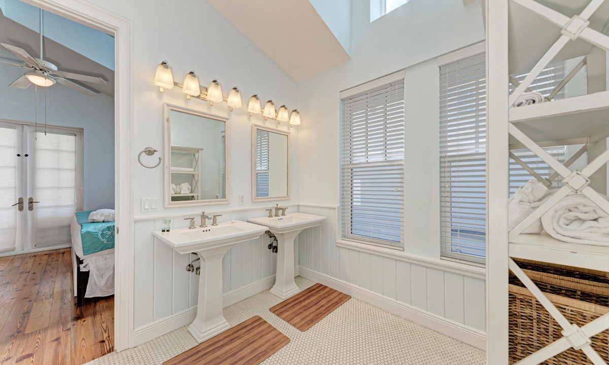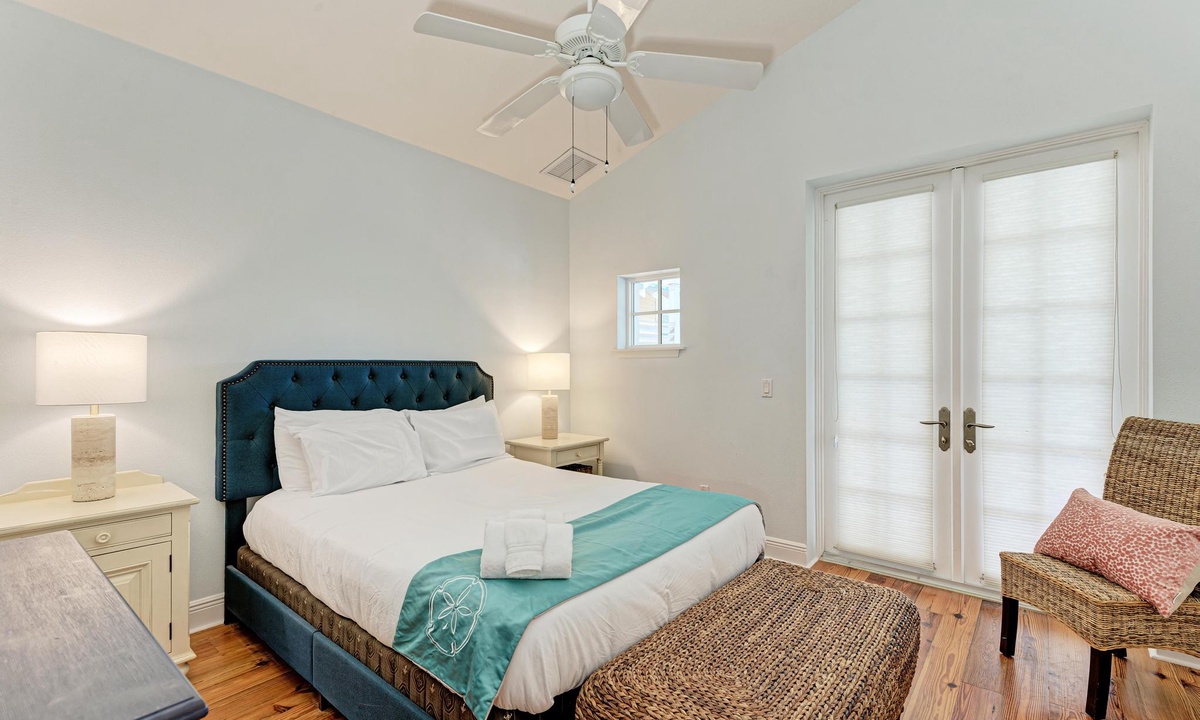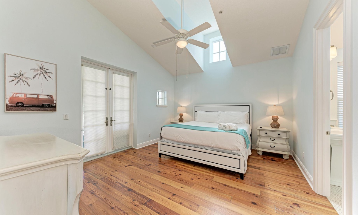 This property is a hidden gem. With its high ceilings, large open kitchen, and comfortable bedrooms, it feels very spacious. The unexpected thing about it is that despite it being right on Pine Ave above a shop it is quiet and private. The porch that overlooks the private pool has an outdoor couch/chairs conversation set and a separate space for a high top table - lots of room for reading a good book and playing cards or just relaxing/taking a nap!- Anonymous U , Posted: 01/15/2025