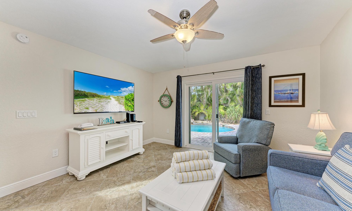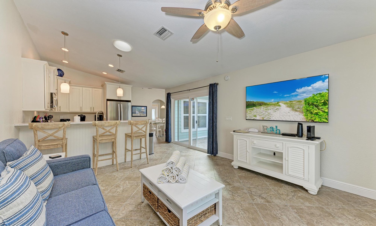 Property has been completely renovated with all new furniture throughout the home, new appliances, and new Keurig as well as a regular drip coffee maker. The living room features a new 65 inch smart TV, and the bedrooms each feature 42 inch smart TVs. The home includes high speed wireless internet and cable television.