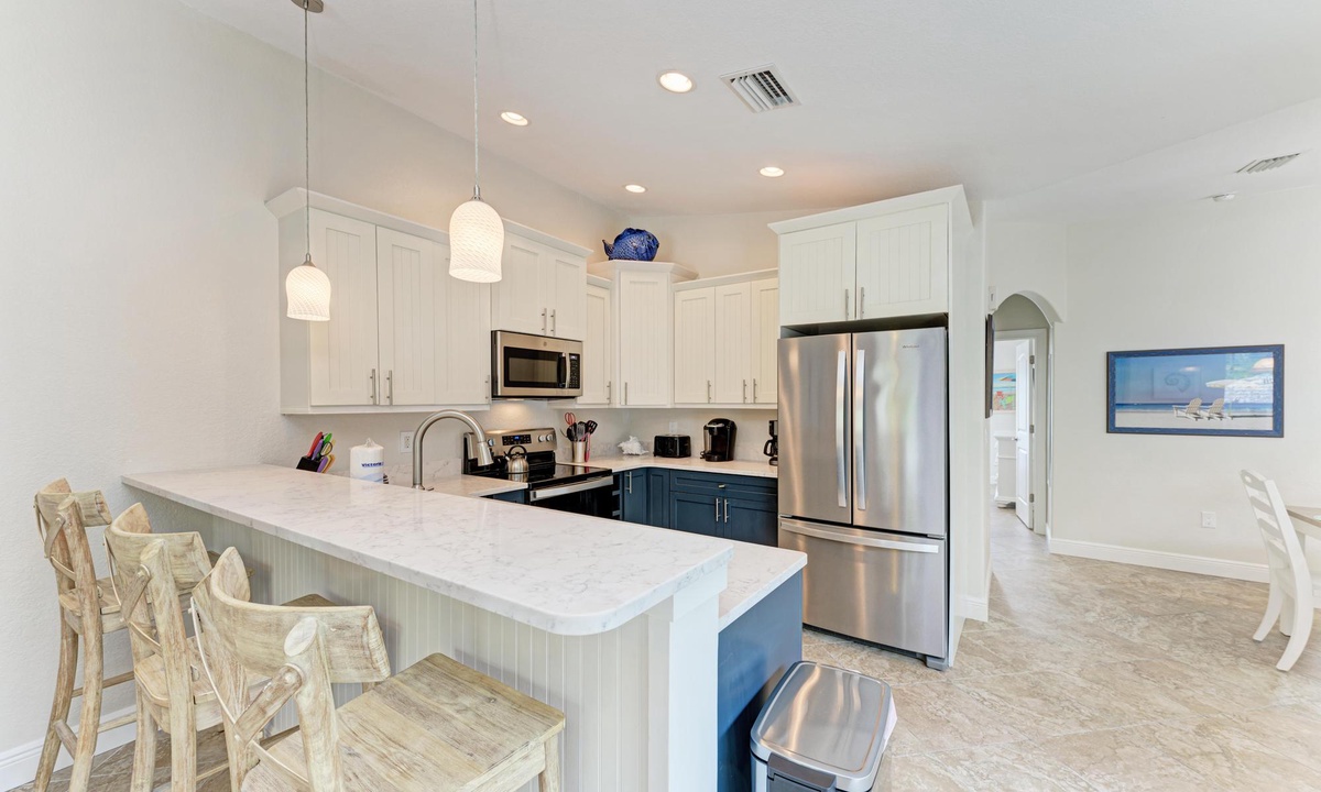 Appletini welcomes up to 6 guests comfortably with a King bed in each bedroom as well as a queen sleeper sofa in the living room. There is a spacious bathroom for each bedroom, each with its own walk in custom-tiled shower. The list can go on and on and you will come back year after year to enjoy beautiful Anna Maria Island.