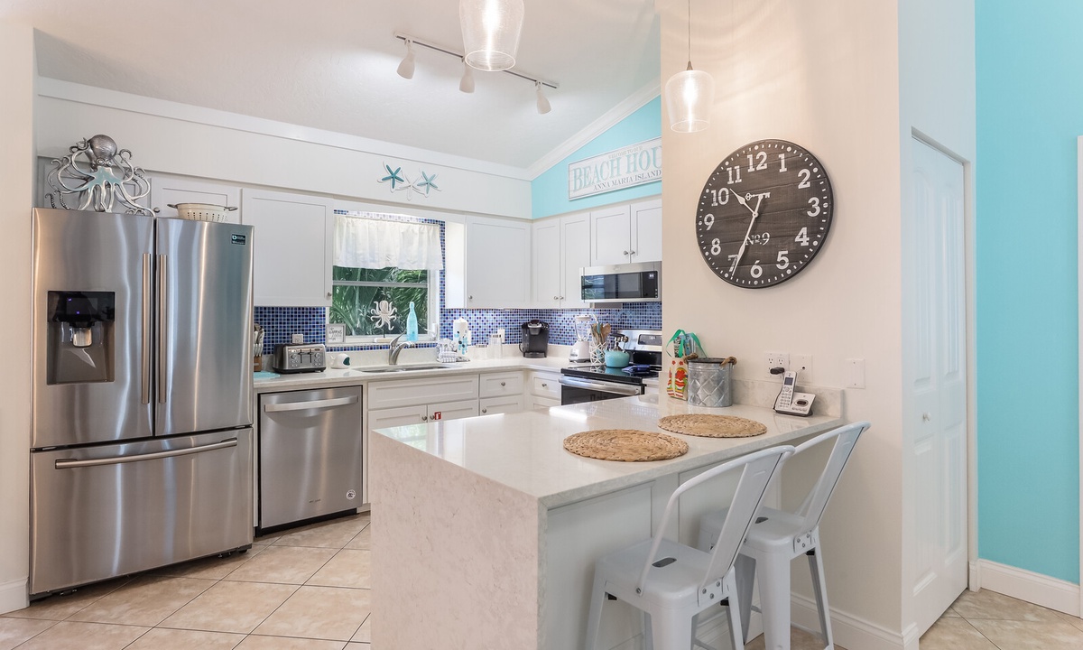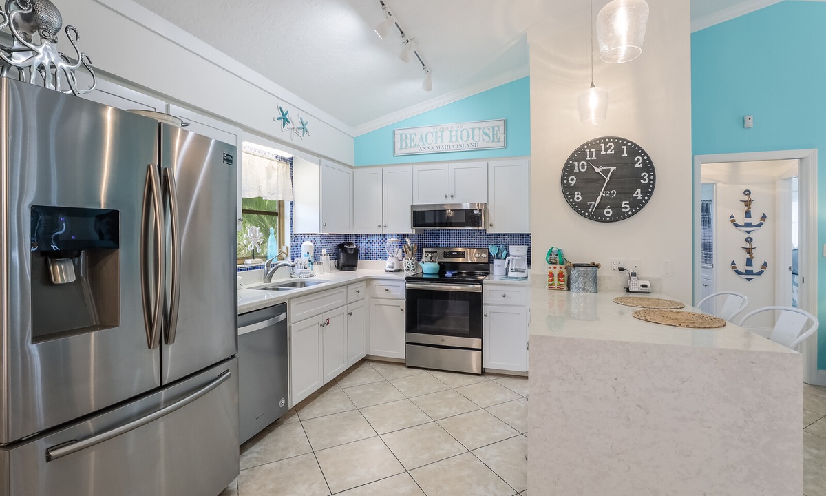 Keep your wardrobe fresh with the full size washer and dryer on site. This Anna Maria vacation rental home is also part of our Premium linen service, a true luxury.