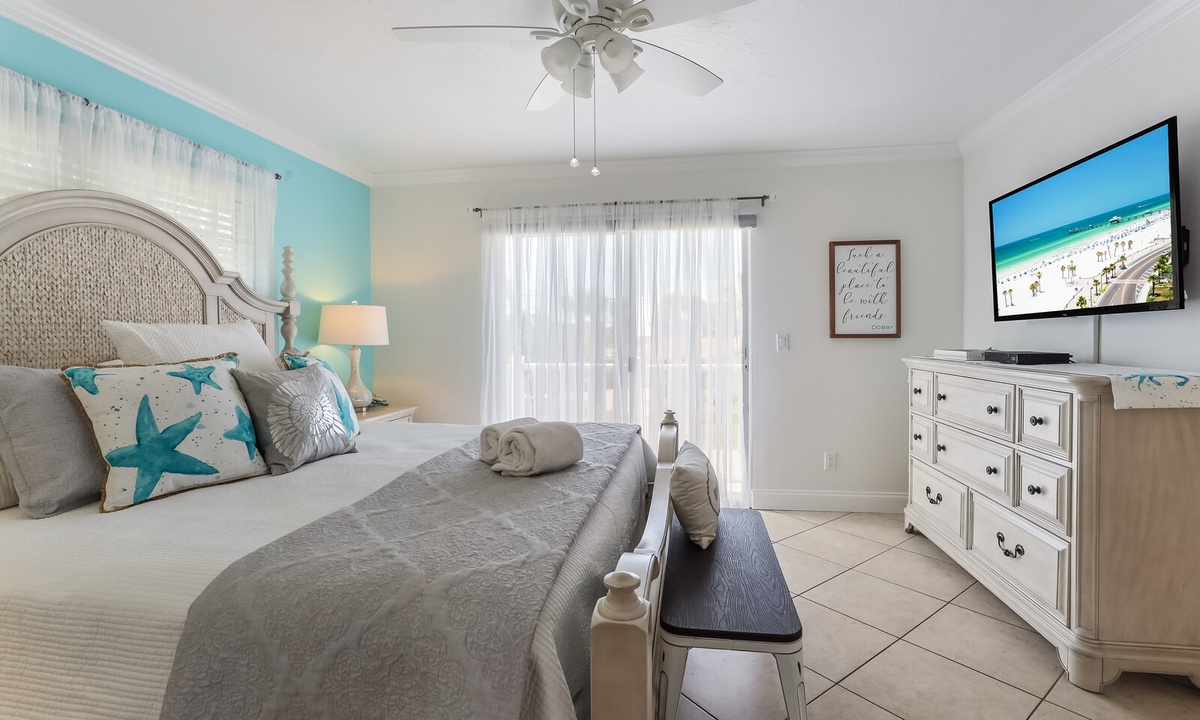 This is a beautiful home, very welcoming right down to the wall art: Dream of summers that last forever, Naps for days, Stay awhile, Such a beautiful place to be with friends, Nothing like a day at the beach, And so the adventure begins, This is my happy place. Each bedroom has a television and a private veranda for private time and there is a game room below and an upstairs porch and enclosed pool with UV protection screening. The gulf side beach is right at the end of the street with fine white sand and the warmest turquoise water we have ever been in. We really enjoyed our stay and would love to return.- Chris D from East Falmouth , Posted: 06/01/2022