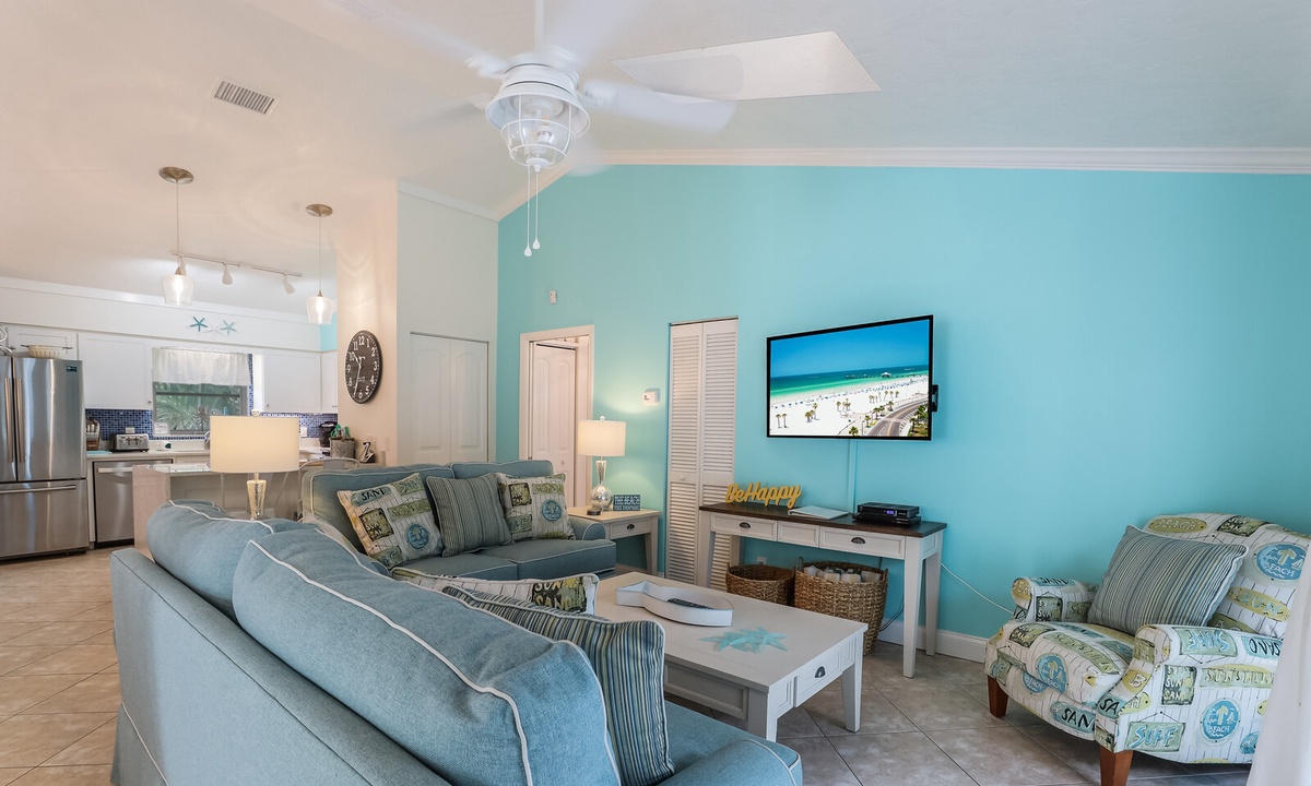 While relaxing indoors of this tropically decorated vacation home, enjoy 6 flat screen televisions, and wireless internet in one of several comfortable seating areas.