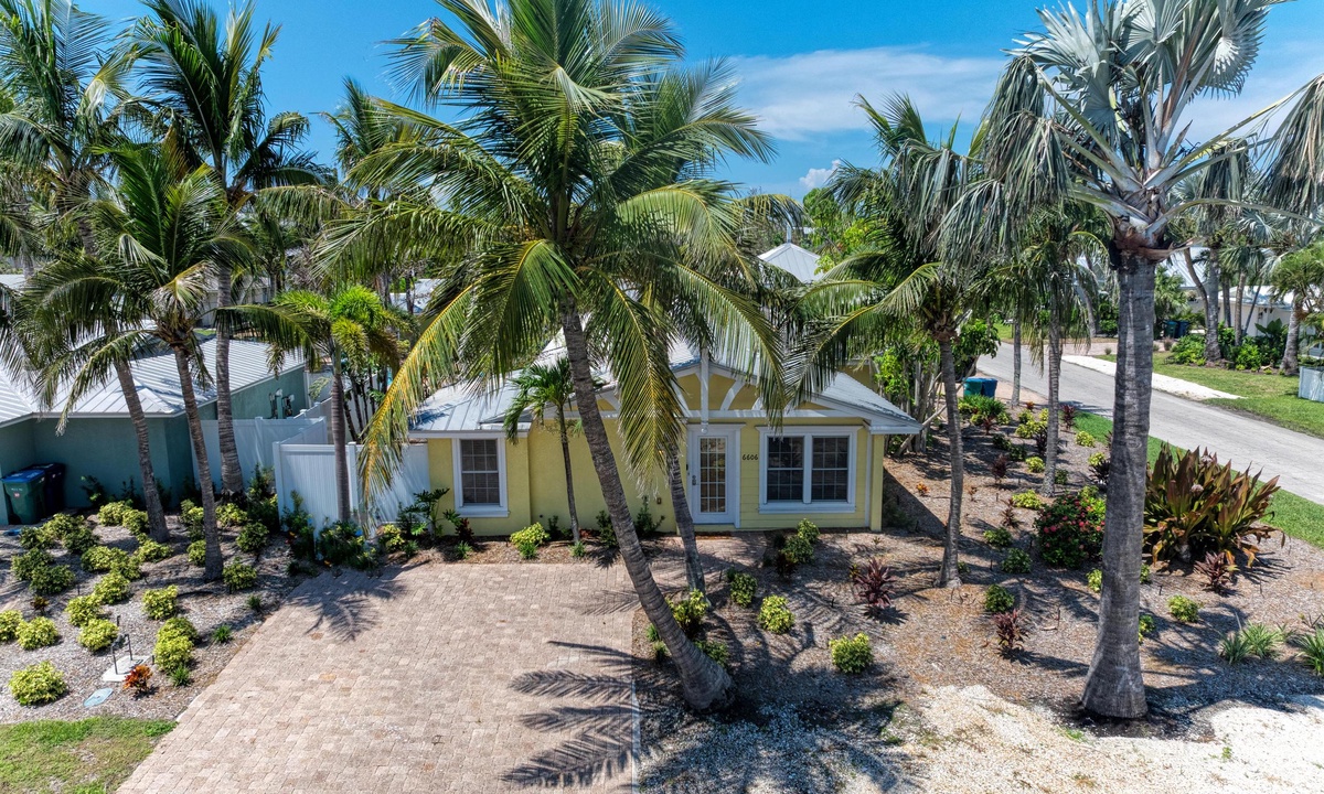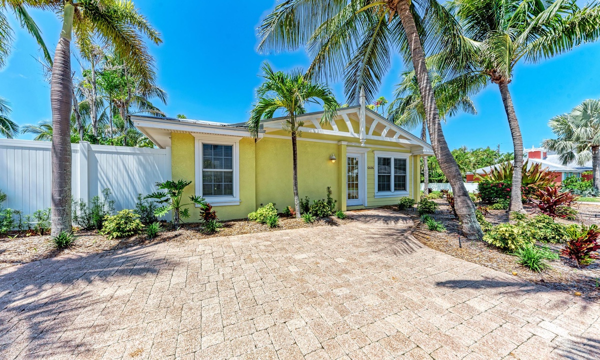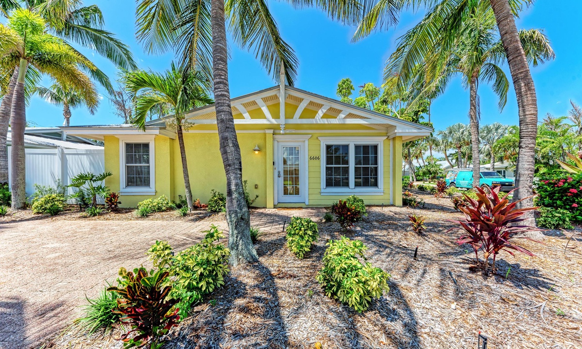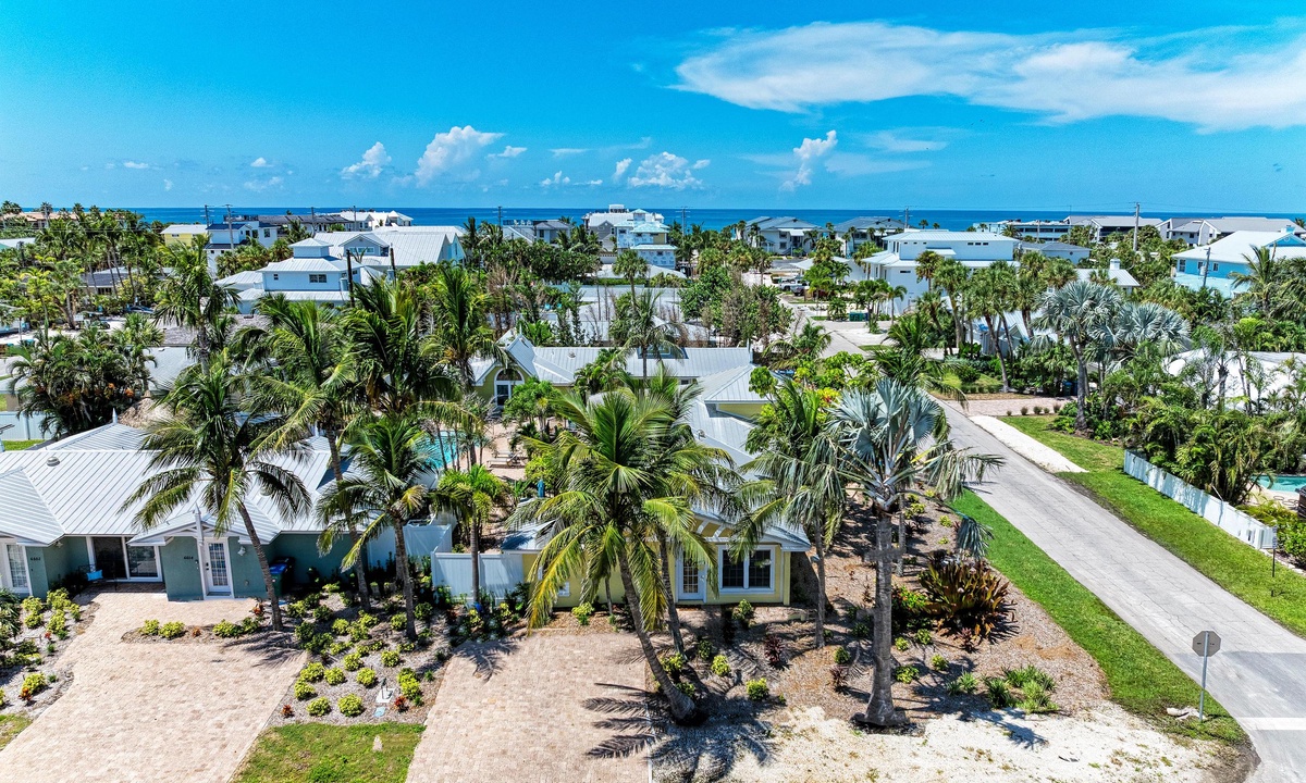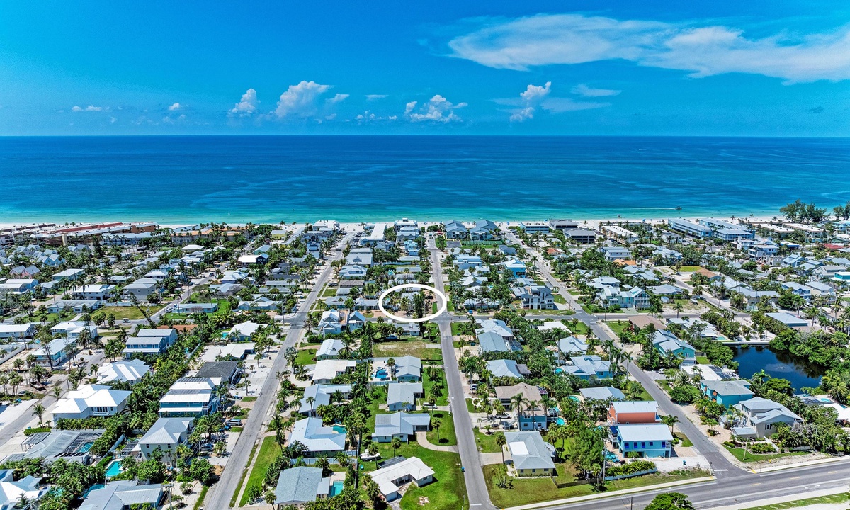 Just a short stroll block to the white sandy beach in Holmes Beach on Anna Maria Island. The free trolley is also just a quick walk away.