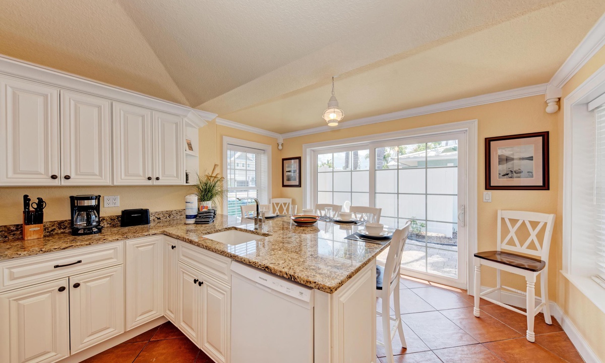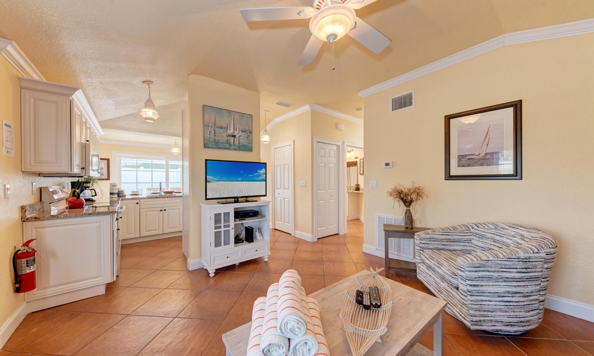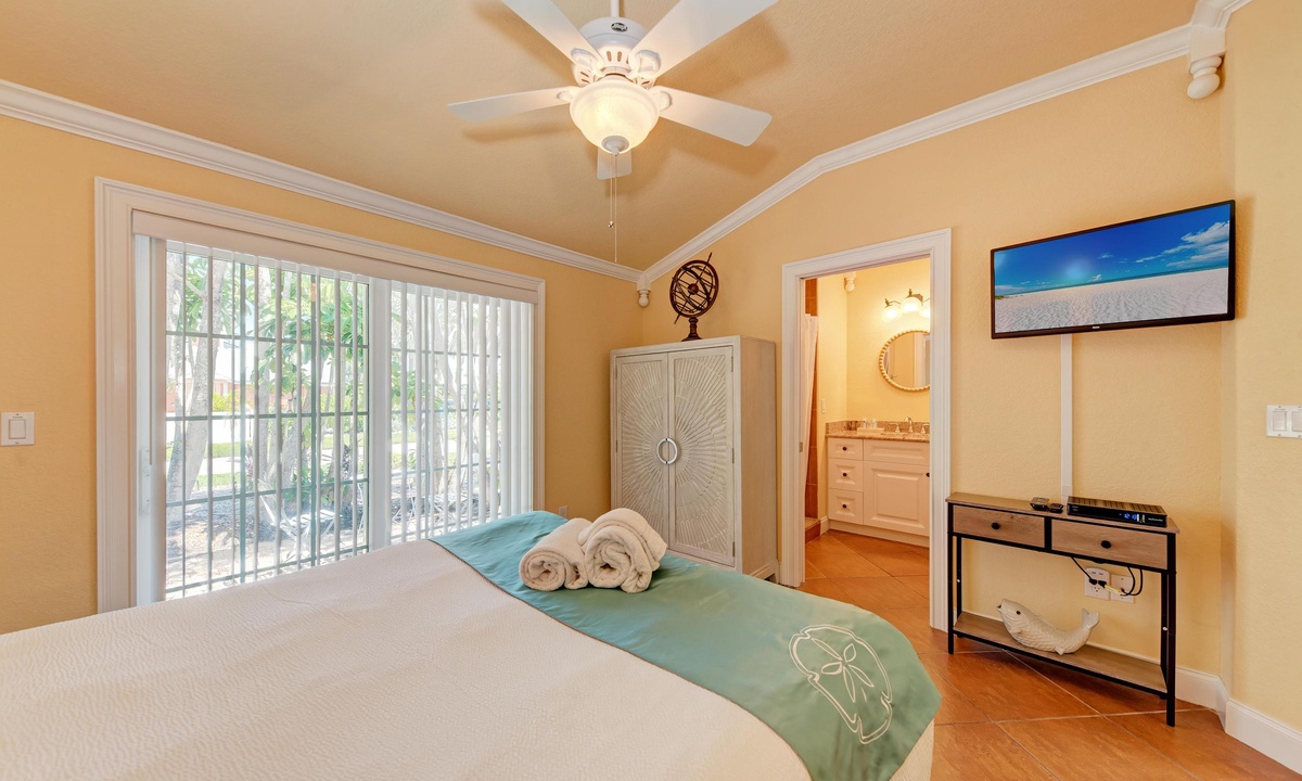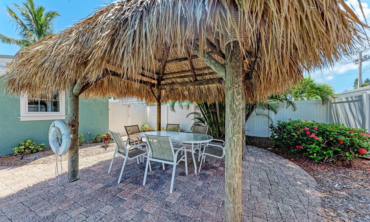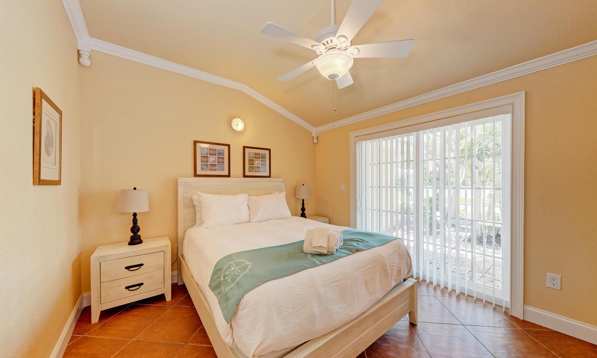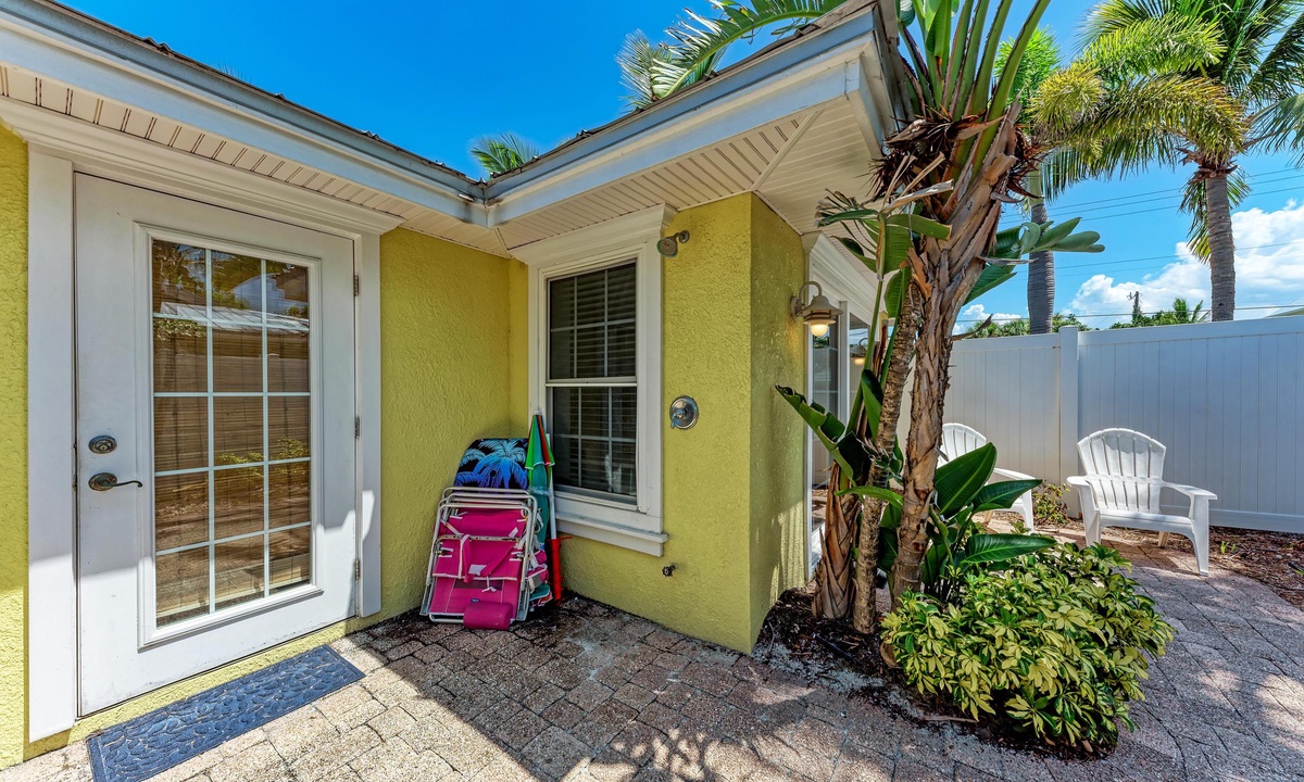 Just a short stroll block to the white sandy beach in Holmes Beach on Anna Maria Island. The free trolley is also just a quick walk away.
