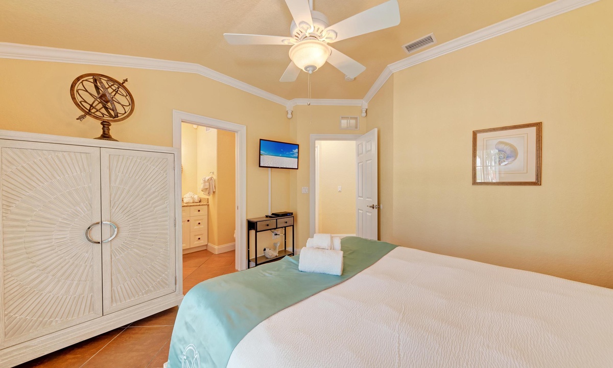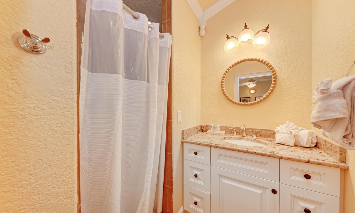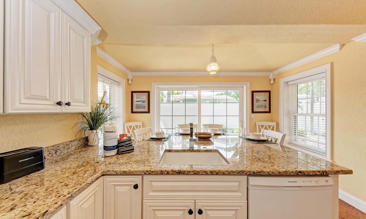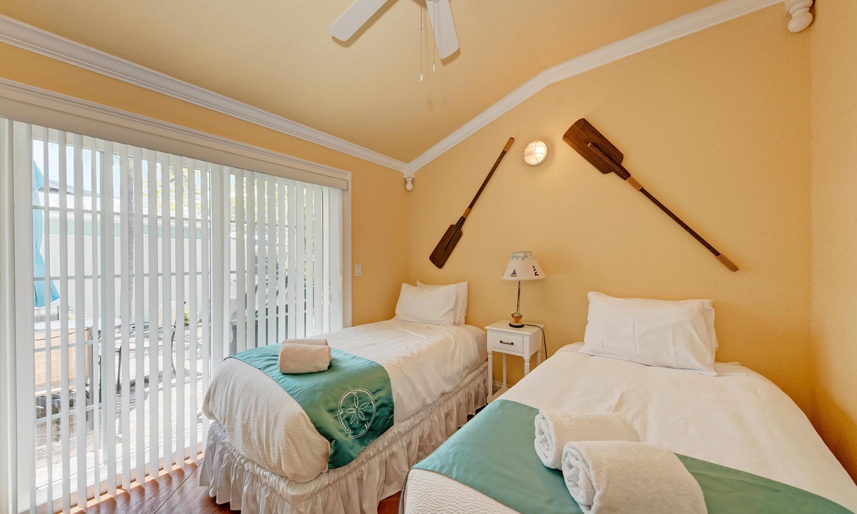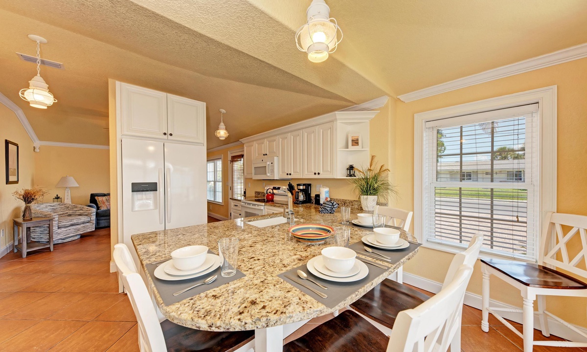 Just a short stroll block to the white sandy beach in Holmes Beach on Anna Maria Island. The free trolley is also just a quick walk away.