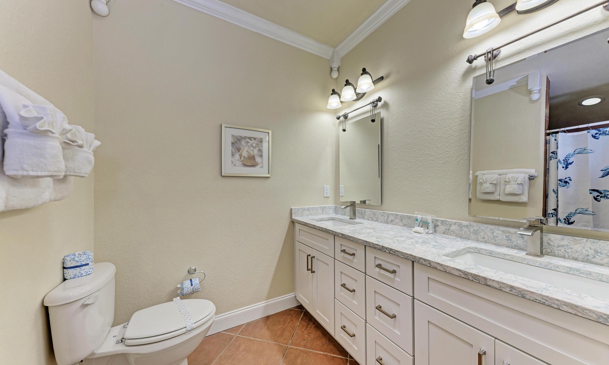 each is a short 1.5 blocks with access at the end of the street. Property was clean overall and the pool area is quite large which was great for helping with physical distancing. Rooms in unit were plenty large. Recommendations would be to have some plastic cups in the unit so you can take you cold beverage poolside. Our unit was pet friendly which was so nice as we always take our babies with us on vacation. Master bedroom mattress is quite firm. I always bring my own pillows, but my husband forgot his and actually ended up going to purchase one because he didn't like the ones provided. Mostly a matter of personal preference I suppose. Adult daughter was in the twin room and didn't really have any issues. The unit fully met our needs and was a decent price based on location and size of unit. 5 stars and would (and already have) recommend to friends and family. Note it doesn't have traditional dining space but has a bar that extends out with 4 barstools. Half the time we ate in front of the TV, so not a big deal to us.