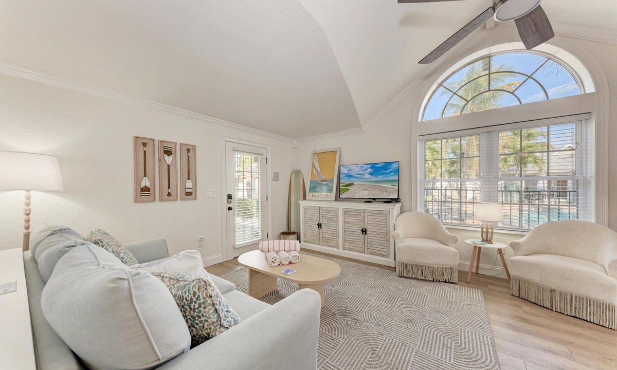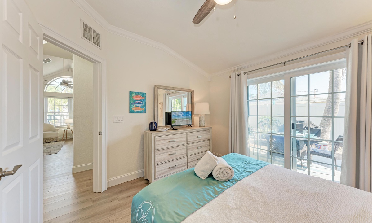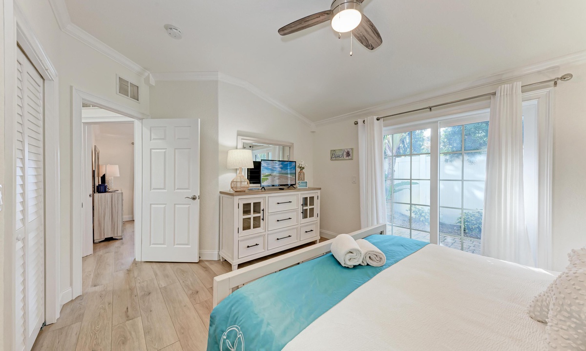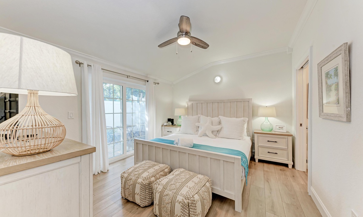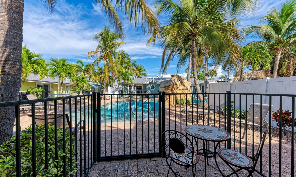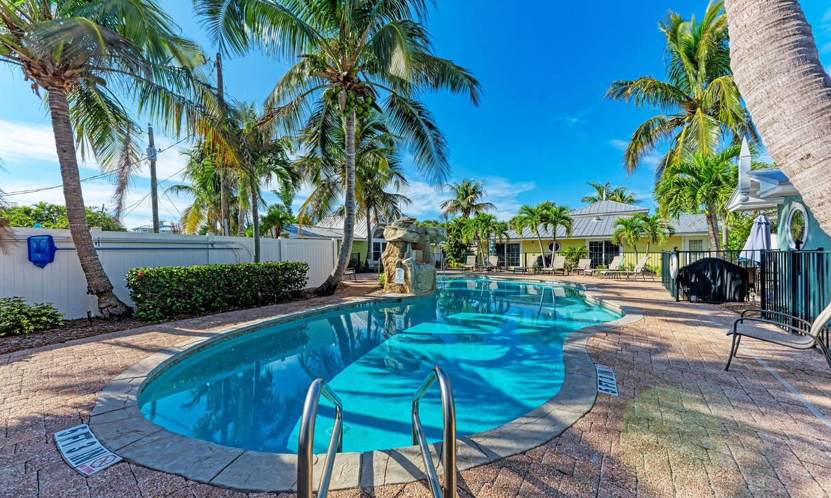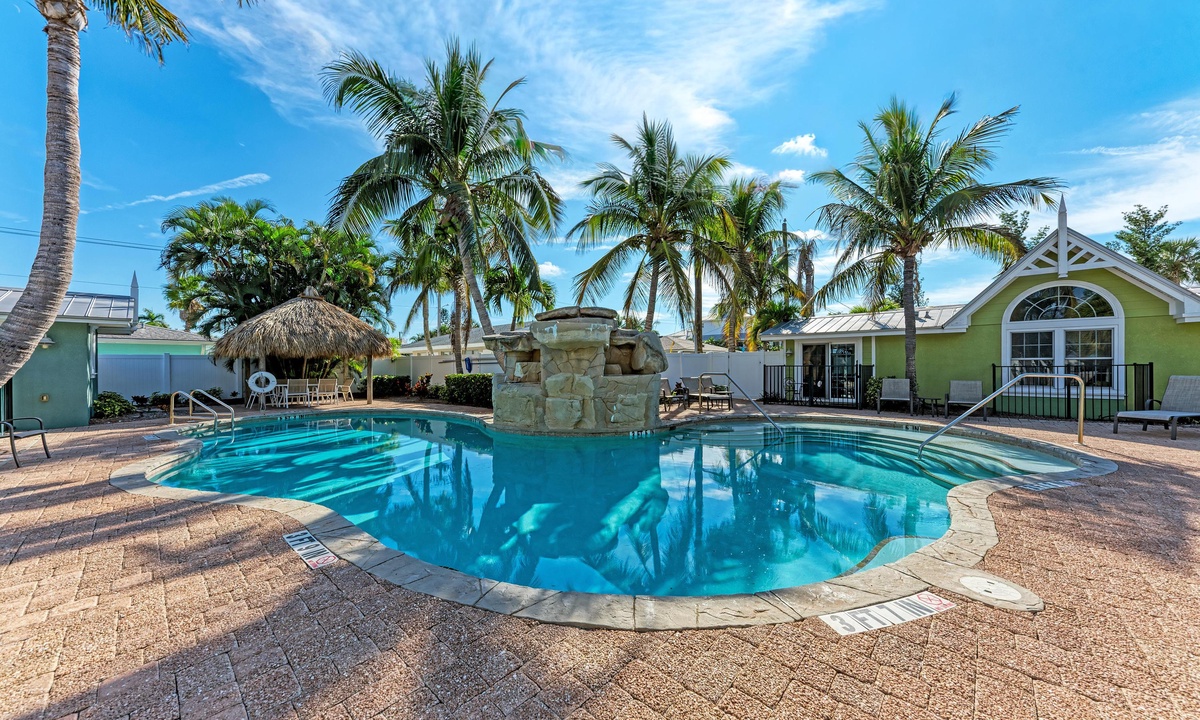 2 bedroom, 2 bathroom with a huge Tropical pool and 10' waterfall right outside your back door. ONLY Blue Lagoon cottage to have a separate dining room and private back patio with outdoor dining set up.