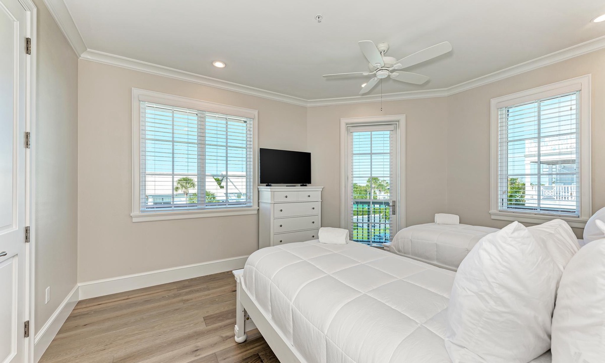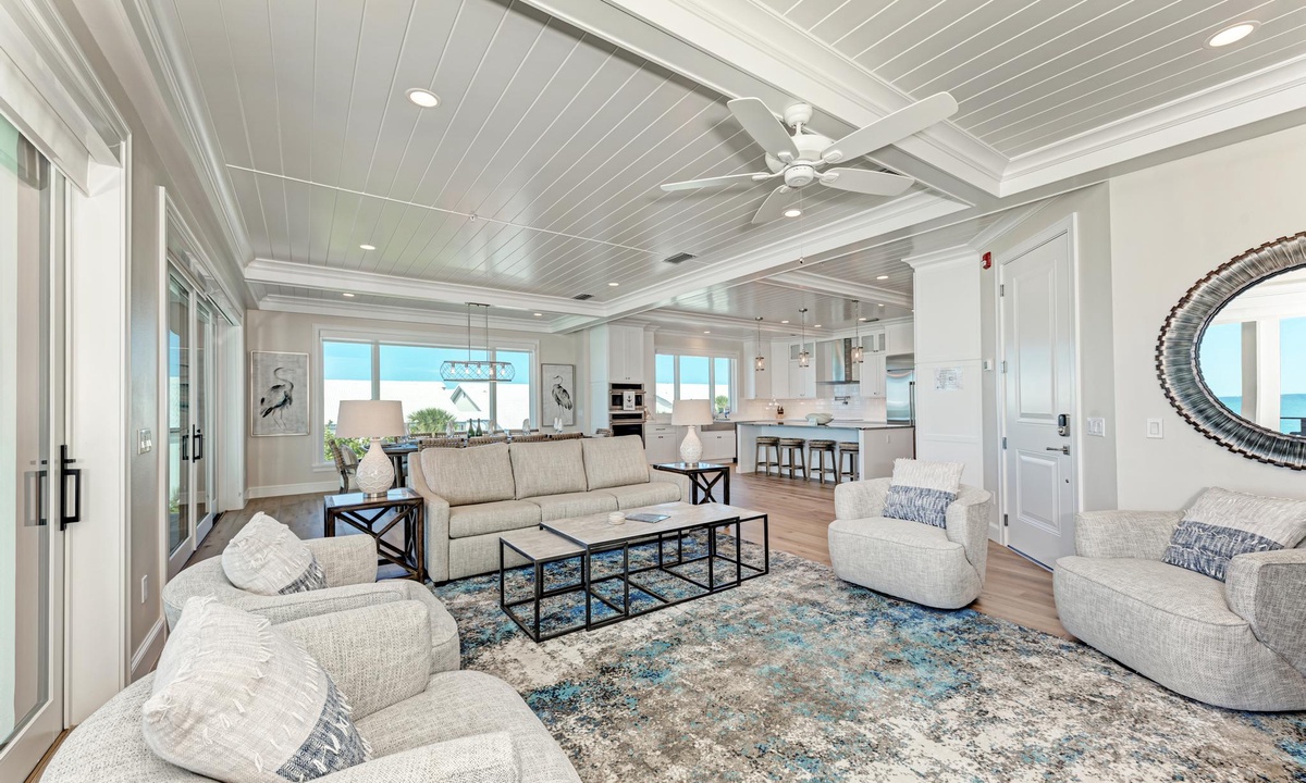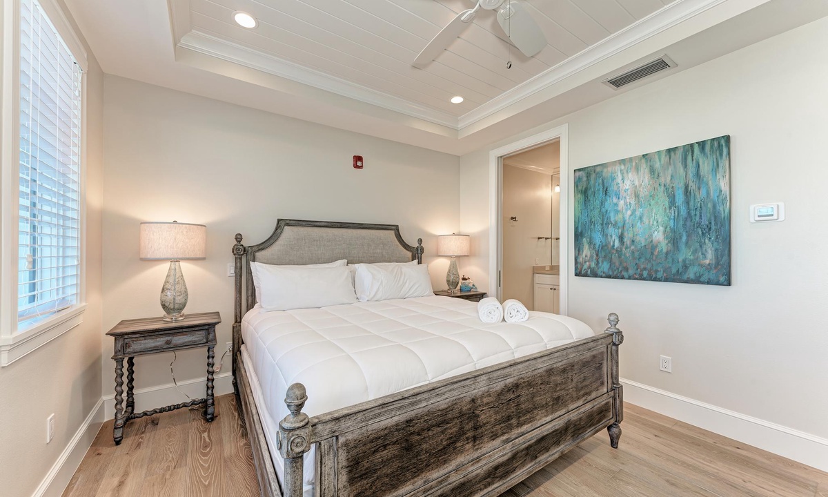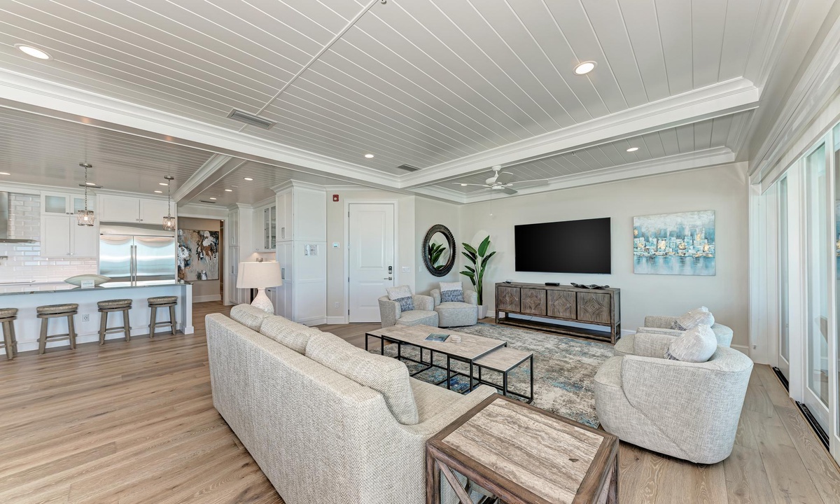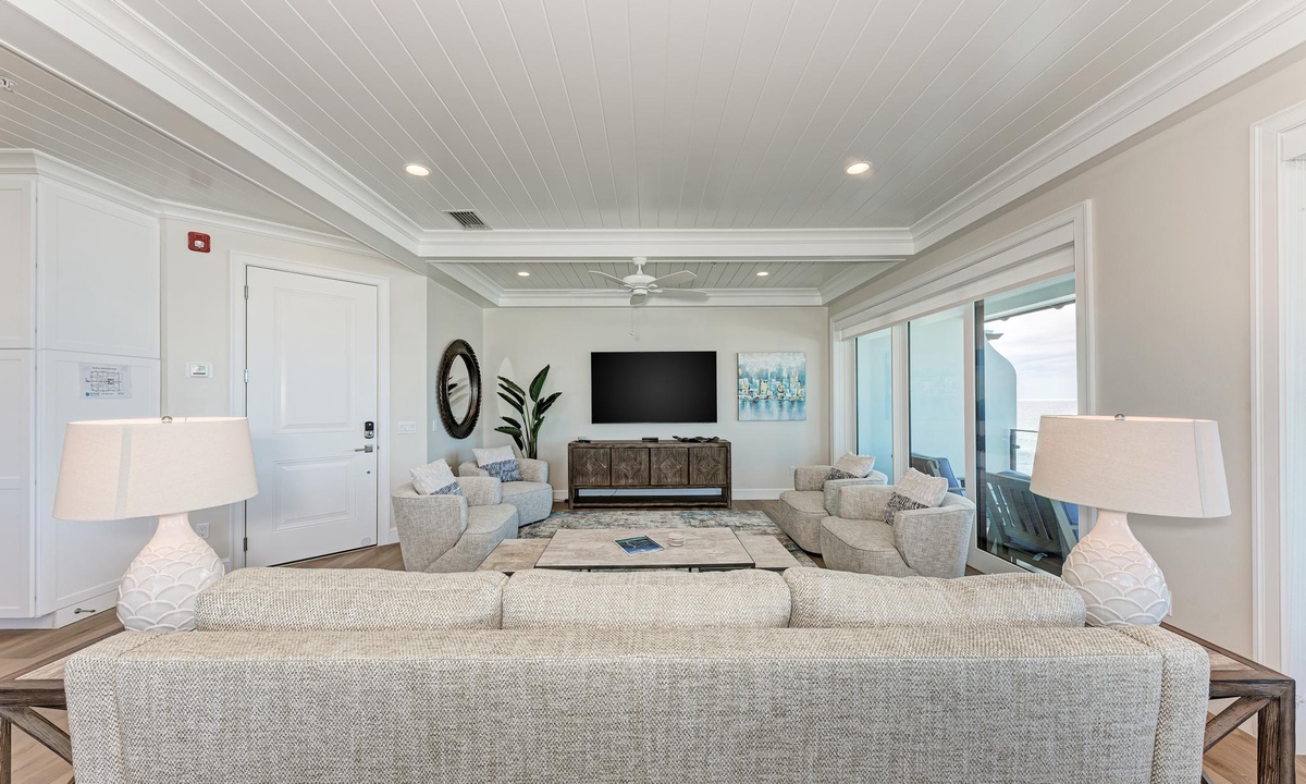 The bedrooms at Buena Vista are very comfortable with each room offering premium hotel quality linens and smart televisions with HBO and showtime. There are 2 master suites that have a King bed, and gorgeous master baths. The third bedroom is comfortably appointed, and also offers a King bed. The fourth bedroom is perfect for your little ones with a set of Twins. You can also sleep in the living room on the Queen sleeper sofa. All 3 full bathrooms offer walk-in showers, and there is an additional half bath in the main living space for guests.