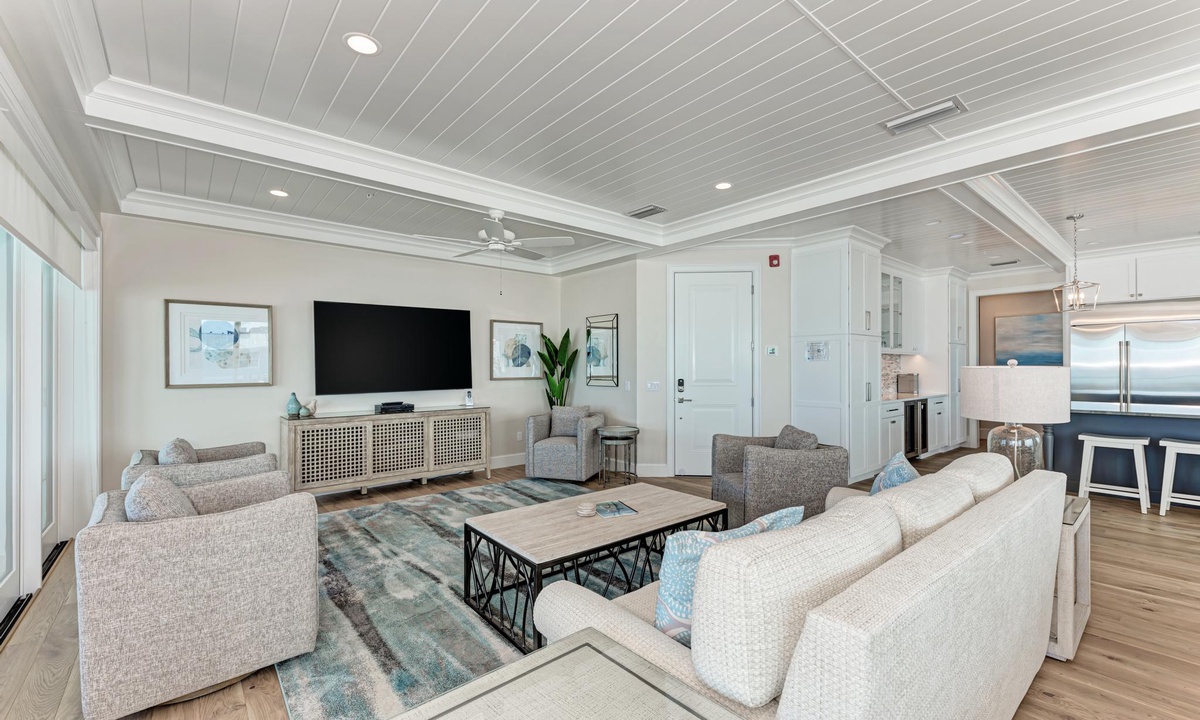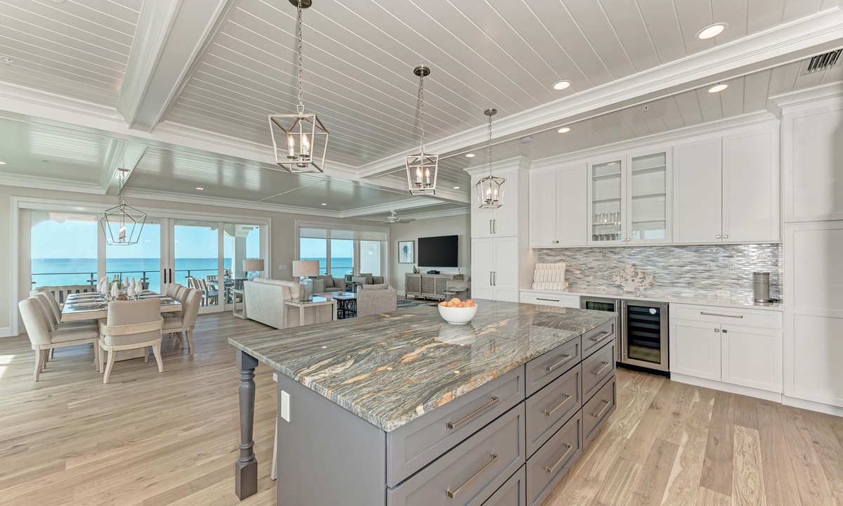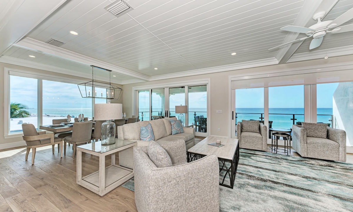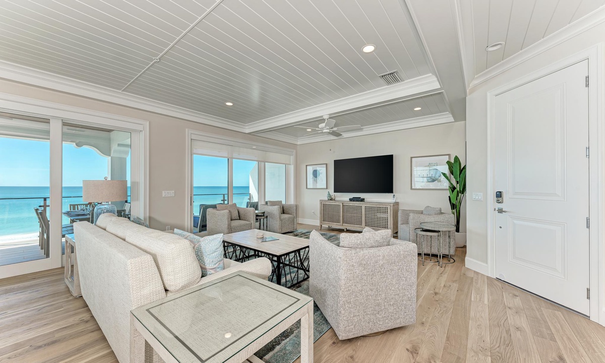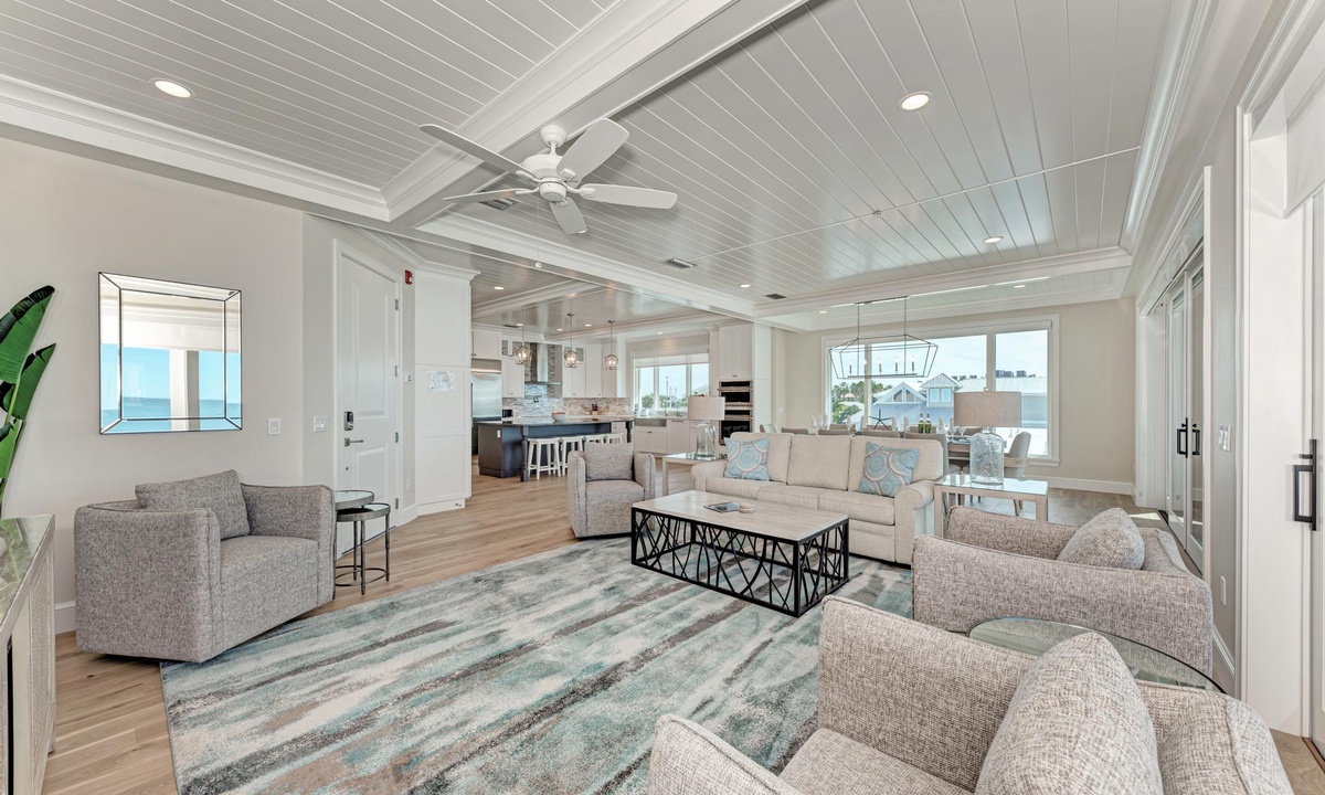 Staying at Buena Vista unit 4 is a fun and memorable experience. Including comfortable furniture, smart televisions in all rooms with HBO and Showtime, and a custom chefs kitchen with induction stove as well as a double door wine fridge; vacationers love celebrating their stay in the spacious living room perfect for entertaining. The open floor plan and over 2400 square feet make for the perfect space to entertain in your home away from home.
