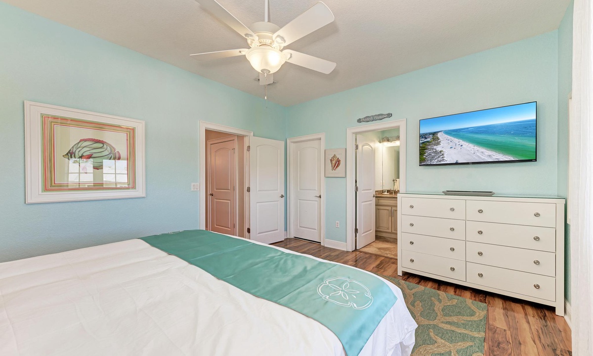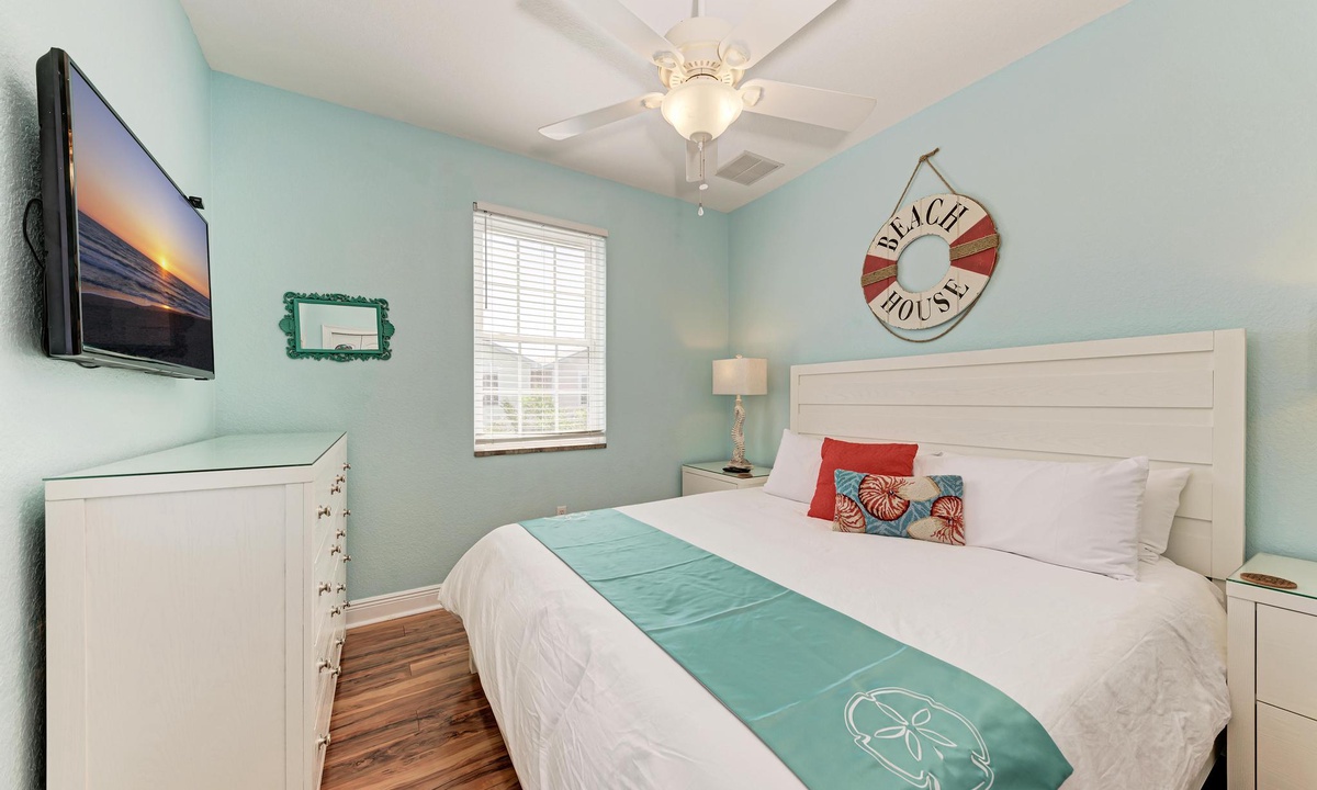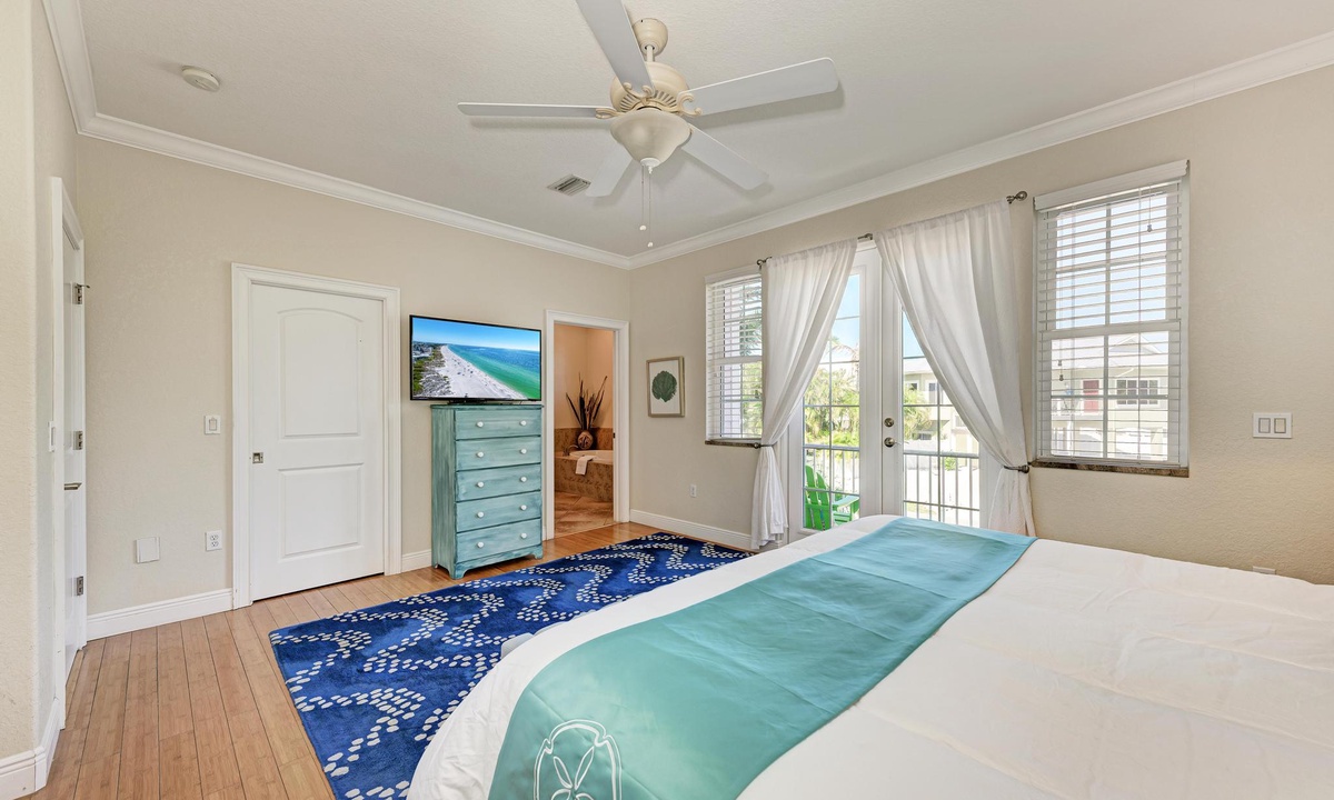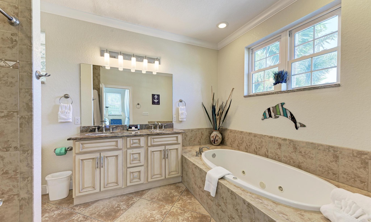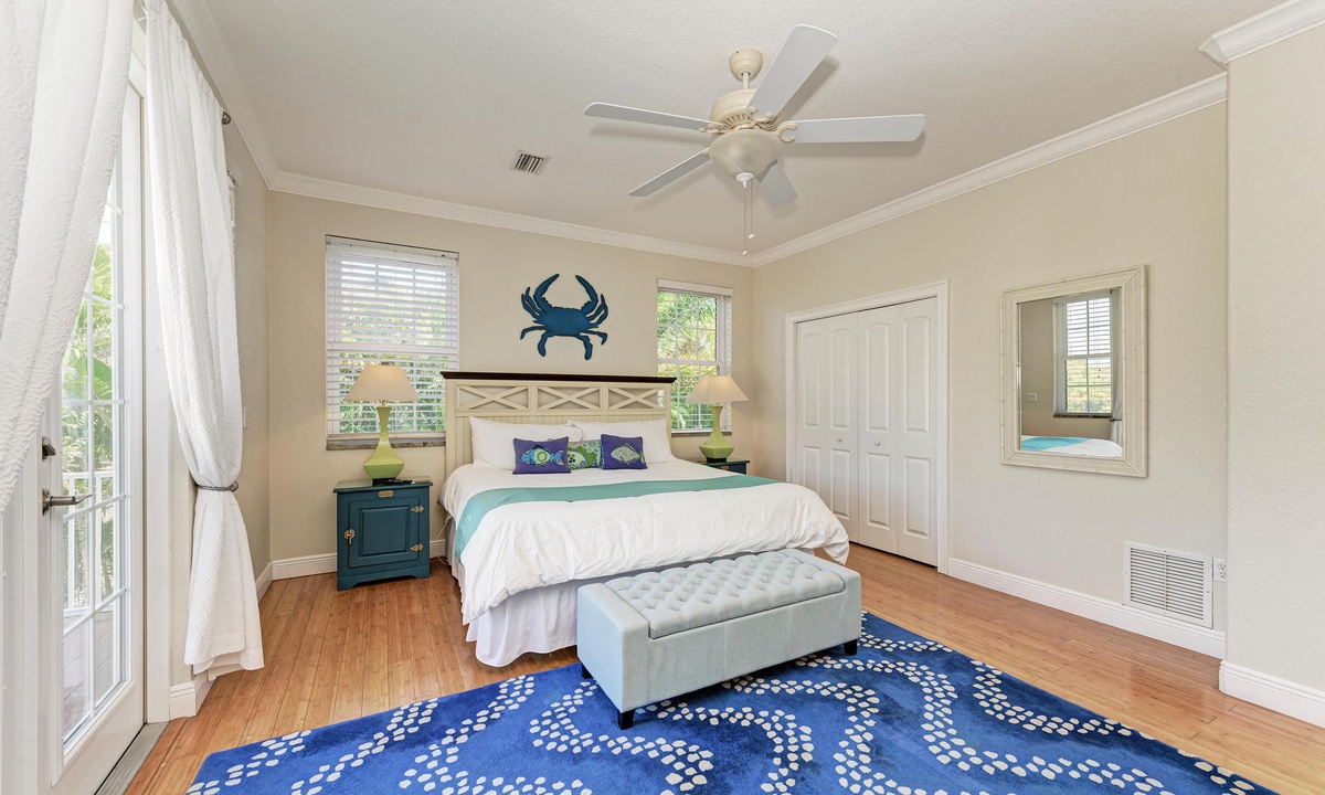 "Casa Morado" accommodates guests with four spacious bedrooms, a den, and three and a half bathrooms. Offering 4 King beds and a double/twin bunk bed each of the four stylish bedrooms and the den are equipped with flat-screen televisions and premium quality linens. In the master bedroom open the French doors to let in fresh island breezes and enjoy the master bathroom with a walk-in shower and oversized Jacuzzi tub.