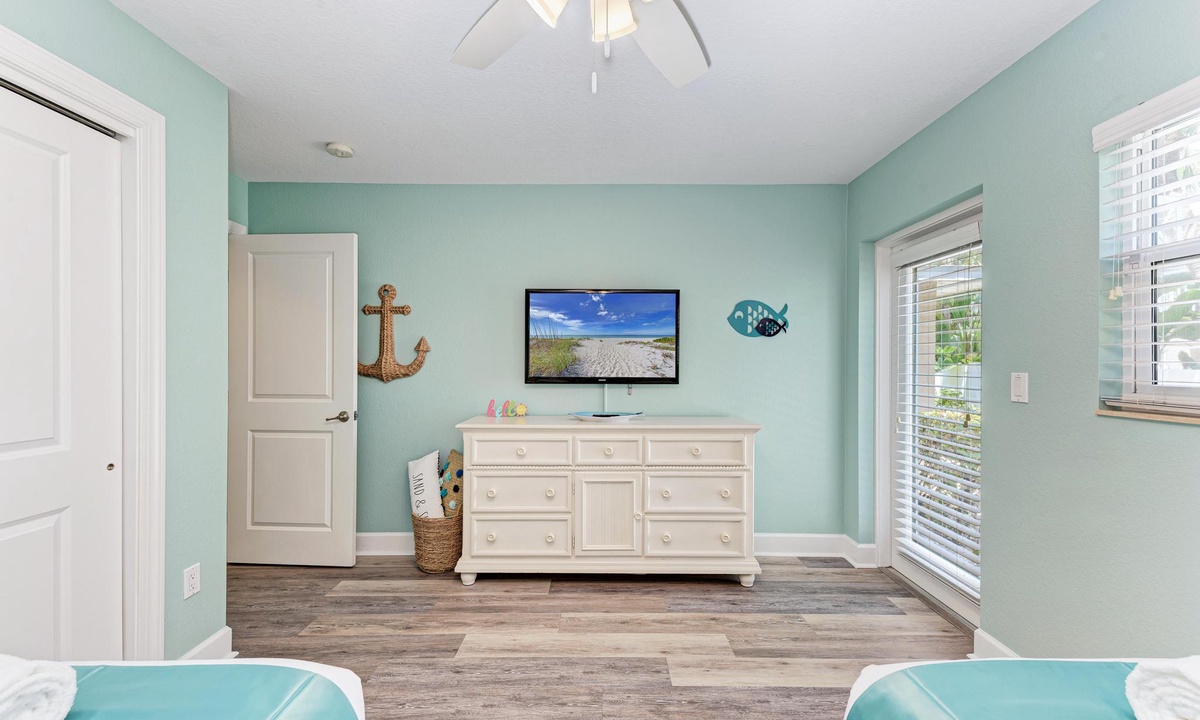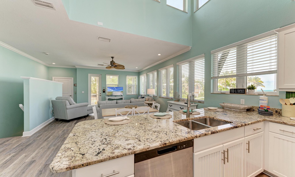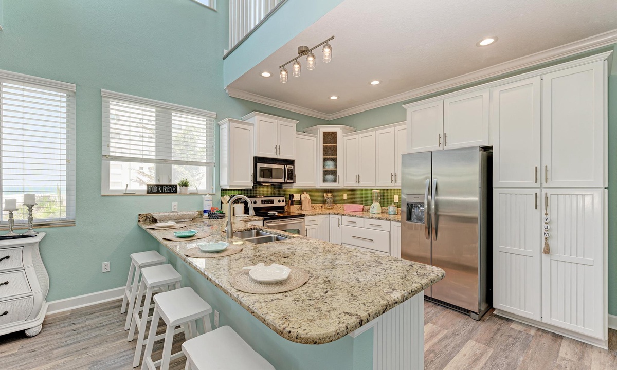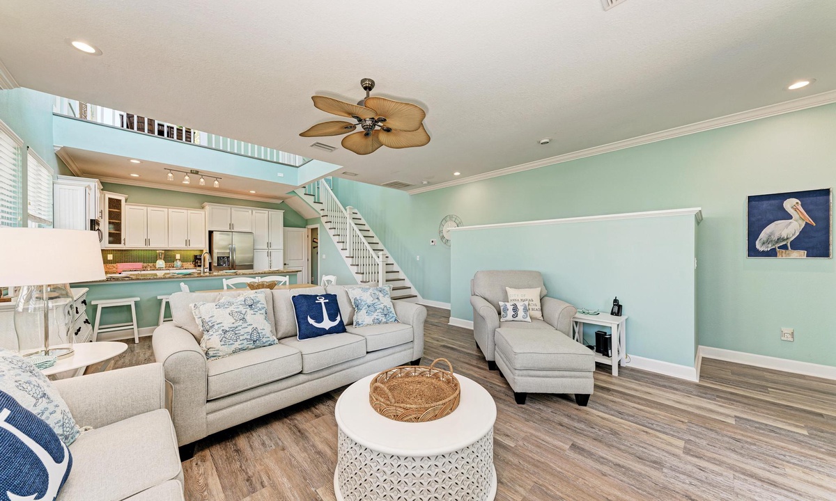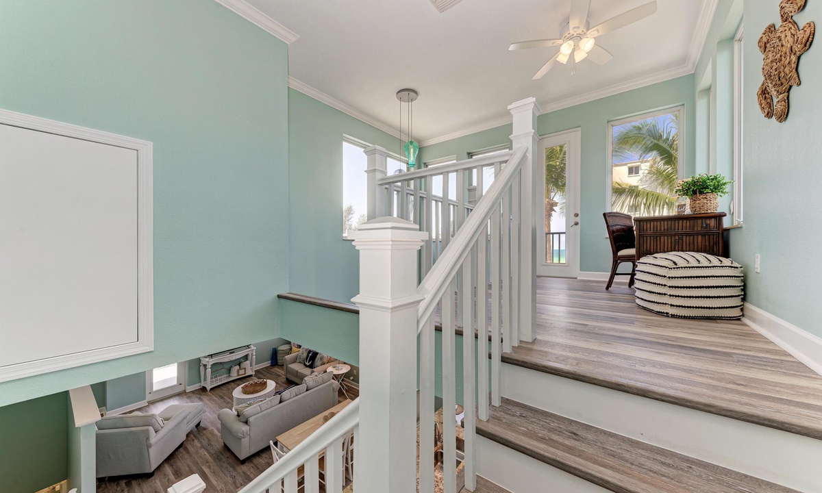 The 3rd floor loft is a ready work station with balcony and the best views in the house! The 2nd and 3rd levels have wall to wall windows that offer picturesque beach views and two exterior balconies to enjoy sunrise and sunset during your stay! The 2nd level balcony also has seating for 4 to dine or to enjoy your morning coffee or to relax with a glass of wine.