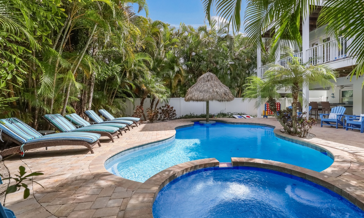 Welcome to Fairwinds, the perfect vacation getaway! This spot has everything you need for a relaxing escape, starting with a tropical backyard that’s straight out of a dream. Picture yourself lounging by the sparkling pool (with a swim-up table!), soaking in the hot tub, or grilling up something tasty in the outdoor kitchen. With four cozy bedrooms, three and a half bathrooms, and just a short walk to the breathtaking Gulf beaches, you’ve got the ideal setup for making unforgettable memories.