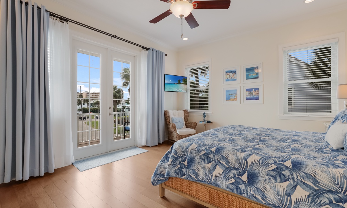 Second Bedroom (3rd Floor): Queen bed with smart TV and direct access to a private patio.