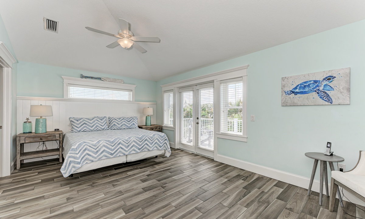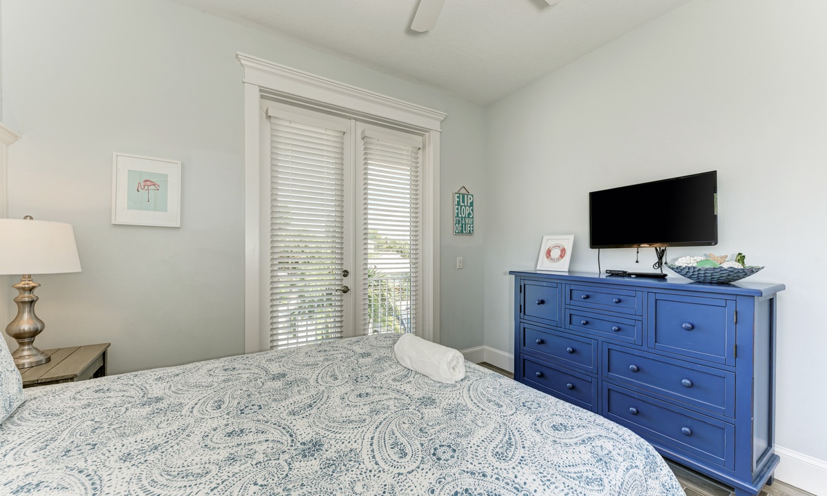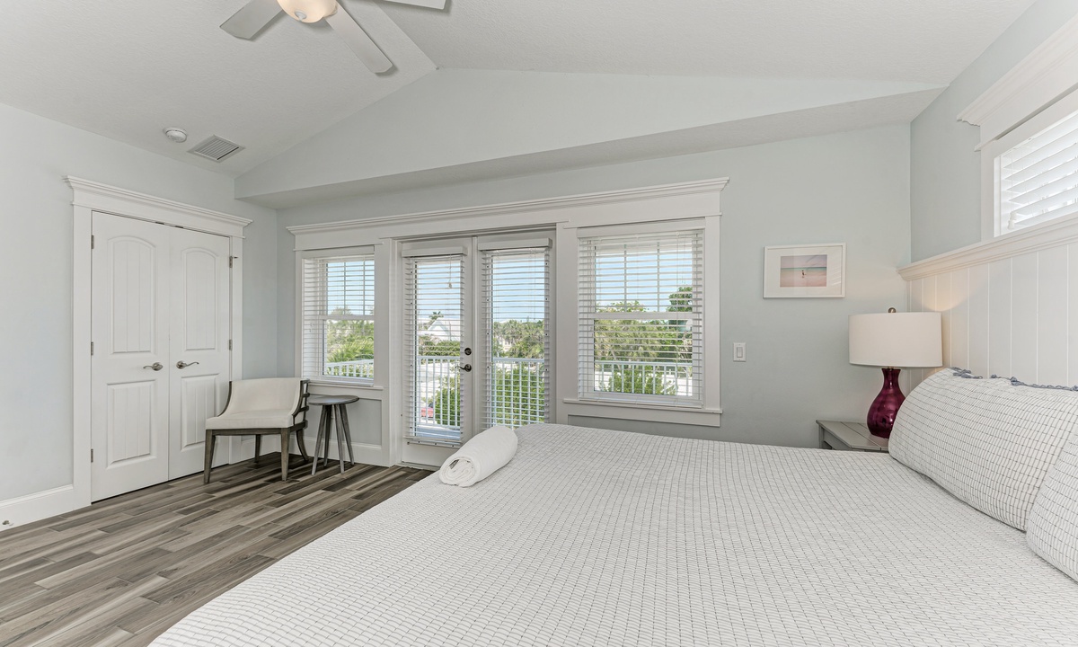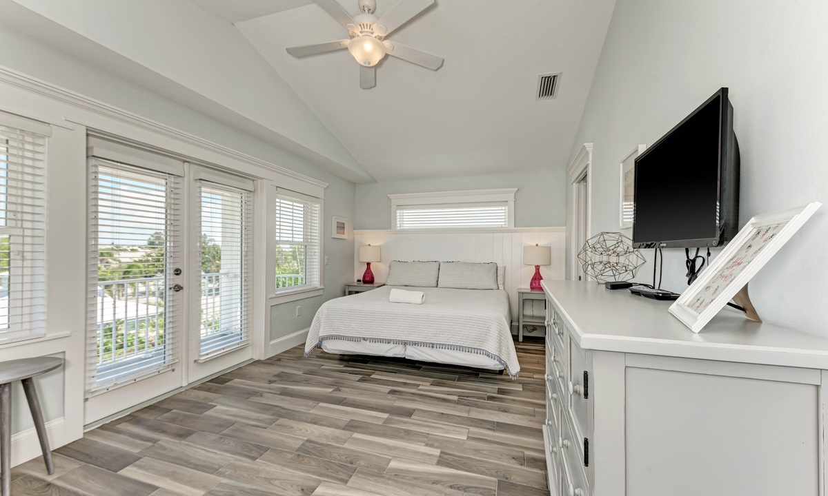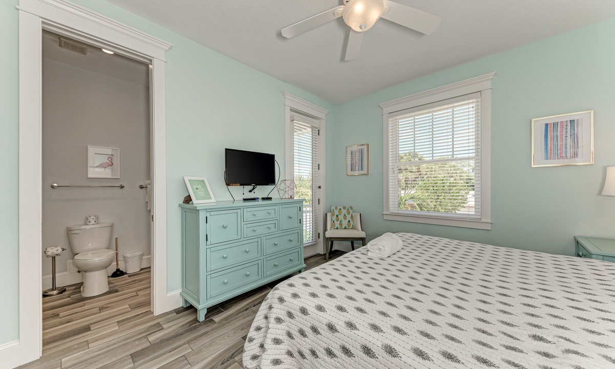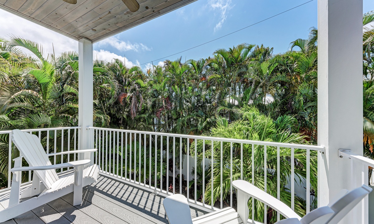 Head upstairs where you will find the other 2 bedrooms, each with a King bed and their own private attached bathroom. Each bedroom in this home contains a flat screen TV and each has its own access to an outside porch – a perfect space to relax and listen to the island breeze!