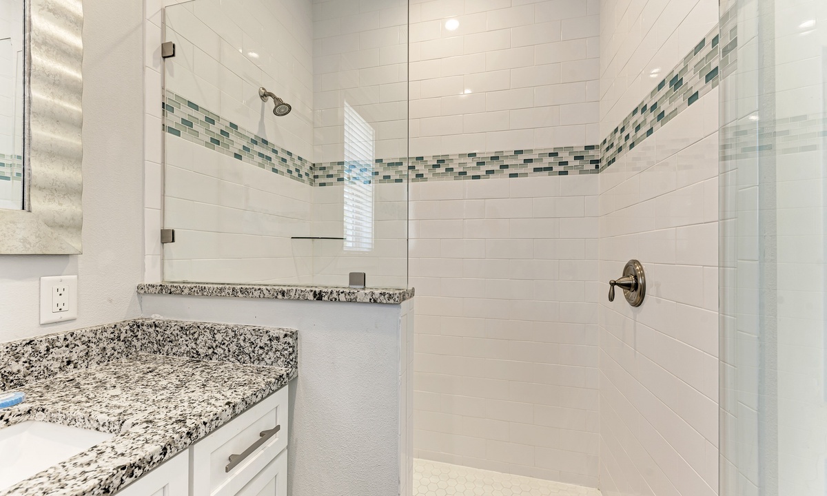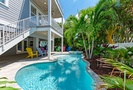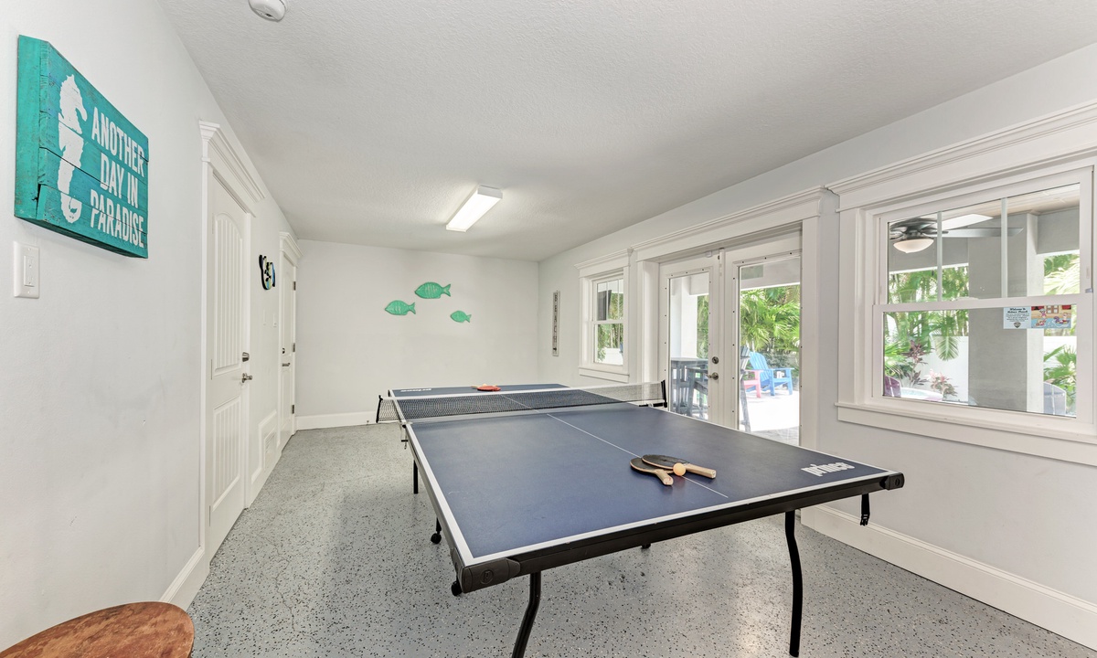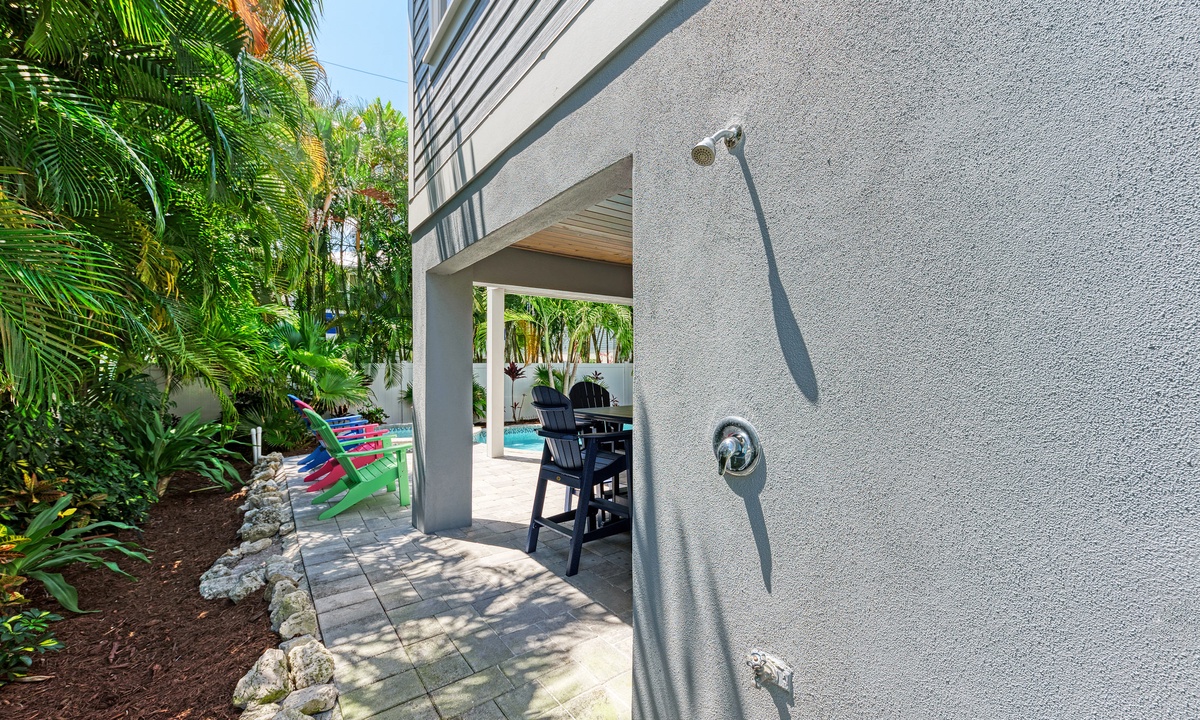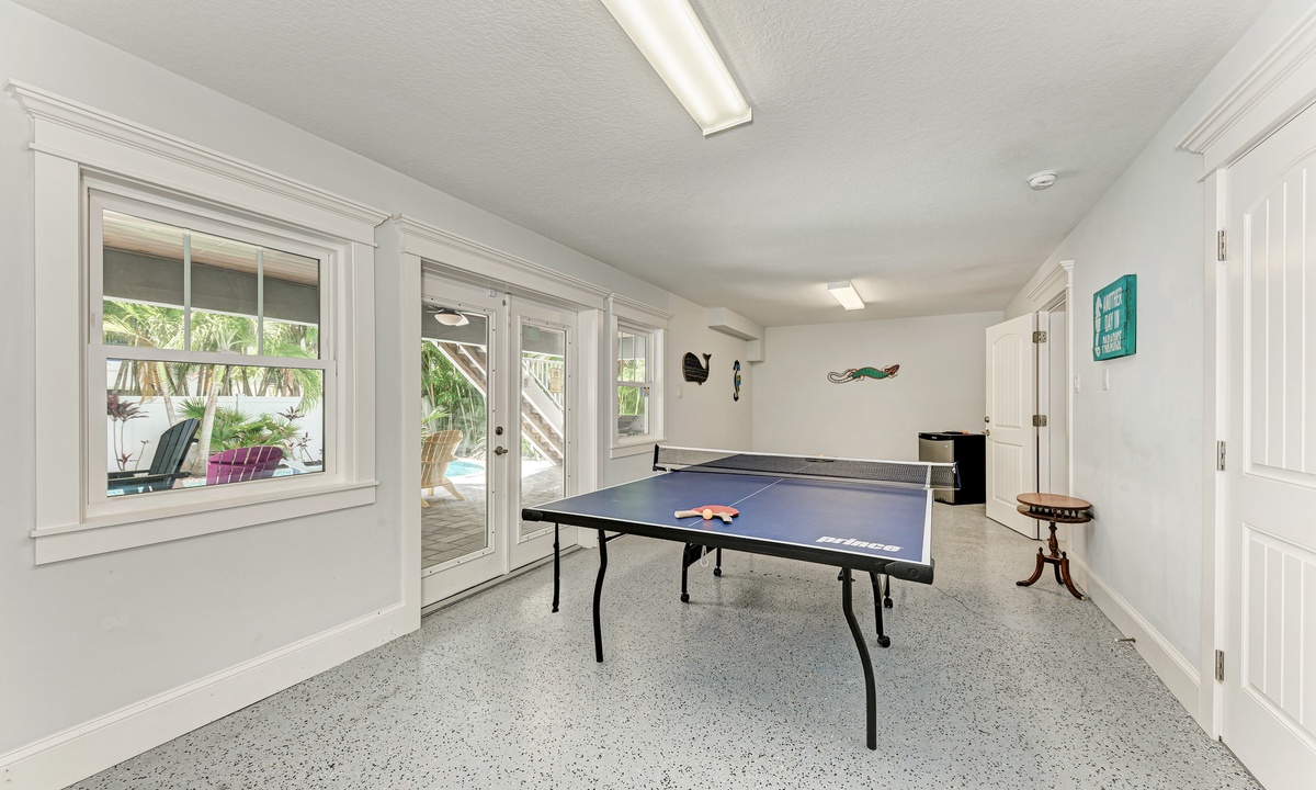 Before stepping outside to the outdoor oasis, find yourself playing a round of ping pong in the game room downstairs that also has a mini fridge. Outside you will find yourself emerged in a true oasis with palms surrounding the tranquil pool and spa, outdoor shower, propane grill and seating area with a flat screen TV. The under-deck shade area has a TV and fan so it is the perfect area to take a break from the sun a cool down! You and your guests will find it difficult to leave this outside space.