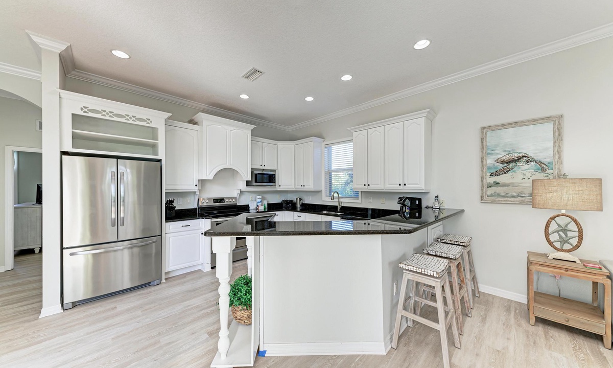 Everything you could possibly want in a destination home, this house has it. It has a wonderful entertaining kitchen with comfortable counter seating - great for morning coffee! We spent most of our time at the beach, but the private pool area was such a quiet spot to relax and read a book. The beach is just a short walk away and I am still dreaming of the soft sand and views. Rooms are beautifully decorated and beds were cozy with fresh linens. Clean and well equipped bathroom with plenty of hooks and racks for all of those towels and suits-a must have during a beach getaway. There was a additional over the door hook for our bedroom that I apprecaiated for my pjs and robe!- Dawn R from Columbus , Posted: 01/08/2026