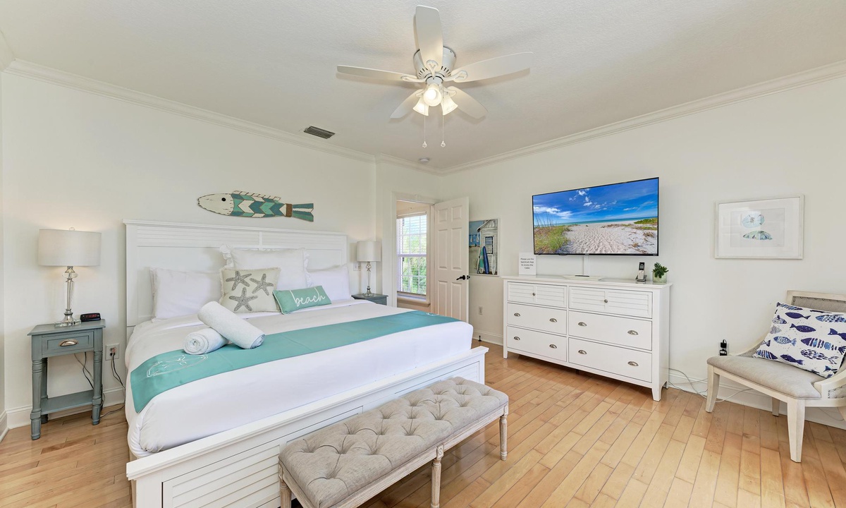 Bedroom 1: King with TV and Ensuite Bath on Floor 3