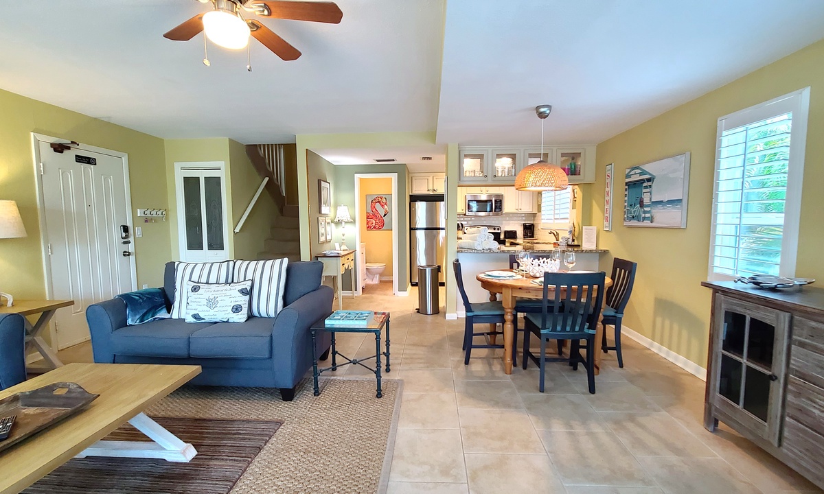 Gracious Town Home located at 3701 Gulf Drive, Holmes Beach, Anna Maria Island, FL -- (2) Bed: (2.5) Bath: Accommodates up to (6) people: 1 Queen, 2 Twins, 1 Queen Sleeper Sofa: wireless internet, No smoking: No Pets: **Gas powered golfcarts only not electric**