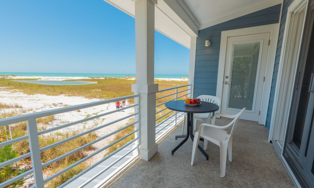 There are also several windows in this space that offer views of Bean Point Beach. There is also a balcony on this floor that offers sweeping views of the expansive Gulf of Mexico and a small outdoor dining set.
