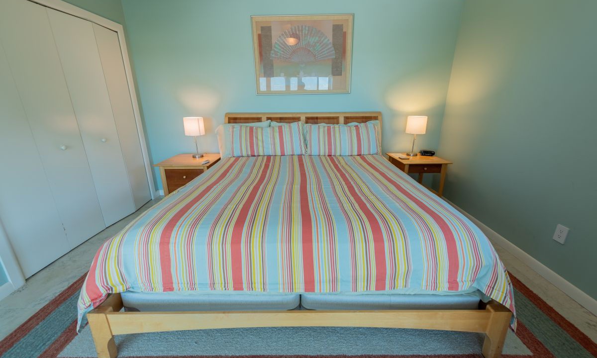 We enjoyed our stay at Hidden Oasis. Relaxing upper deck, quiet end of the island and easy beach access. The unit was very clean and bed comfortable. Owners were home and very quiet and respectful of our privacy. Linen and kitchen utensils could use an update. It would have been nice to have some limited access to the patio which understandably is reserved for the owner. It was very windy during several of our days and could not be on the sand but were still hoping for some time in the sun. All of these very minor and would definitely rent again