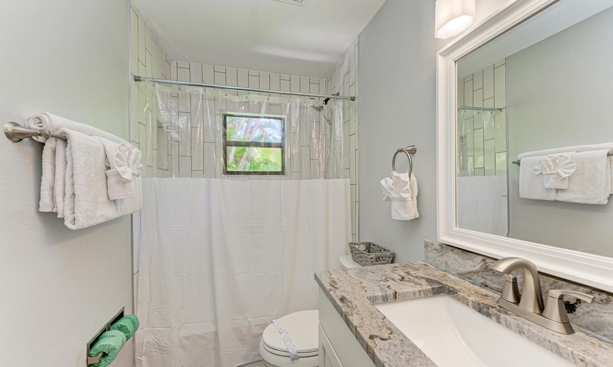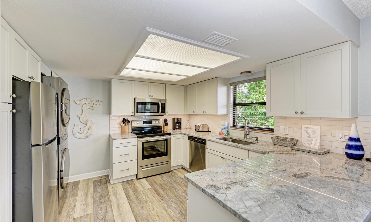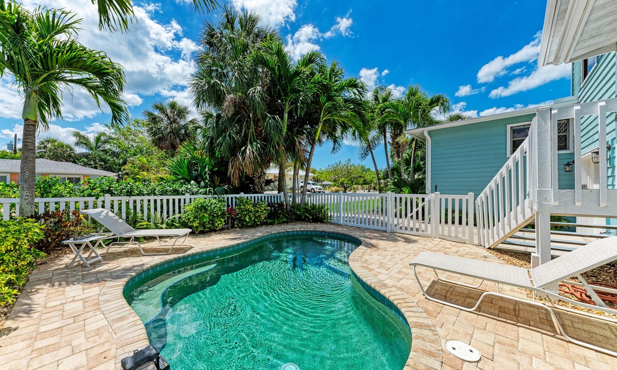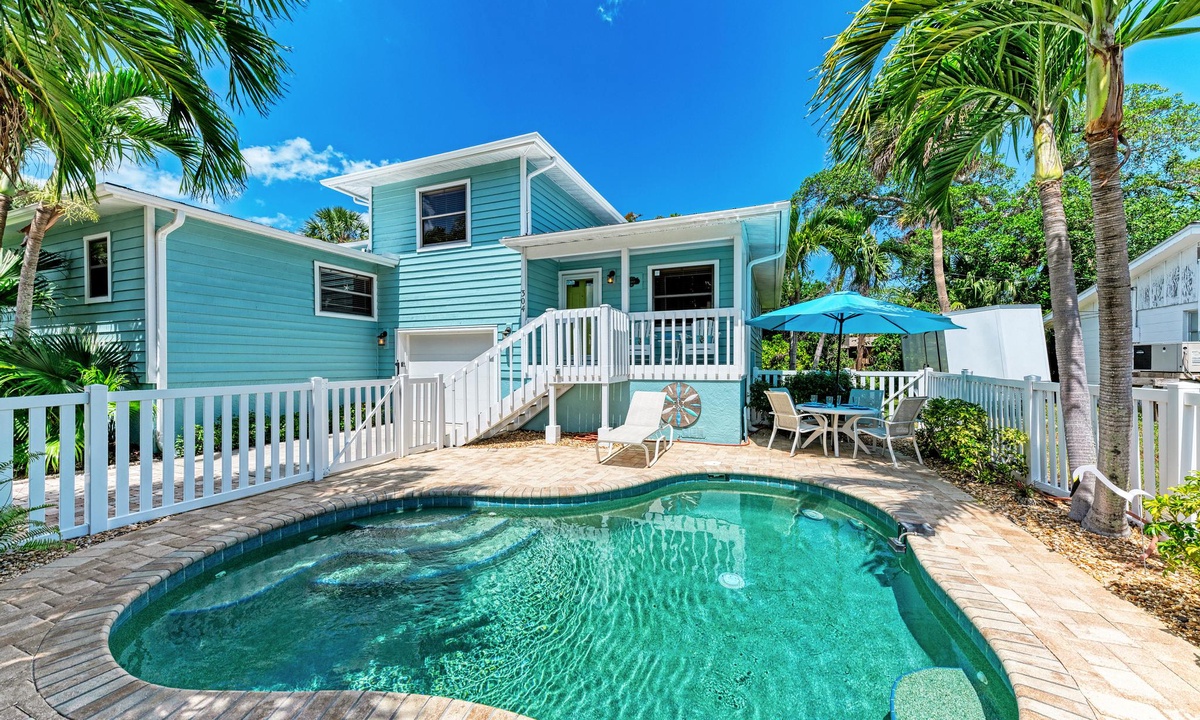 You will absolutely love the tropical oasis front yard at “Hideaway”! Enjoy the heated pool, lush landscape and great outdoor lounging space. Catch some sun in the lounge chairs. Cook up a feast on the propane grill while the rest of the family swims.