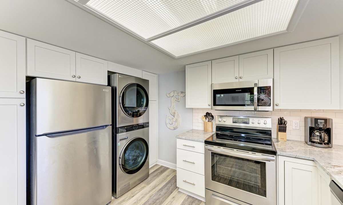 Additional amenities in this Anna Maria Island vacation rental include parking for up to two vehicles with a 1 car garage as well as driveway space and a washer/dryer.