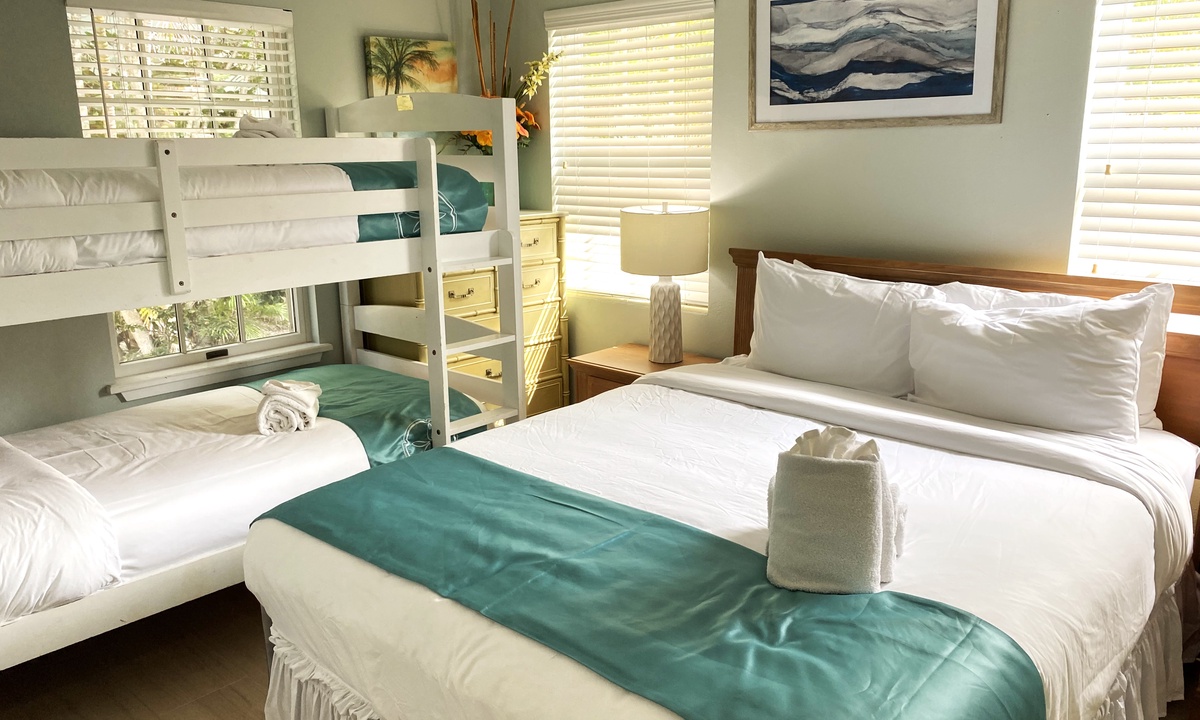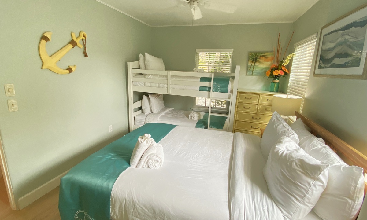 Located on the coveted north end of Anna Maria Island, “Mango Beach House” is a charming beach cottage offering 3 bedrooms and 2 bathrooms. Sleeping up to 8 guests with 2 King beds, 1 Queen bed, and 2 Twin beds (bunkbed). Walk out to Bean Point, the best beach on the west coast of Florida, and enjoy the secluded sugar sand beach.