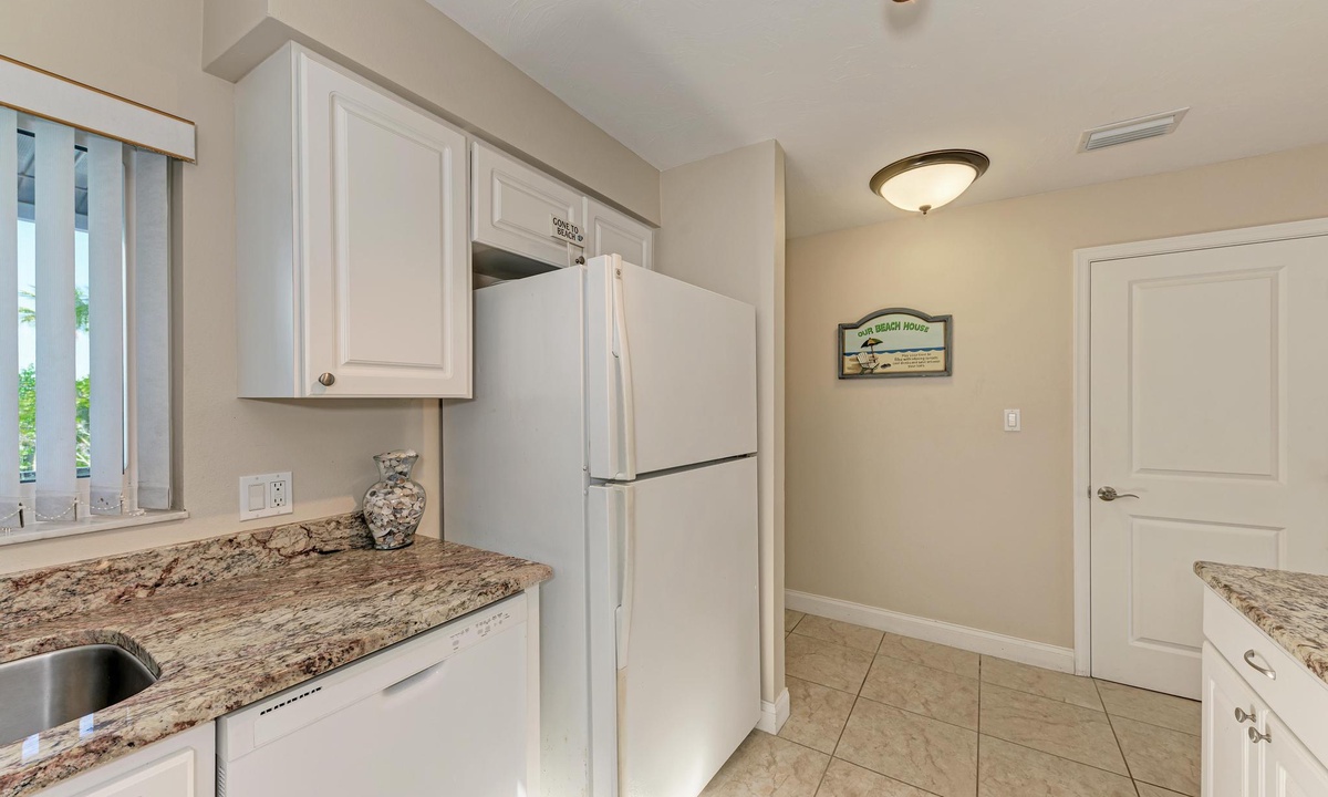 You’ll love staying at “Ocean Park Terrace” just as much as you’ll love sitting on the beach! This Holmes Beach vacation rental home is light and airy with white and pastel décor. The updated kitchen and dining area are open, bright and comfortable. The kitchen is equipped with all the usual amenities including a dish washer, new appliances and granite countertops. Other great amenities include wireless internet, flat screen televisions and a full size washer/dryer.