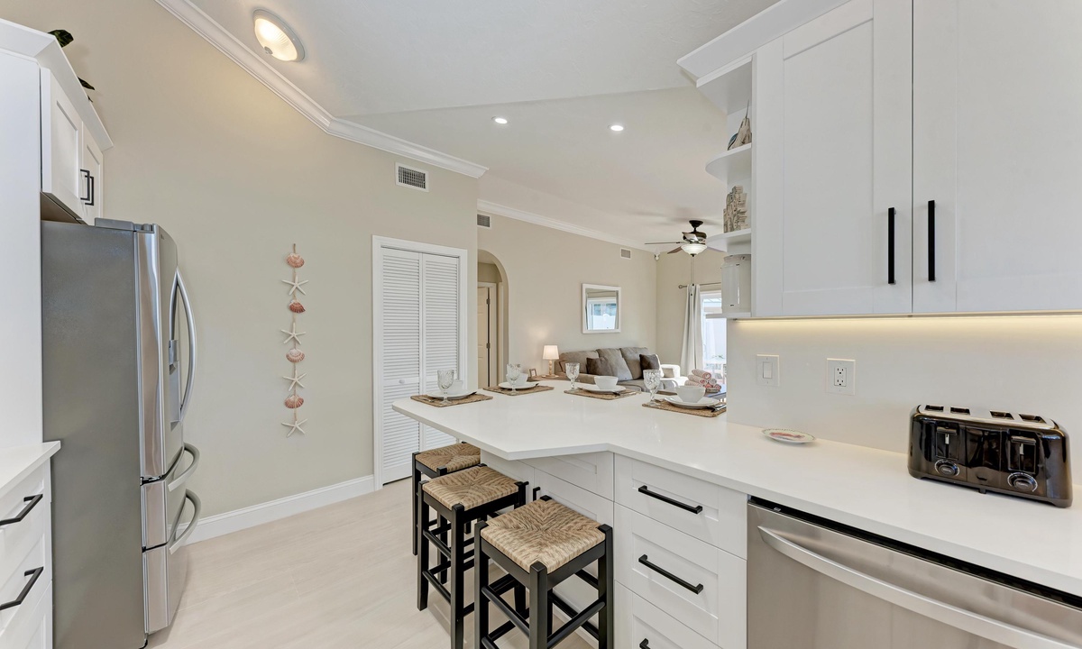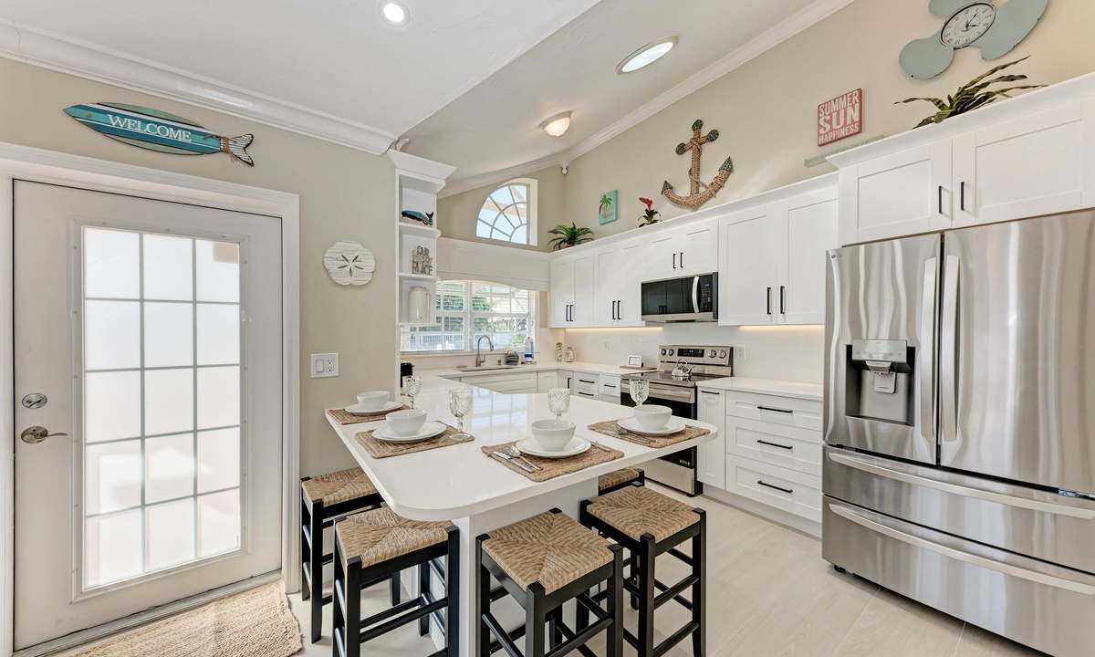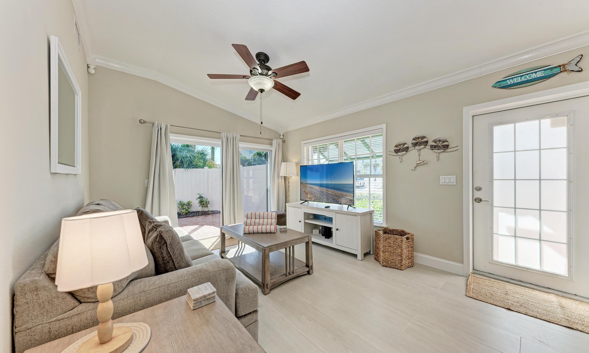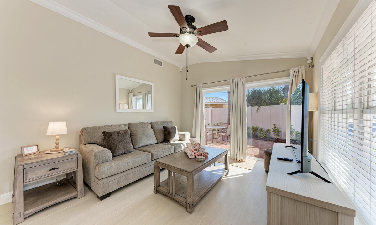 This beautifully appointed 2 bedroom and 2 bathroom ground level villa offers a King and Queen bed along with a Queen sleeper sofa to accommodate a family of six comfortably. The fully equipped updated kitchen has everything you'd need for the perfect breakfast, lunch or dinner if dinning in is what you enjoy. The open style living room is the best place to take in your favorite TV show or to just cruise the internet with the FREE highspeed WiFI. There is also a private fenced patio to dine al fresco using the properties gas BBQ grill.
