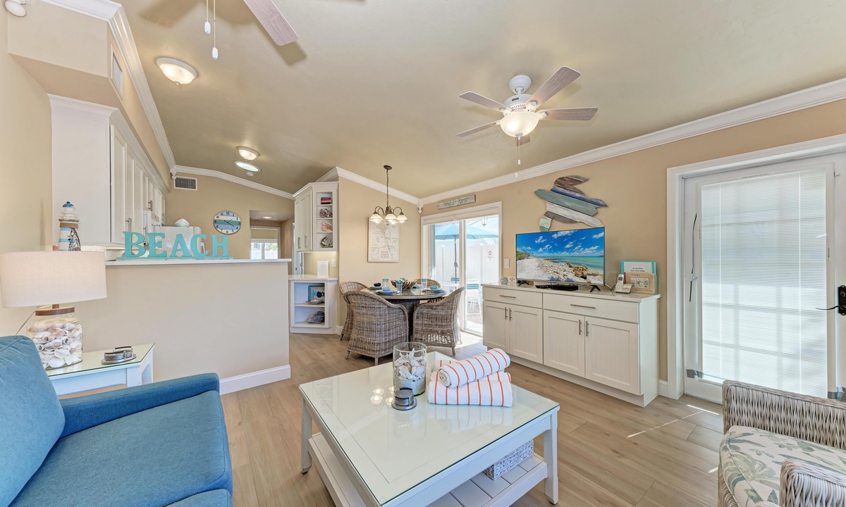 As if being located right across the street from the beach (600 feet from the ocean) didn’t make Palm Isle Village’s location perfect, you will be sitting right around the corner from anything you could need on an Anna Maria Holiday including, a super market, pharmacy, souvenir shop (with plenty of beach supplies), and an ice cream shop all within walking distance. Anything you don’t feel like walking to can be reached by hopping a ride on the free air conditioned Island Trolley.