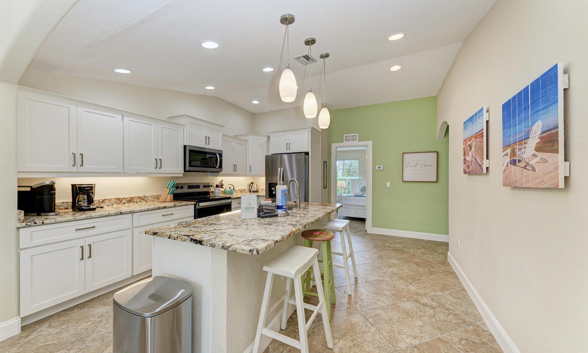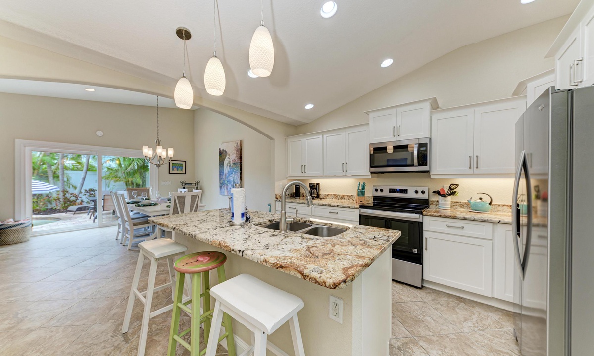 The house is maybe a 5 minute walk to the beach, its so close! and the private pool was amazing when it was too hot to be out in the sun because it was perfectly shaded. The kitchen was equipped with all the cooking utensils you need, which we used every day. I really liked having the pool off the house so we could watch the kids play and get food ready. A solid choice for anyone with young kids, the property was perfect and we'll be back!- Stephanie L , Posted: 08/02/2022