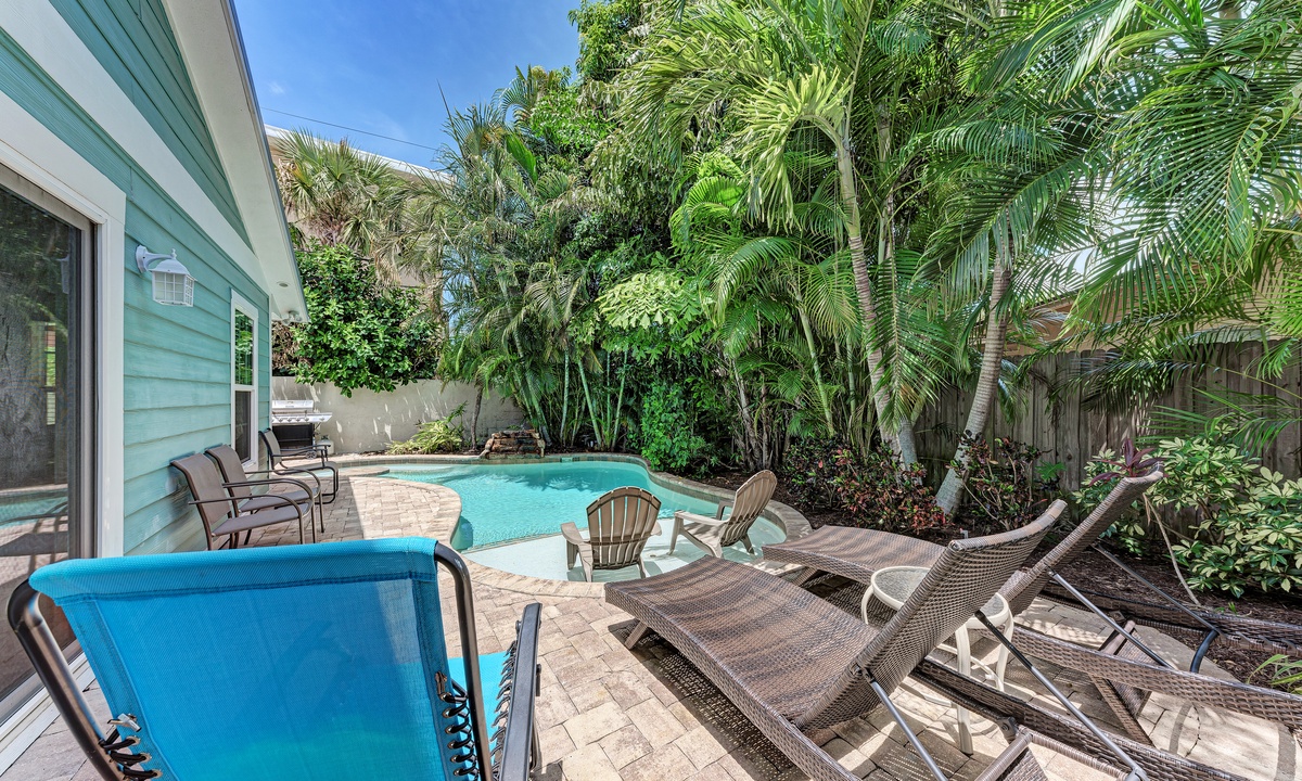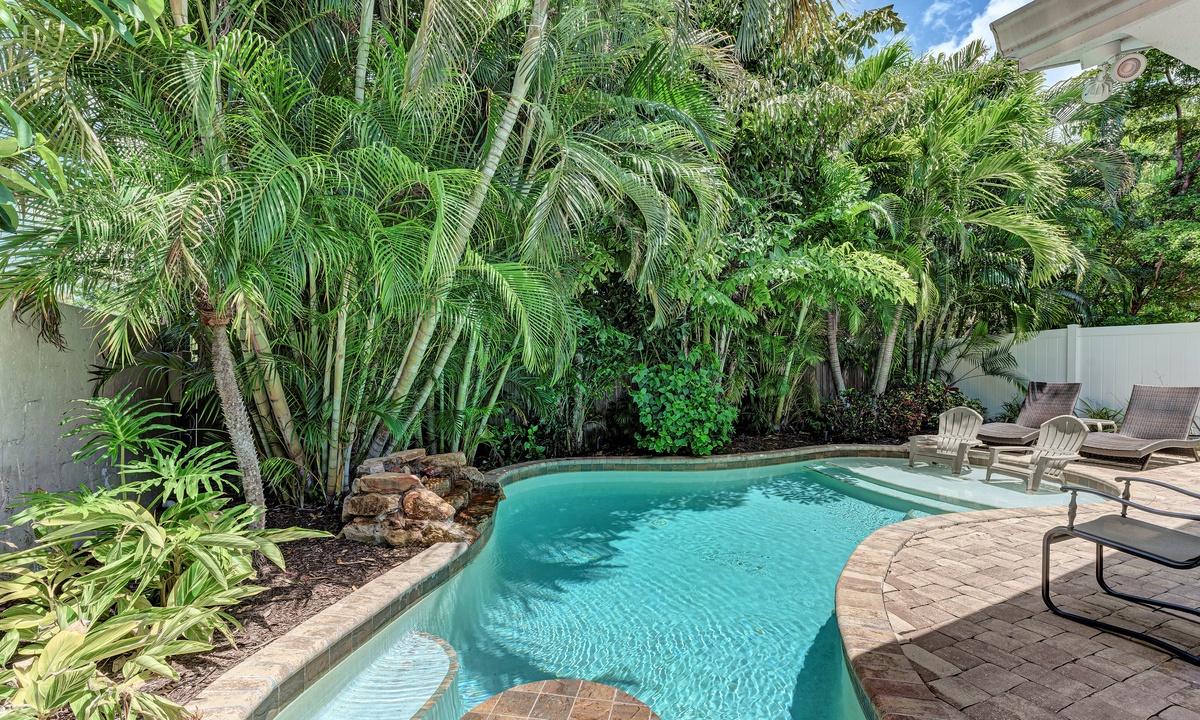 You will fall in love with the private pool paradise at “Palms Beach West”. Featuring lush landscaping, a heated pool, and comfortable furnishings you can’t help but relax in this tropical setting.