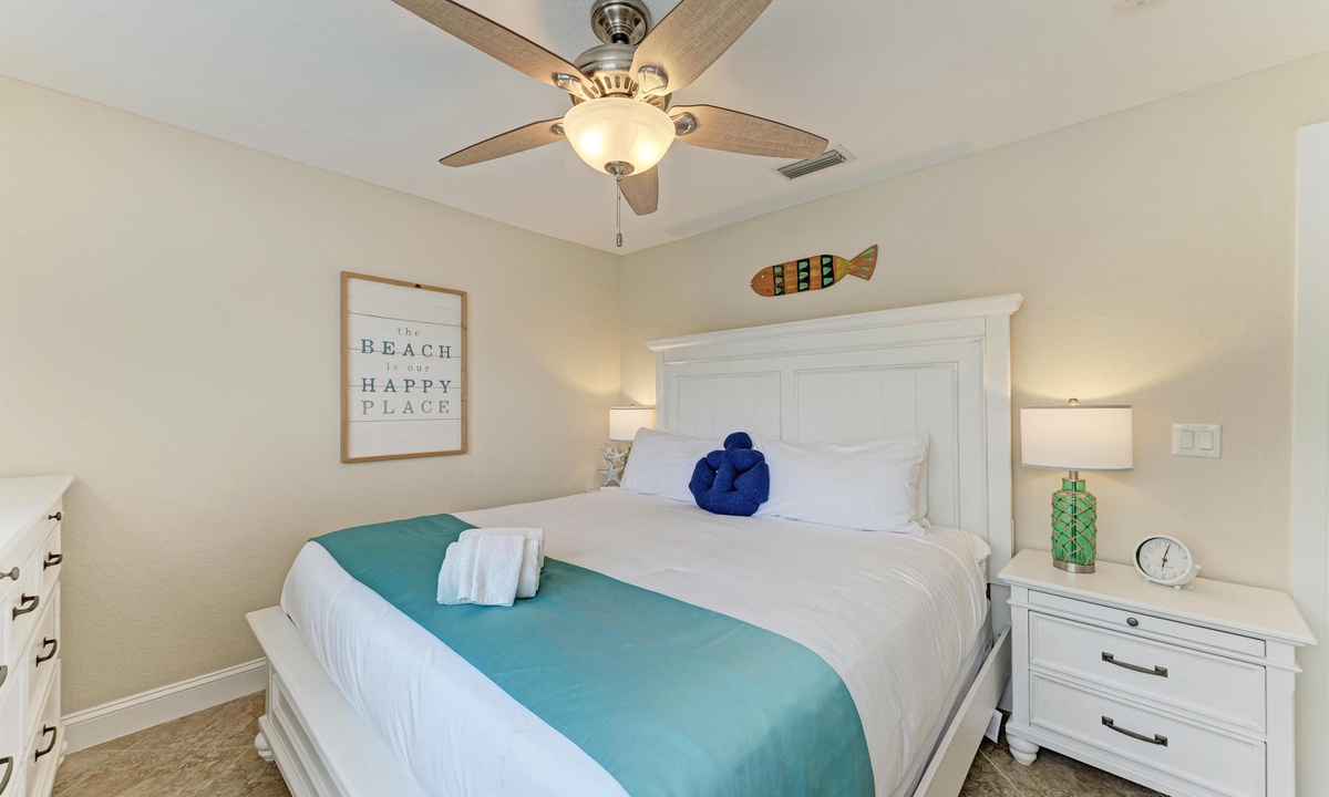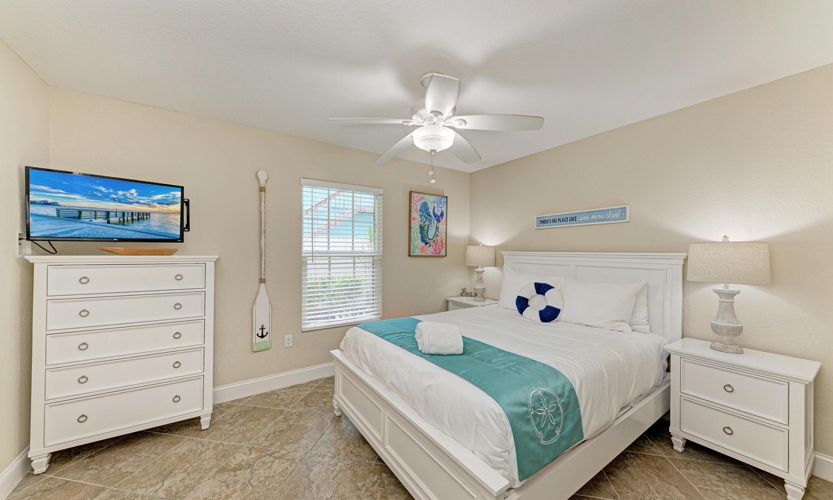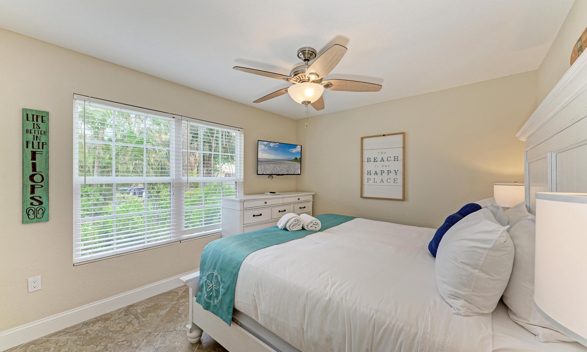 The bedrooms at this Anna Maria Island vacation rental home are nothing short of fabulous. Enjoy premium linen service, comfortable furnishings and calming décor. The master suit offers a king bed, and a bathroom with a gorgeous tiled walk in shower.