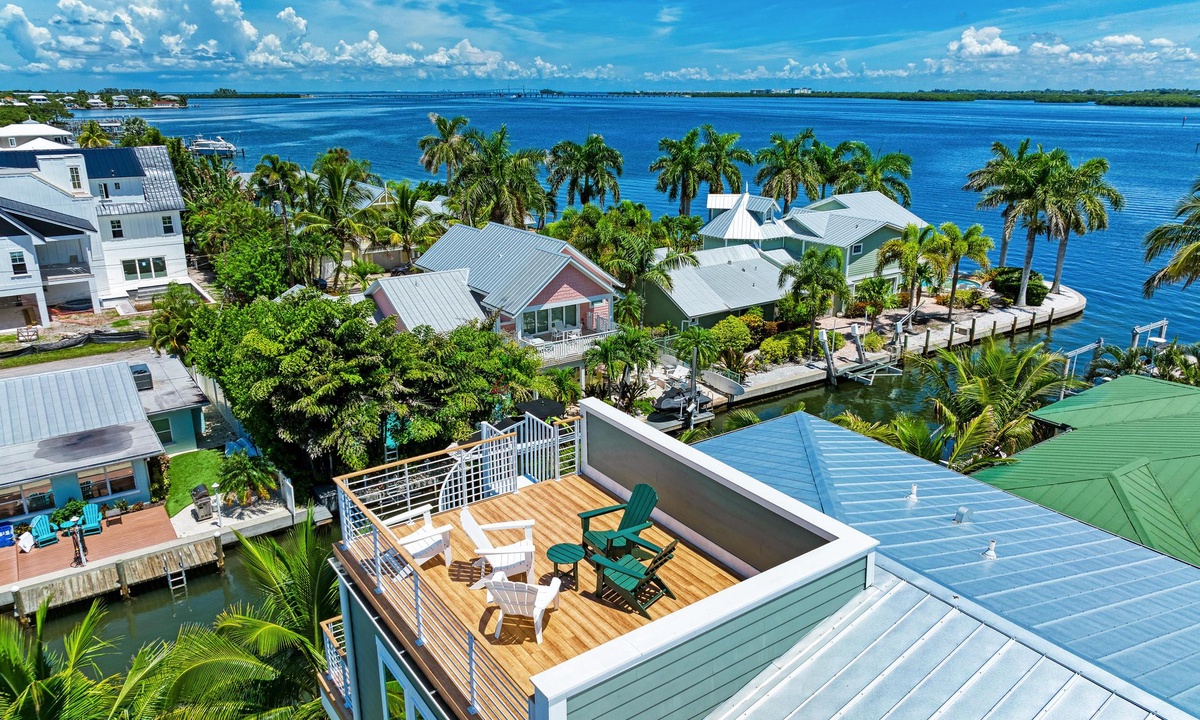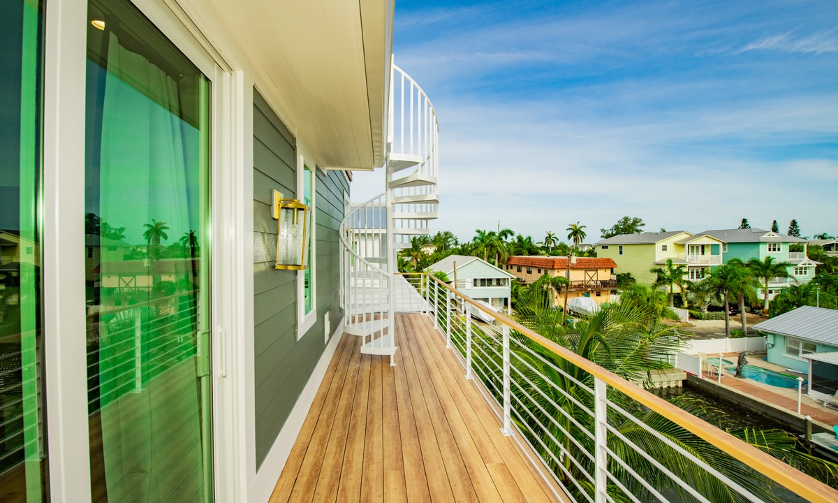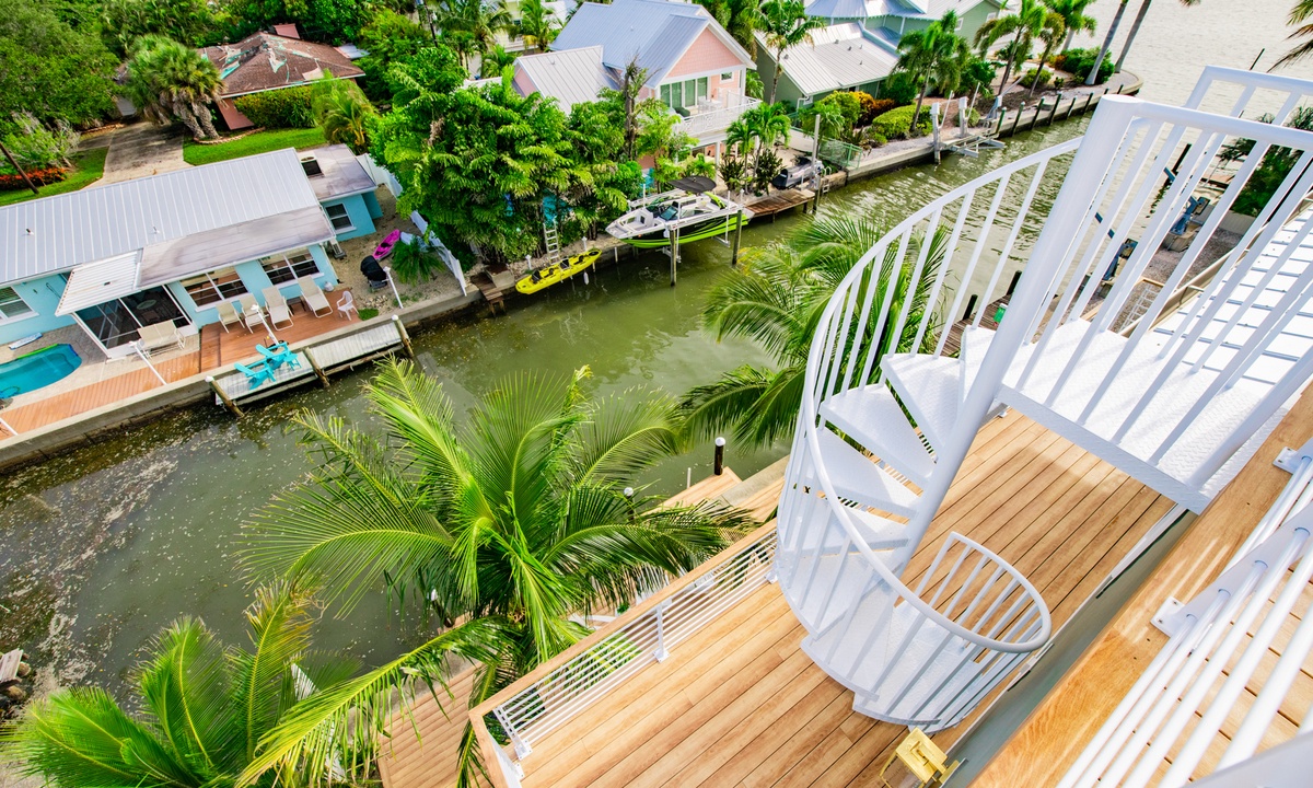 Gather in the fully equipped kitchen, where meals can be prepared and shared. Or take those meals out to one of the homes many balconies to enjoy views of the canals and nearby beaches. The roof top deck gives even grander views of the surrounding area, and you can even see the Skyway Bridge! Additionally this is one of the only "Any Day" arrival properties on the island.