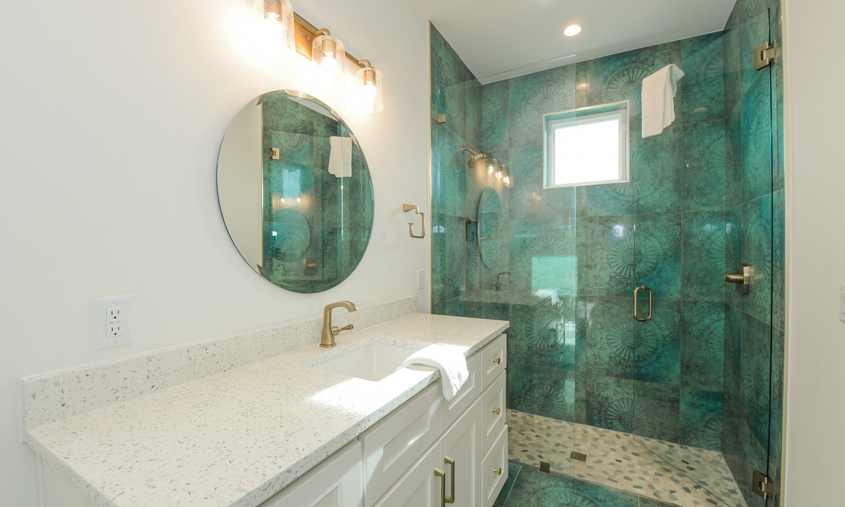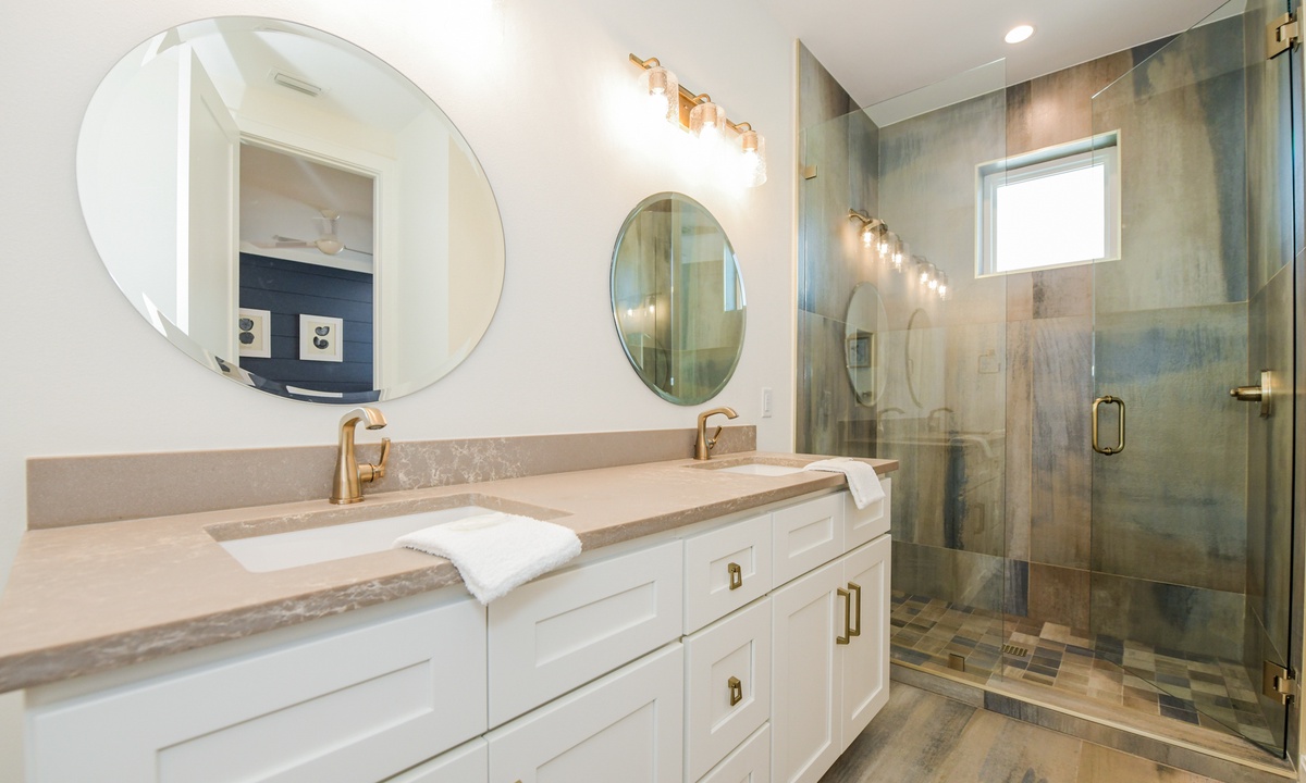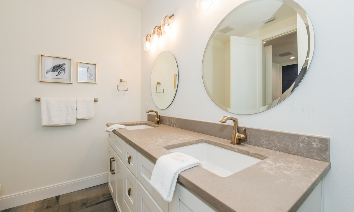 • Bedroom 3: King bed, ensuite bathroom with dual vanity sinks and walk-in shower
