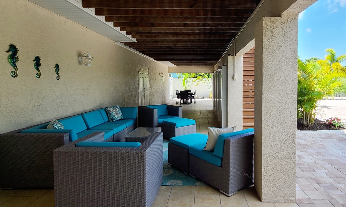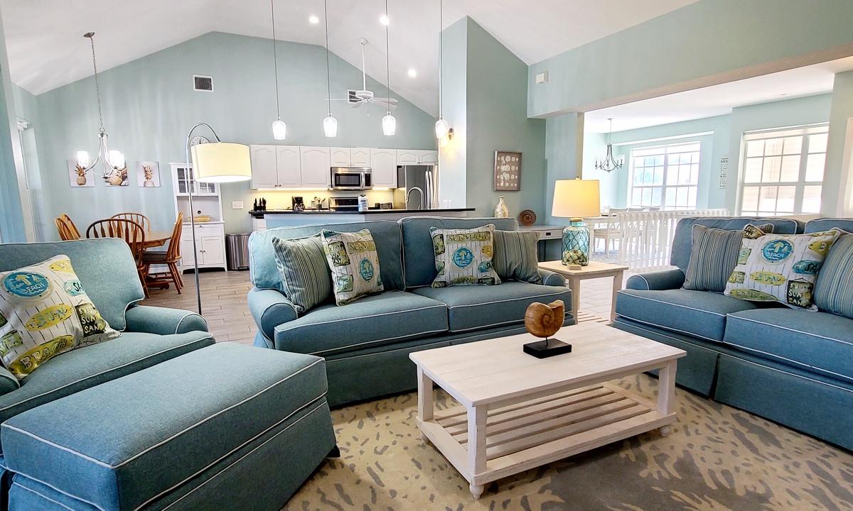 While relaxing indoors of this tropically decorated vacation home, enjoy flat screen televisions, and wireless internet in one of several comfortable seating areas.