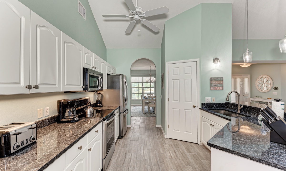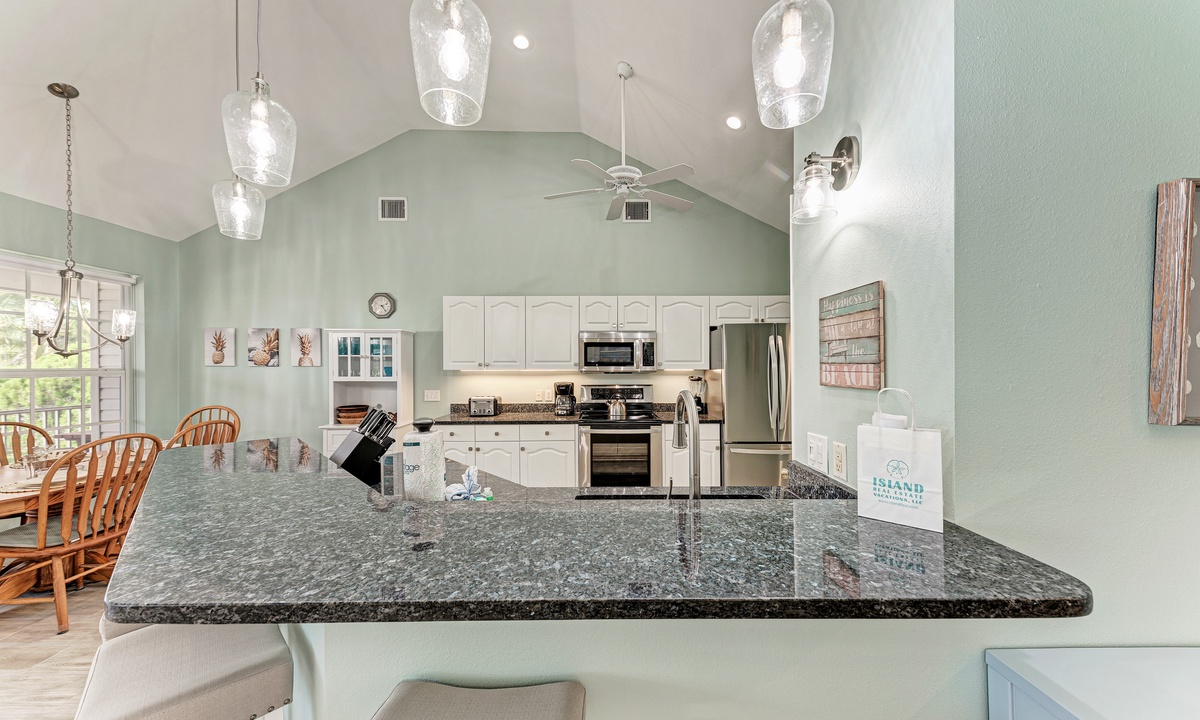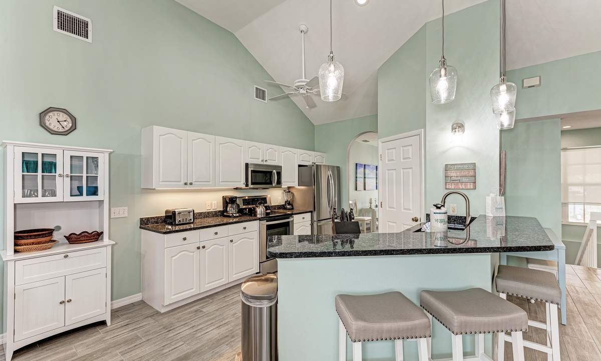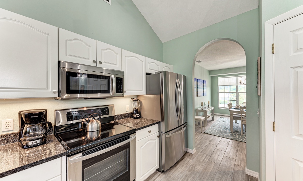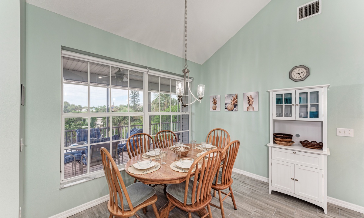 Including a beautiful kitchen with stainless steel appliances and a dishwasher, meals are easy to prepare. The large formal dining area is the perfect place for entertaining all guests at once, or host everyone al fresco at the balcony table for six. The small eat-in kitchen area is perfect for an informal snack.