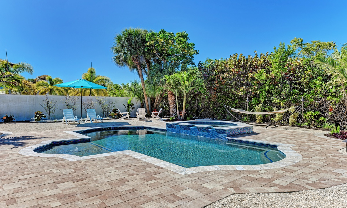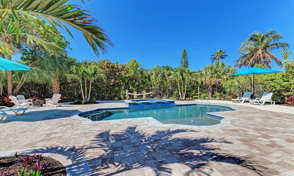 “Sand Dollar Dream” is a magnificent Anna Maria Island vacation home with brand new, private, heated pool and spa that will make your vacation feel truly luxurious! This spacious rental home offers accommodations for up to 8 guests including 4 roomy bedrooms with 1 king bed, 2 queen beds, a set of twin bunk beds, and two full size bathrooms. This home is DOG FRIENDLY, so you can bring up to two dogs that weigh 25lbs, so the entire family is welcome! Also bring your boat or rent one since this home is on a canal with dock and no bridges to the Bay or Gulf. You’ll want to stay forever in this perfectly located Anna Maria City vacation home!